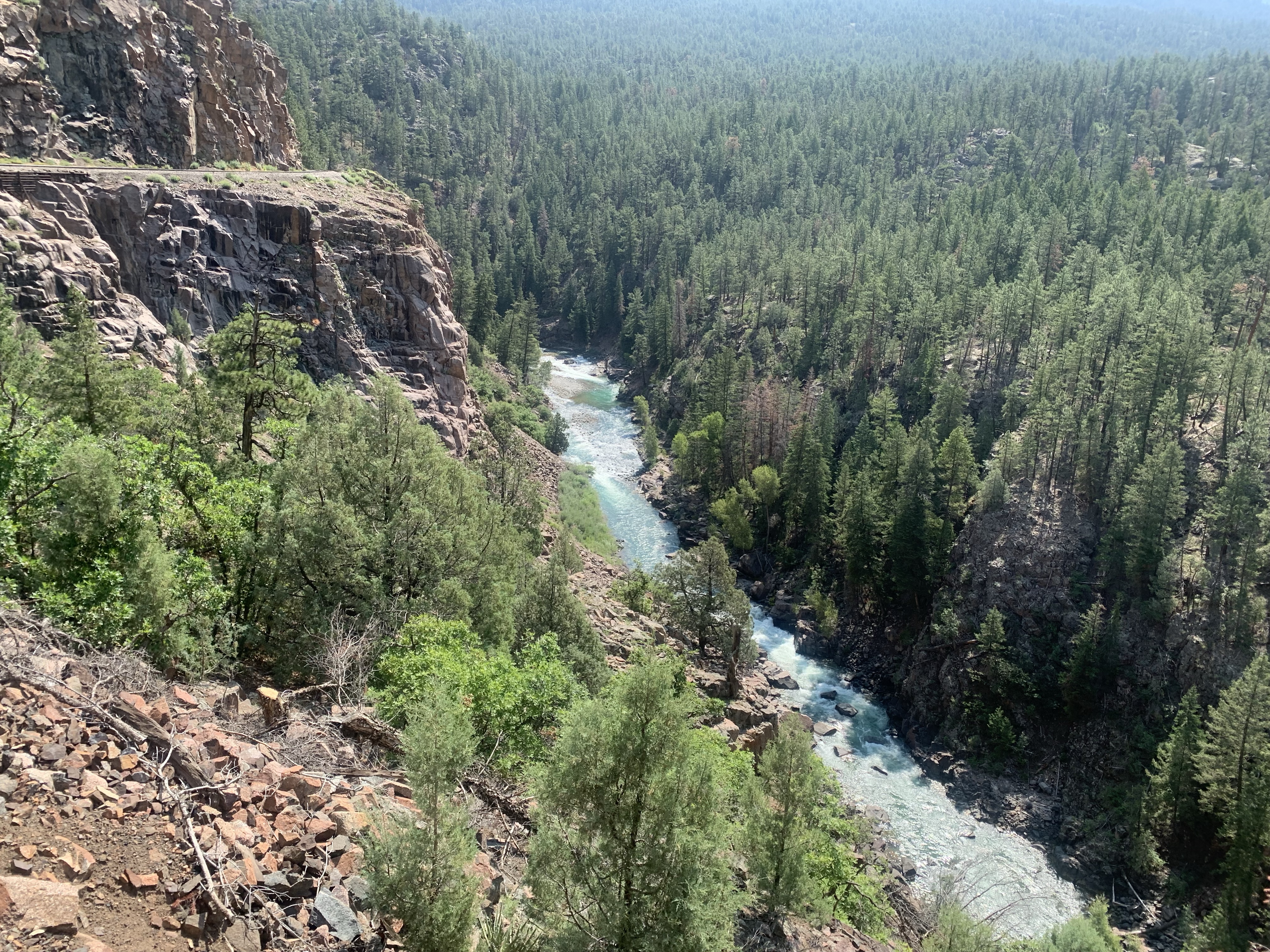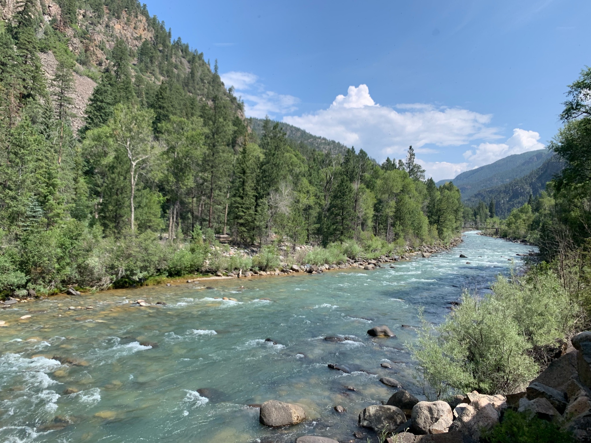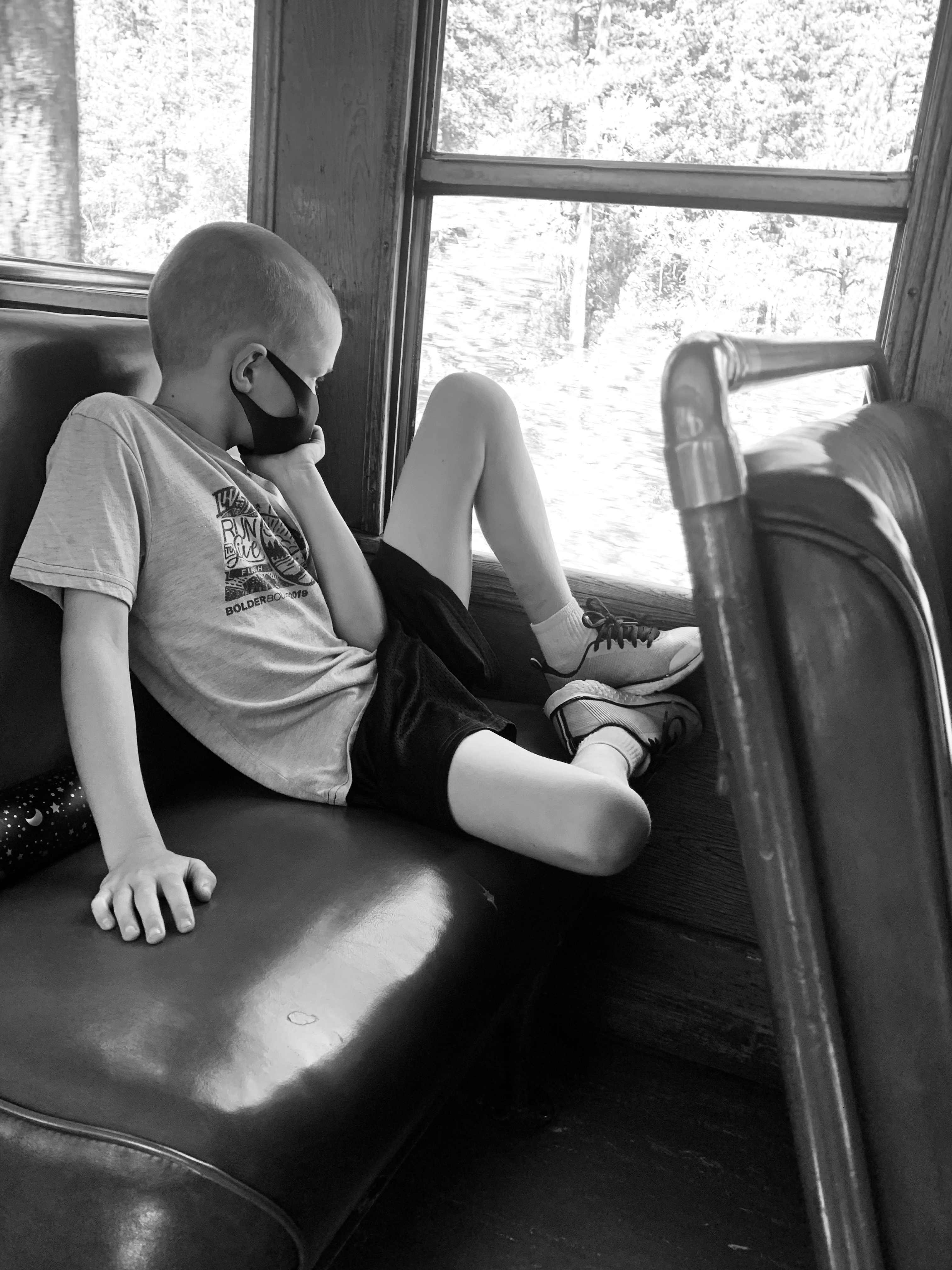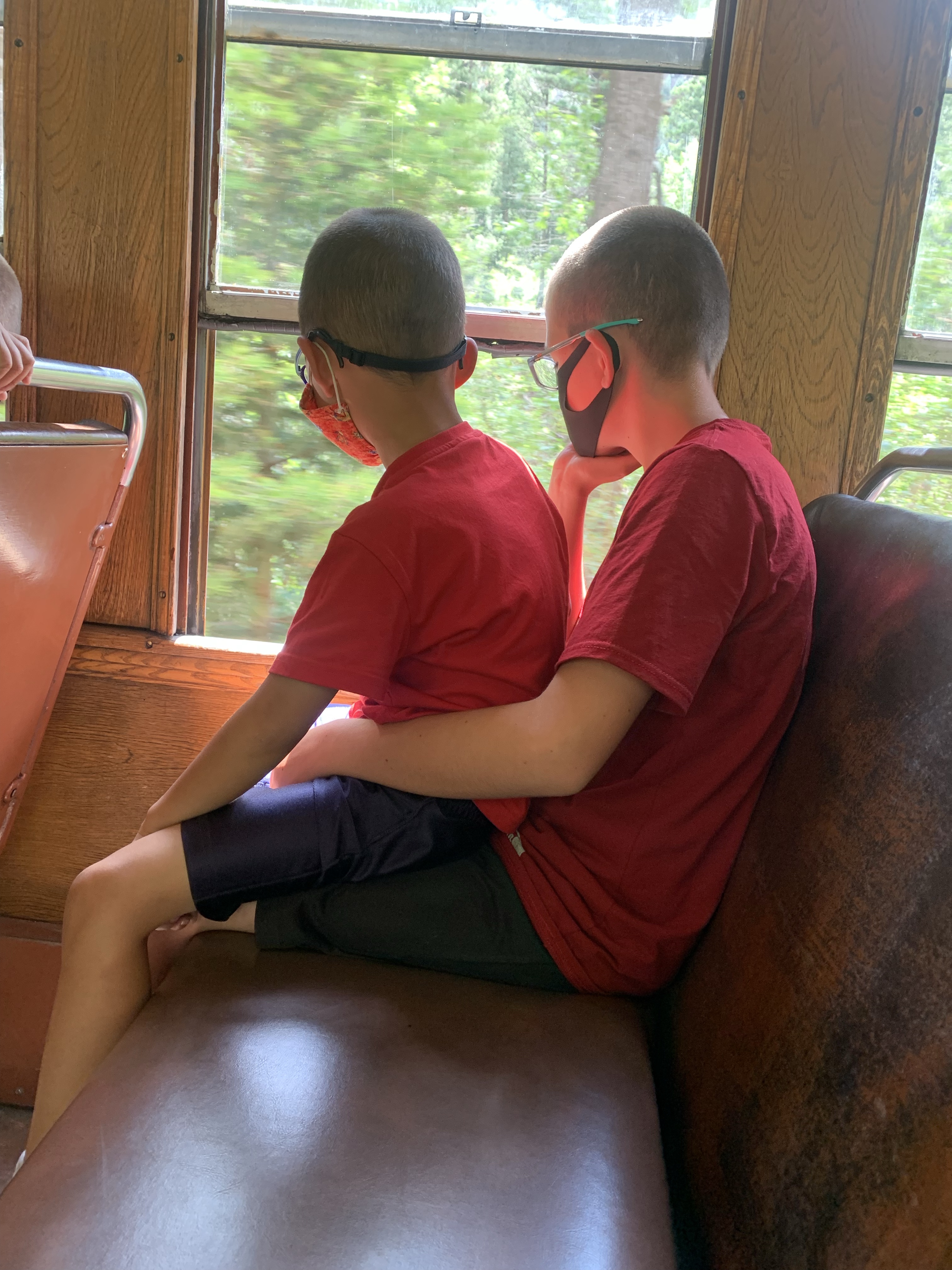 As part of our adventures to southern Colorado Clint and I decided to take the kids on the Durango-Sliverton steam train. We kept it a surprise for the two months leading up to the morning of the trip and didn’t tell them till we pulled into the parking lot at the train depot. They were beyond excited. I was a little worried because the train was a little over 3 hours one way and then a bit of time in Sliverton for lunch and then the 3 hour trip back, I didn’t know how the kids would do confined for that long. In all honesty I don’t know why I worried, they were so excited to be on the train and they loved looking out the windows and talking to the conductor that the time flew and they were great. The conductor even came by at one point and told us that she had never seen such well behaved kids and they were doing better than some of the adults on the train. We had seats on both sides of the train car and so they would switch with each other to see things. We had a bit of a delay getting to Sliverton so we didn’t have as long as planned for lunch. We found a little hamburger place and enjoyed out lunch and some ice cream and as we were finishing up it began to rain. And RAIN, and RAIN and we ended up running back to the train in a huge down pour. We made it but we all looked like we had gone swimming. I was super thankful that I had spent a couple extra dollars on each ticket for the closed car that had windows that could open and close. I felt bad for the people in the open air car because they just got pummeled with the rain. Whoever was selling ponchos that day in town made quite the haul. The train ride back was just as fun, Caedmon and Paxton both took little naps on me, but those didn’t last long before they were looking out the window again. We had a blast and everyone enjoyed the day.