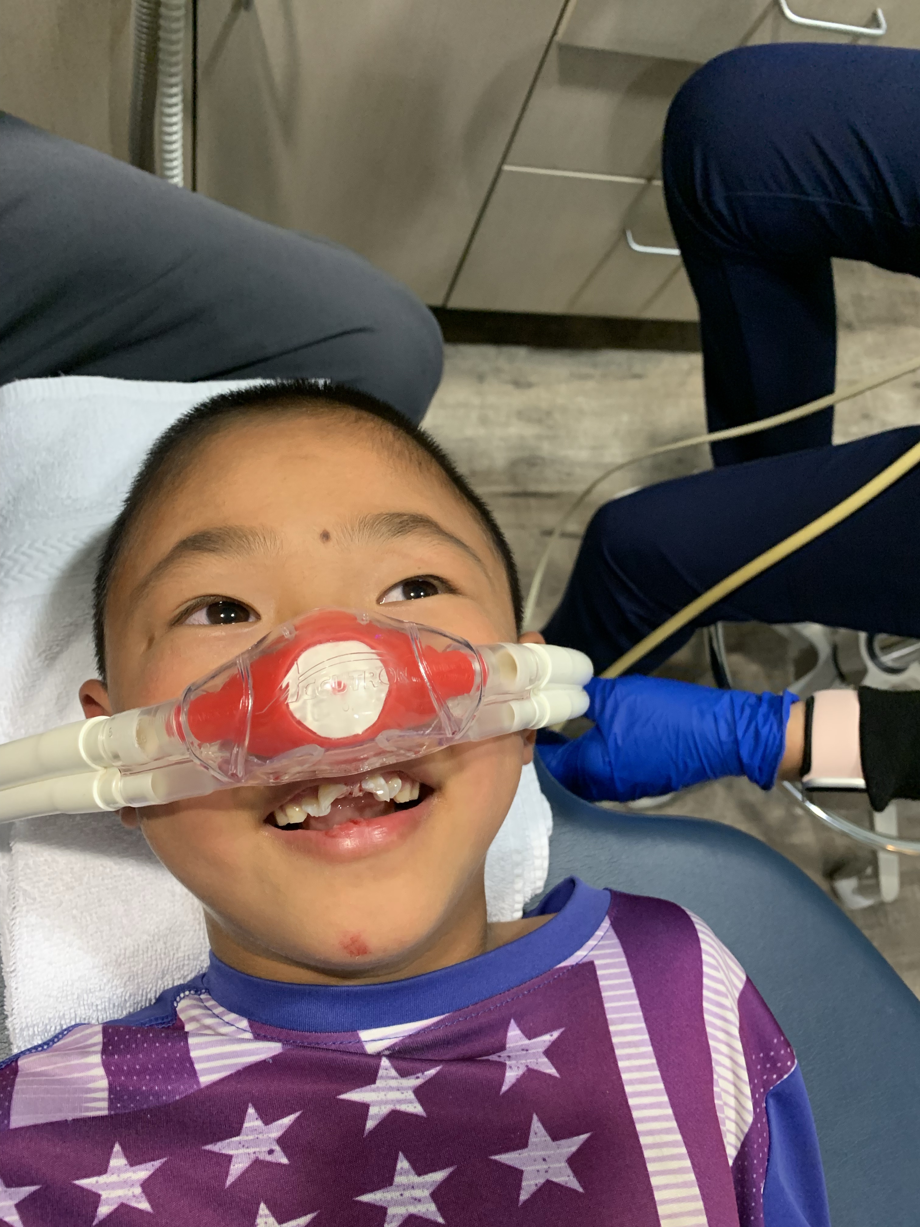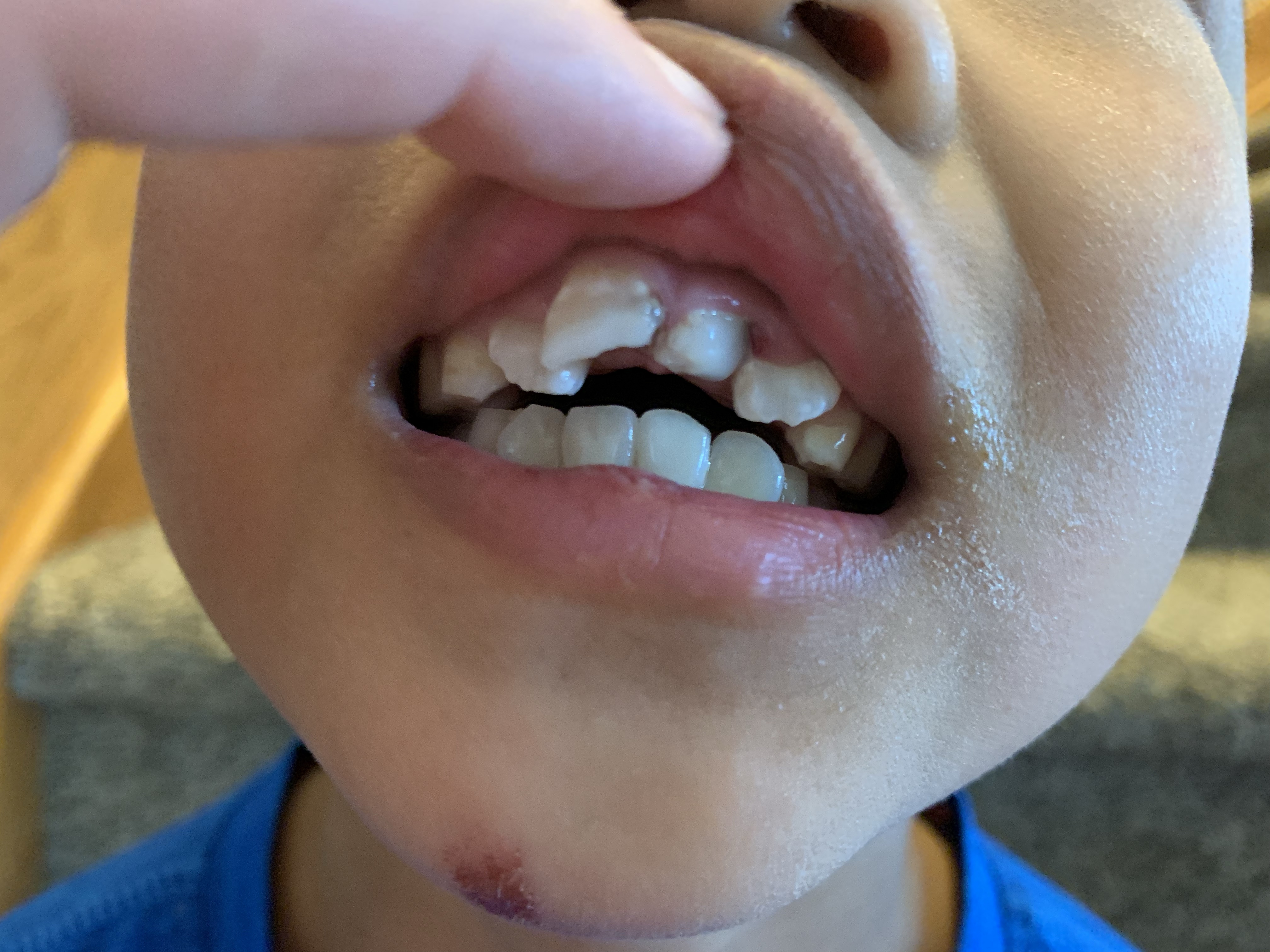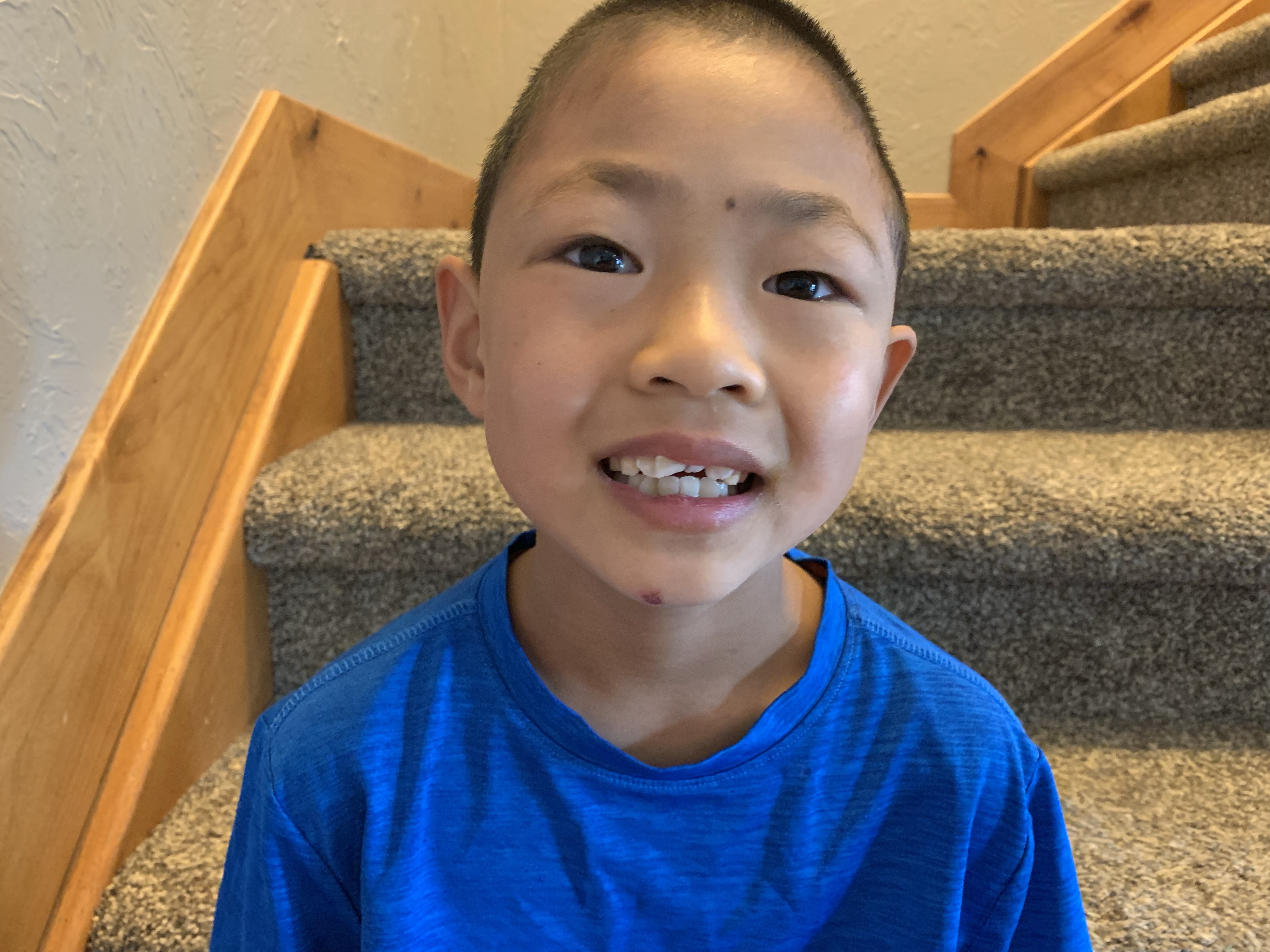 You know, really teeth are over-rated. Especially permanent teeth. At least that seemed to be Edric’s thoughts a couple of weeks ago. We were gearing up for our after dinner bike ride around the block and I was grabbing my shoes when I heard Edric start to cry, and it was one of those cries where you know he is hurt. I ran out to the kitchen and Clint had him and a towel to his mouth. I asked what was wrong and Clint just told me “I don’t know, his mouth is bleeding”. I took a look inside and yes, he had a small abrasion on his lower lip that was bleeding but the bigger issue is that his two front permanent teeth were completely broken off and shaped rather like vampire teeth. We called the dentist and they had an on call dentist that quickly called me back and I sent him photos and he asked how soon we could be at the office. So our Friday night bike ride quickly turned into an Friday night at the dentist office adventure. I got a few more details from the other kids who had witnessed the fall, and really it was a simple turn the bike too quick and he flew off and landed on his front teeth. Thankfully the kids all know not to get on their bikes without helmets on. So Edric and I made our way to the dentist’s office where they examined him and then took some xrays and thought that they could likely save the roots of both teeth if they did a mini root canal on the one that was split a good ways up into his gum and to clean out the root on the other and build partial teeth. They gave Edric laughing gas and numbed him up and turned on Garfield and he was happy as could be. It took a couple of hours and was way past Edric’s bedtime when we left but he was in good spirits and the dental team were all great. We’ll head back this week to make sure the roots are still looking good and then hopefully schedule a time for them to rebuild full teeth from the roots that are there in a couple of weeks. He will likely need to have an orthodontist bring one of the teeth down a bit so they can properly cap it because it broke so far up into his gum. I kind of have to laugh about a few things with all of it. When we had seen the dentist a few weeks before for the kids’ routine cleanings she had mentioned that Edric’s teeth were freckled and stained which was likely from an exposure to who knows what while he was in utero or early after birth long before he came home. She said if it ever bothered him when he got bigger they could put a veneer on it to make his teeth all one color. Well as it turns out he completely knocked them out so he won’t have to worry about a veneer at any time in the future. Also when we visited the orthodontist last year for our initial intake she had told us that she wanted to wait a year for his teeth to come in more…and so they came in and then got totally knocked out. We can never win. Last year he had knocked part of his cap off one of his front teeth that he had placed when he first came home, and so while the cap was still there the white part was gone so he looked like a jack-o-lantern for halloween with his teeth….this year he went for the vampire look I guess….I told him he can’t be a ghost next year. When we got home that evening the kids had picked up a little gift for him, they got him a blanket shaped like a shark which he has used every night since.
