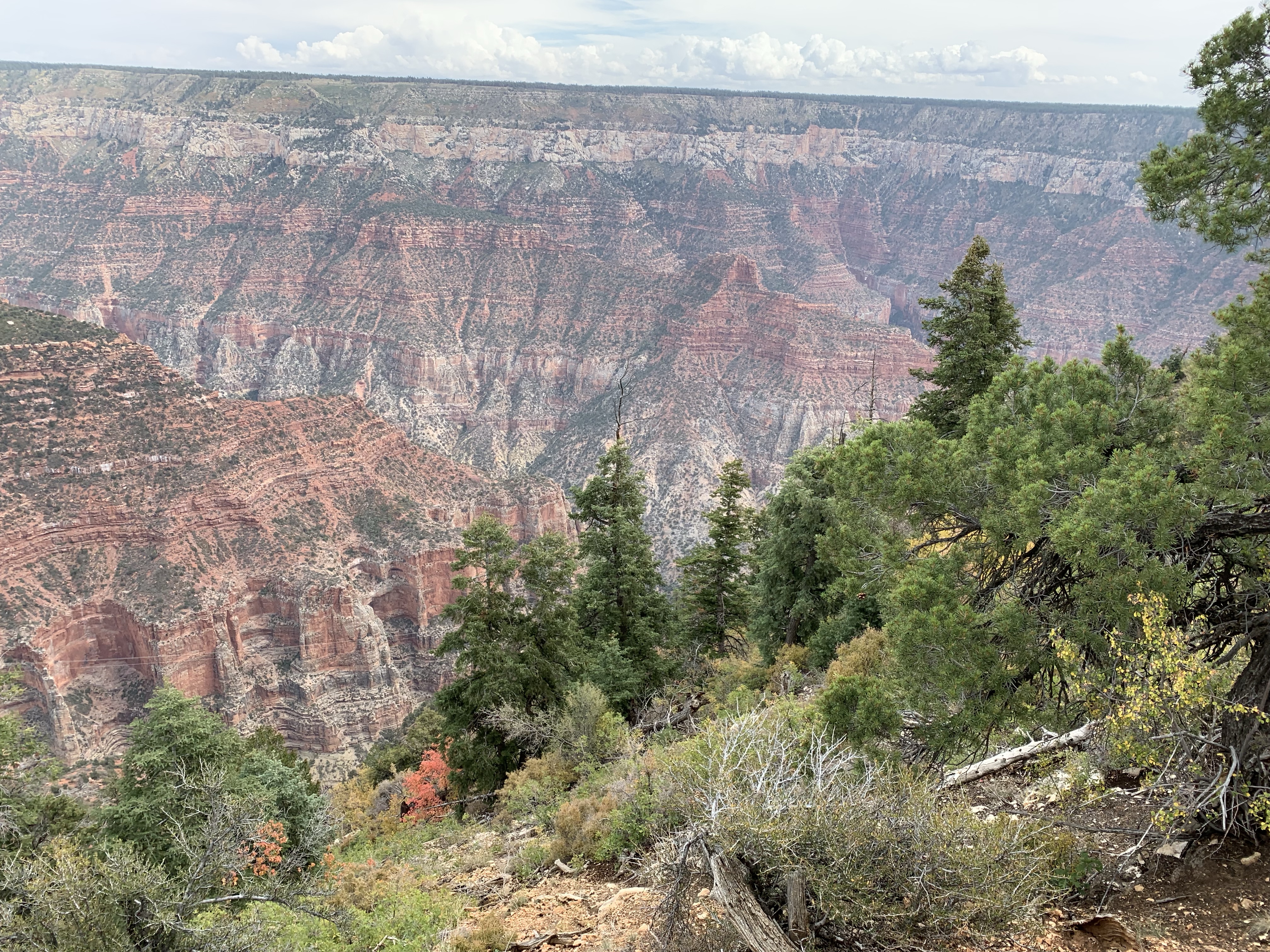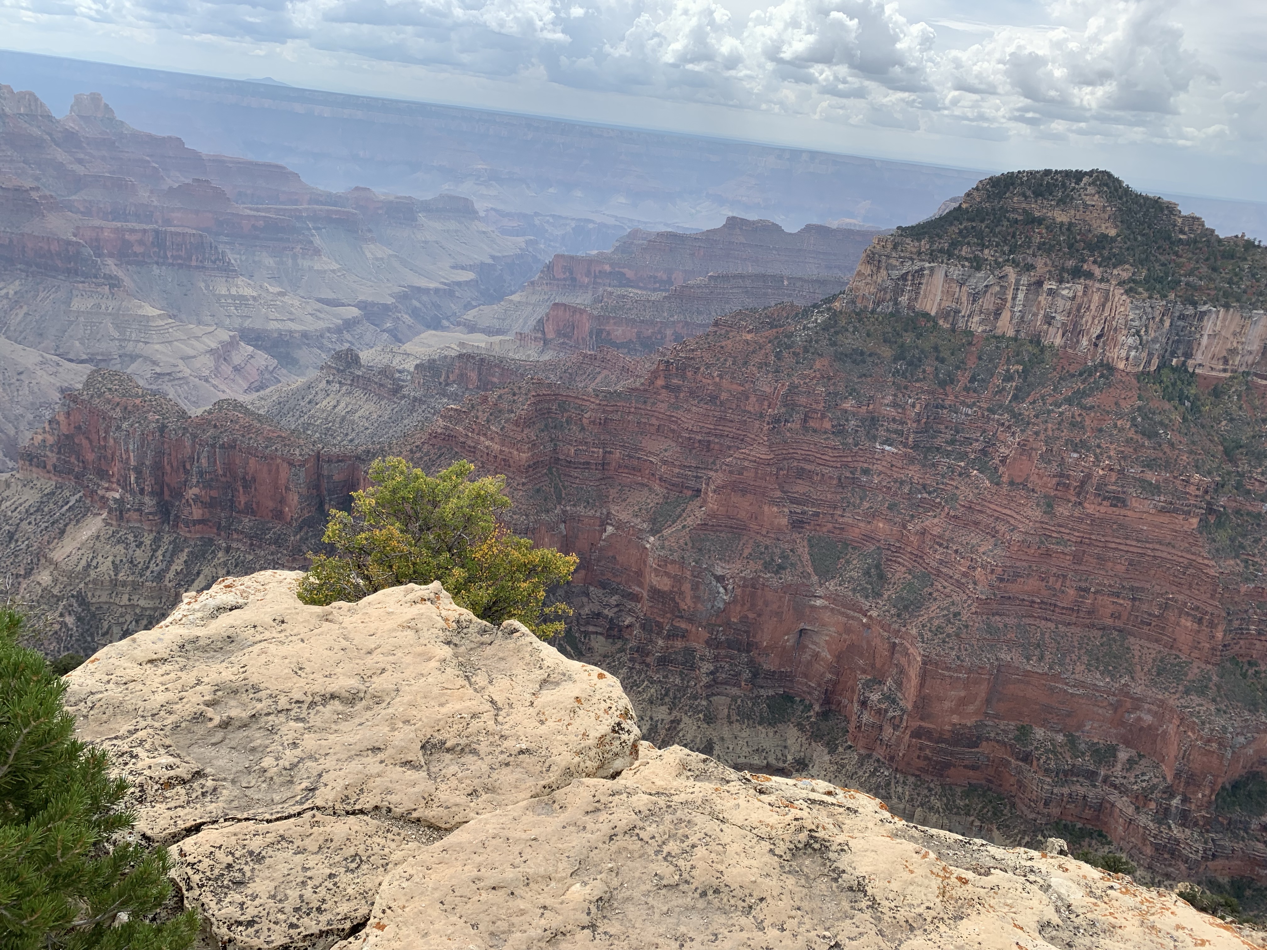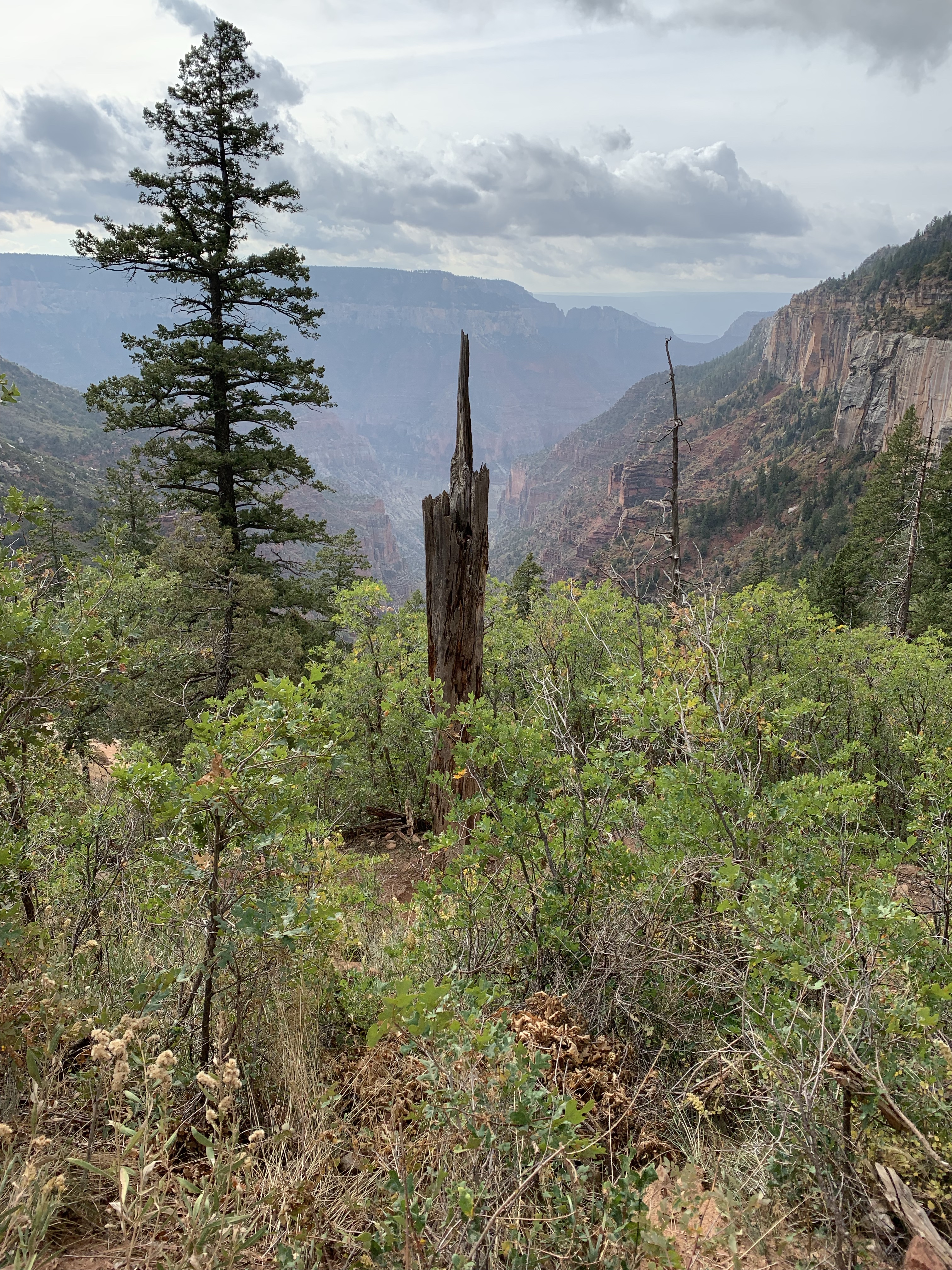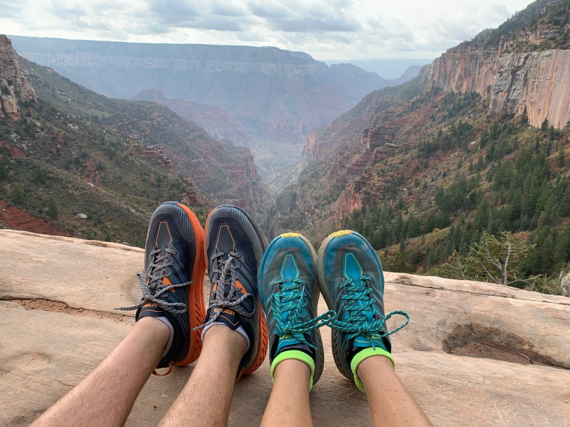 Clint and I traveled to southern Utah to do a 3 day trail running festival. Since we were only about an hour or so from the North Rim of the Grand Canyon, the day before the trail festival when we should have been resting our legs we decided to go and explore. It was a somewhat cloudy and overcast day but that didn’t stop us. I think one does not realize how big the Grand Canyon is until one is standing on the rim or even hiking down below the rim. We chose to do the North Kaibab Trail which travels all the way down to the bottom and the Colorado River and then connects either with the South Kaibab Trail or the Bright Angel Trail to hike out of the canyon on the other side. I knew we weren’t going to go all the way down to the Colorado River because that would mean we would have to go all 5000 ft back up and out, but we wanted to at least travel down a ways into the canyon. As it was we ended up hiking 3 miles down but actually dropped a little over 2000 feet down in elevation. The trail and views even with the clouds and haze were still amazing. We ended up hiking all the way to the Redwall Bridge and then began our climb back out of the canyon. It was steep but still amazing. After making our way out we drove a bit to the Visitor Center and walked the rim to some of the outlooks. I hope to go in the next year or two with the kids all the way down to the river and camp and then work our way back out over a few days. The Grand Canyon truly is amazing and breathtaking.