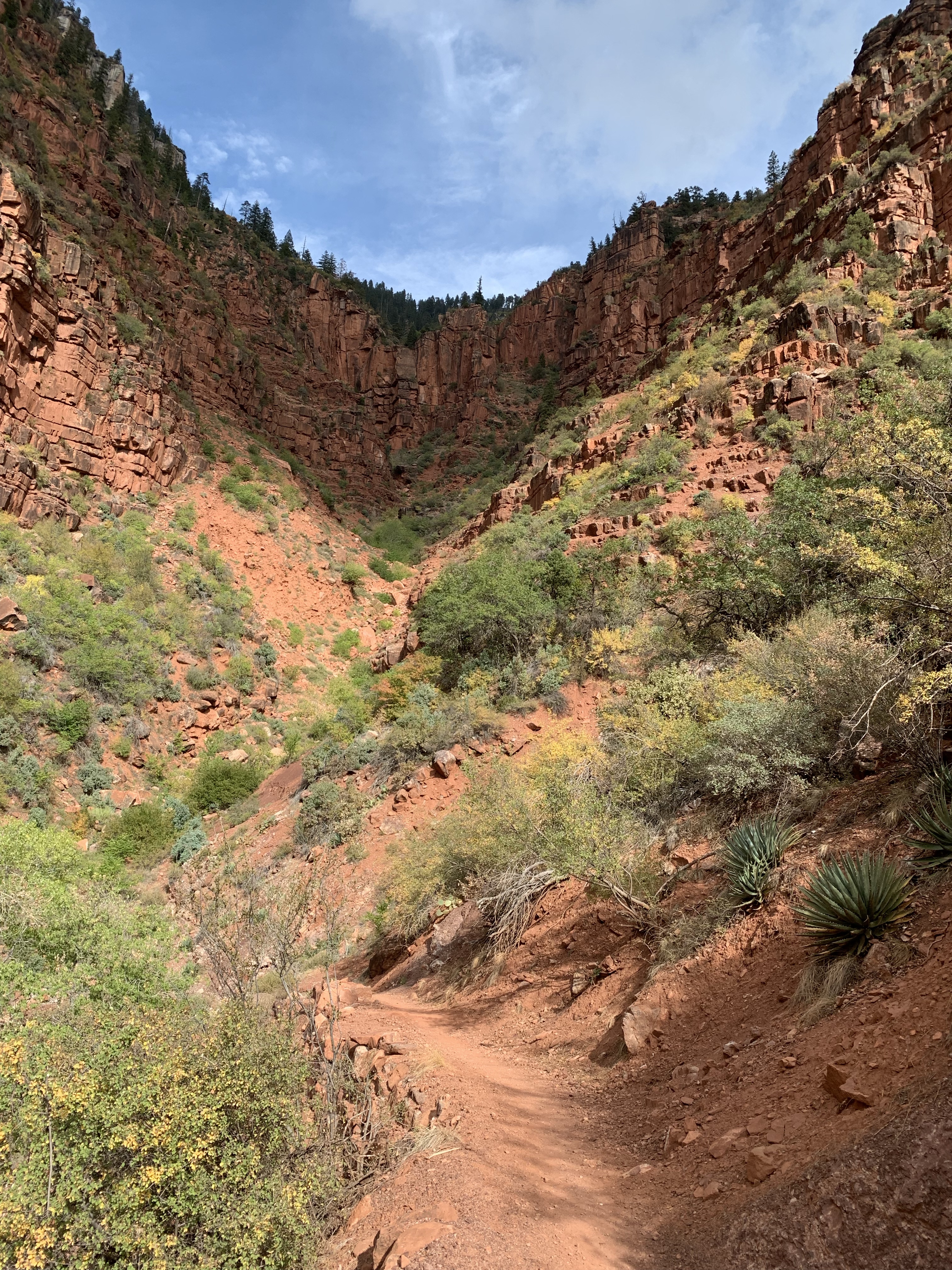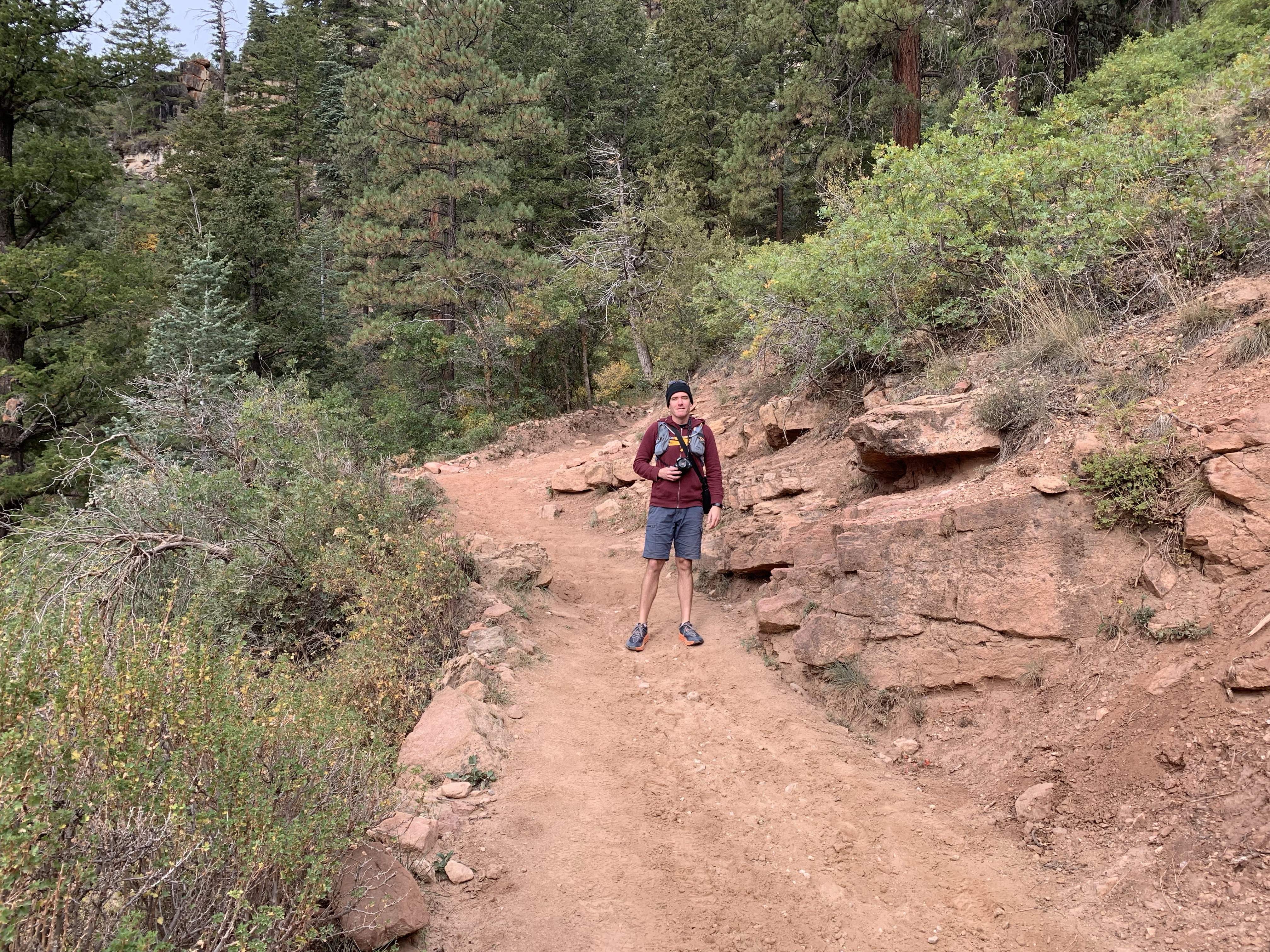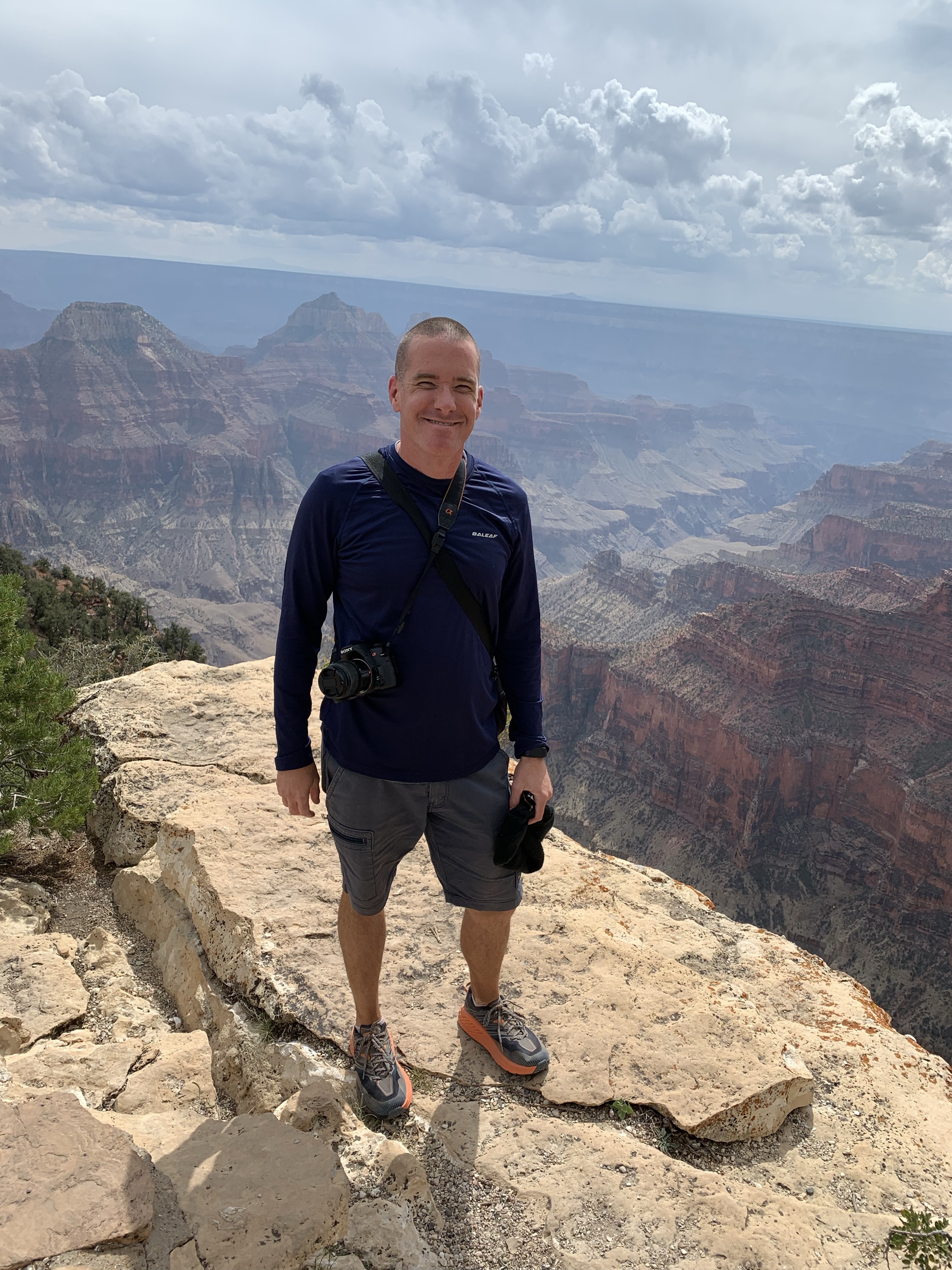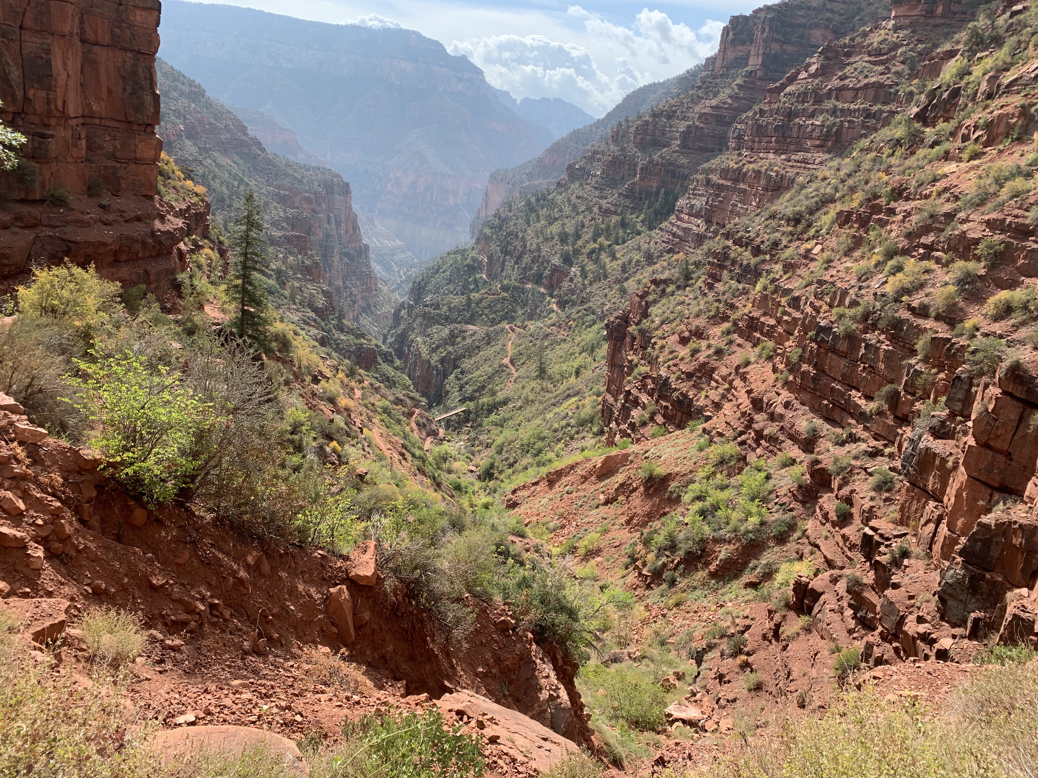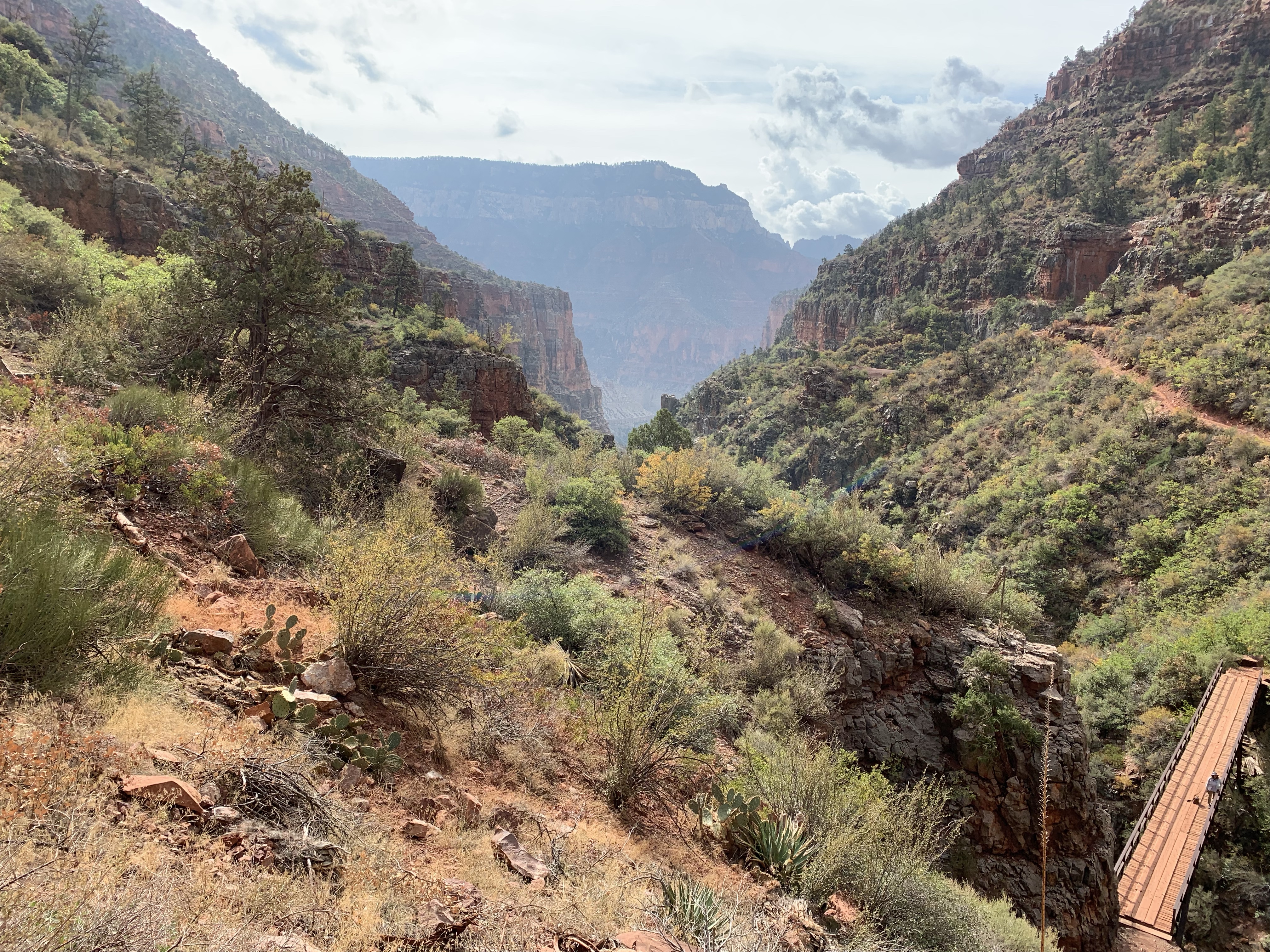 Clint and I traveled to southern Utah to do a 3 day trail running festival. Since we were only about an hour or so from the North Rim of the Grand Canyon, the day before the trail festival when we should have been resting our legs we decided to go and explore. It was a somewhat cloudy and overcast day but that didn’t stop us. I think one does not realize how big the Grand Canyon is until one is standing on the rim or even hiking down below the rim. We chose to do the North Kaibab Trail which travels all the way down to the bottom and the Colorado River and then connects either with the South Kaibab Trail or the Bright Angel Trail to hike out of the canyon on the other side. I knew we weren’t going to go all the way down to the Colorado River because that would mean we would have to go all 5000 ft back up and out, but we wanted to at least travel down a ways into the canyon. As it was we ended up hiking 3 miles down but actually dropped a little over 2000 feet down in elevation. The trail and views even with the clouds and haze were still amazing. We ended up hiking all the way to the Redwall Bridge and then began our climb back out of the canyon. It was steep but still amazing. After making our way out we drove a bit to the Visitor Center and walked the rim to some of the outlooks. I hope to go in the next year or two with the kids all the way down to the river and camp and then work our way back out over a few days. The Grand Canyon truly is amazing and breathtaking.