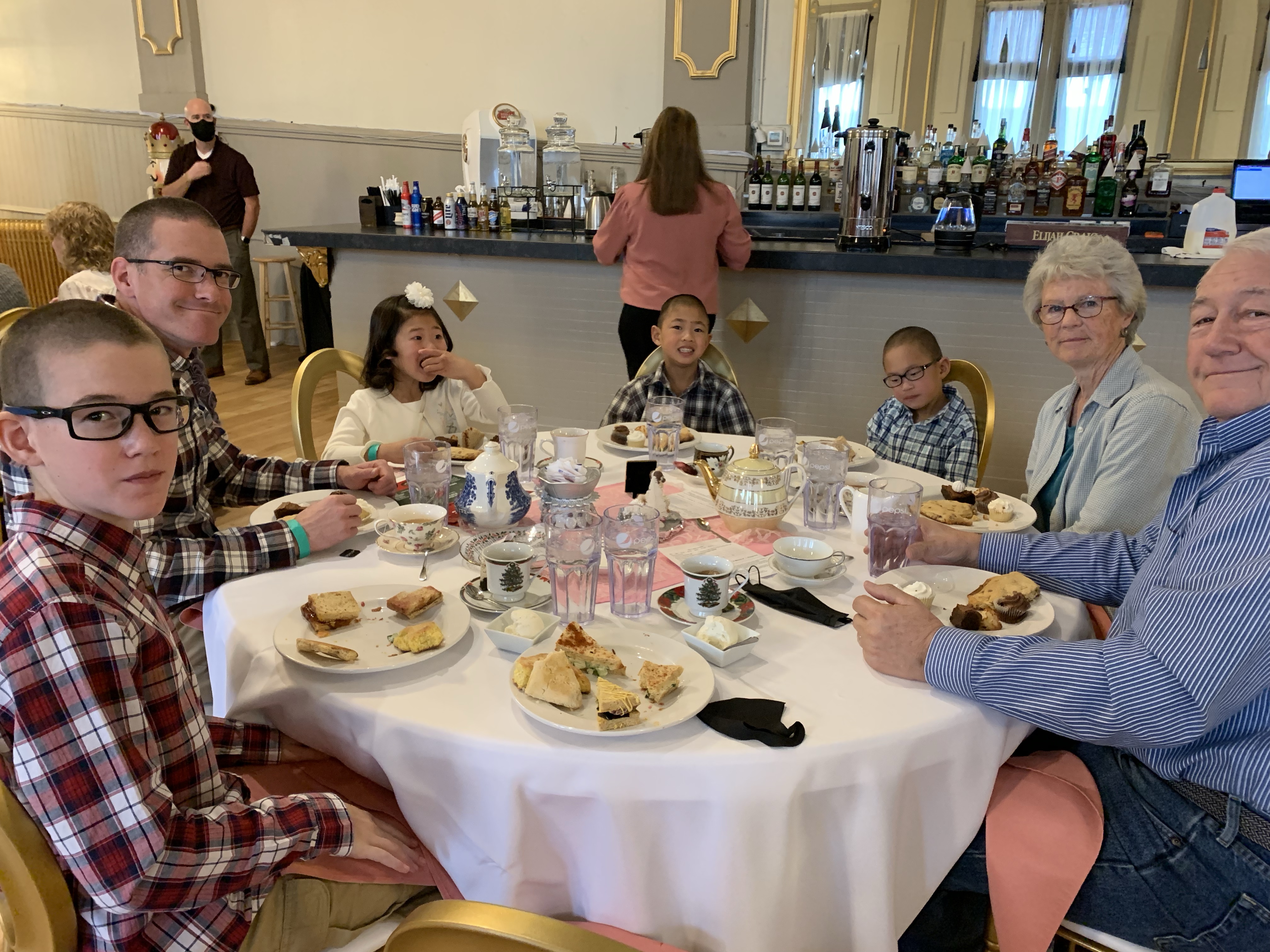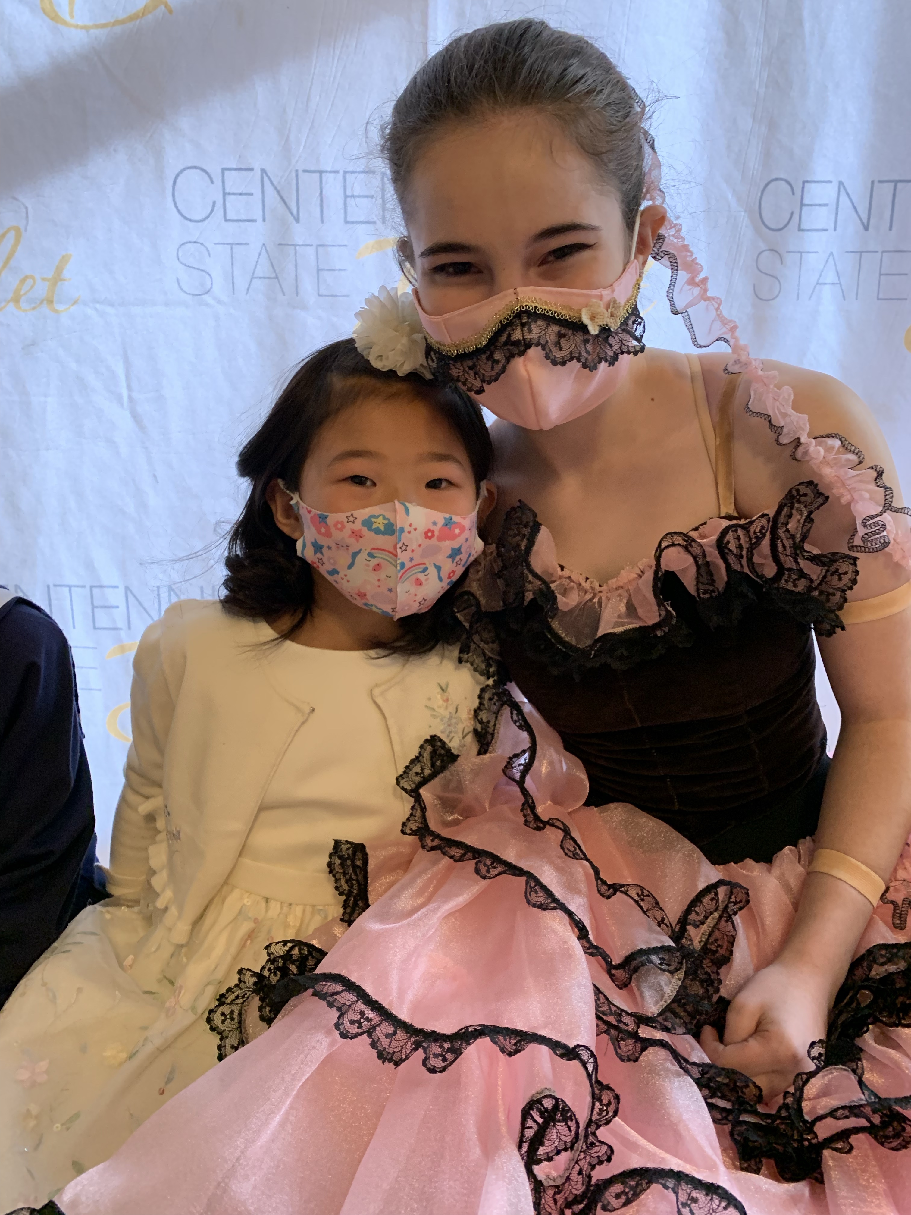 Caedmon and I first attended Sugar Plum Tea Party 3 years ago and then Coppelia and my mom and I went 2 years ago. This year however Caedmon got to be in it since he is going to be Fritz in the Nutcracker and he was very excited. They had two shows, the first was Saturday afternoon and I was the boys’ parent volunteer but since there were only 2 boys my job quickly morphed into taking photos at the photo booth of all those that attended that wanted photos with the dressed up dancers. I did manage to make sure someone got a shot of Caedmon and myself as well. Caedmon did great dancing his part and all the dancers had fun. It was a lot of fun to watch the little girls look at awe at the big dancers. My family including my parents all attended on Sunday for that show. The kids were actually excited to get dressed up and do something fancy. Coppelia had one request and that was that she wanted a photo with Miss Abby who is the big angel in the scene where she is a little angel. Miss Abby was more than excited to get her photo taken with Coppelia and Coppelia thought Miss Abby was so beautiful in her Spanish costume. Paxton was quite impressed with the little fancy spoons to stir his tea and everyone enjoyed the delicious treats we were served. Caedmon danced great and we all had fun watching him do something that he loves so much. After the show Coppelia saw her other favorite person, Miss Claire who is her ballet teacher so she got a photo with her as well. It was a great weekend and so well done and made us all excited for the official Nutcracker in just 3 weeks!