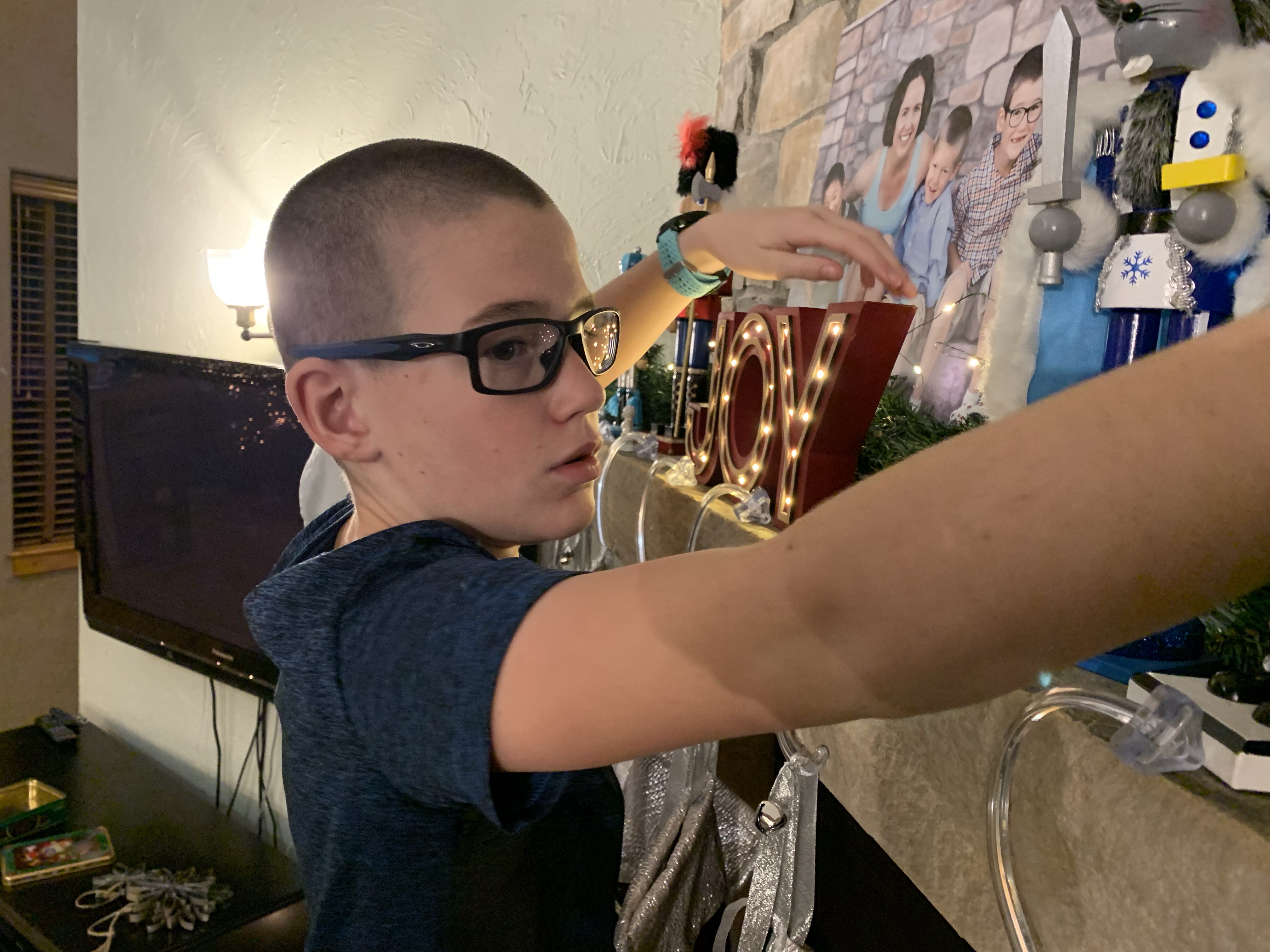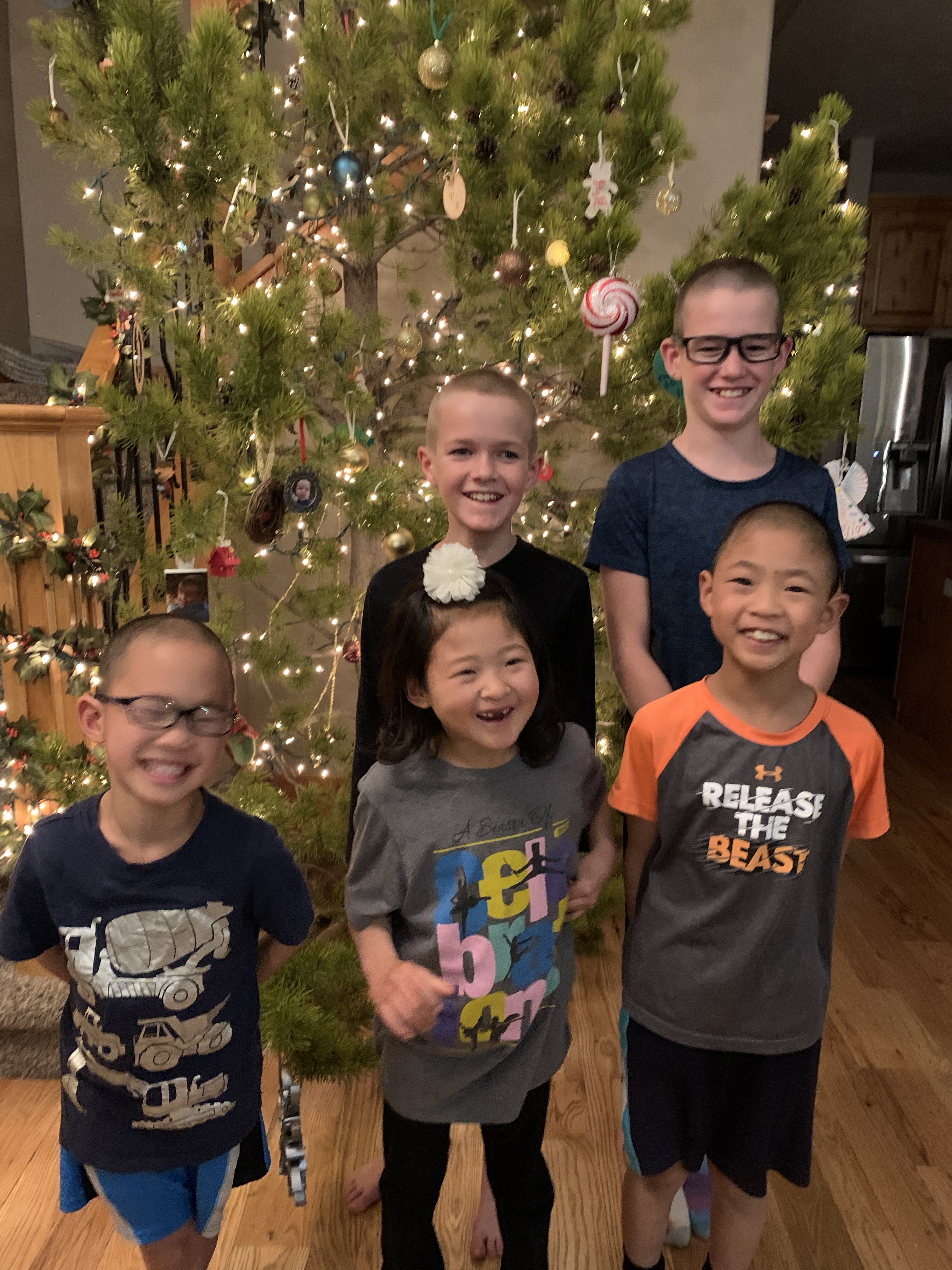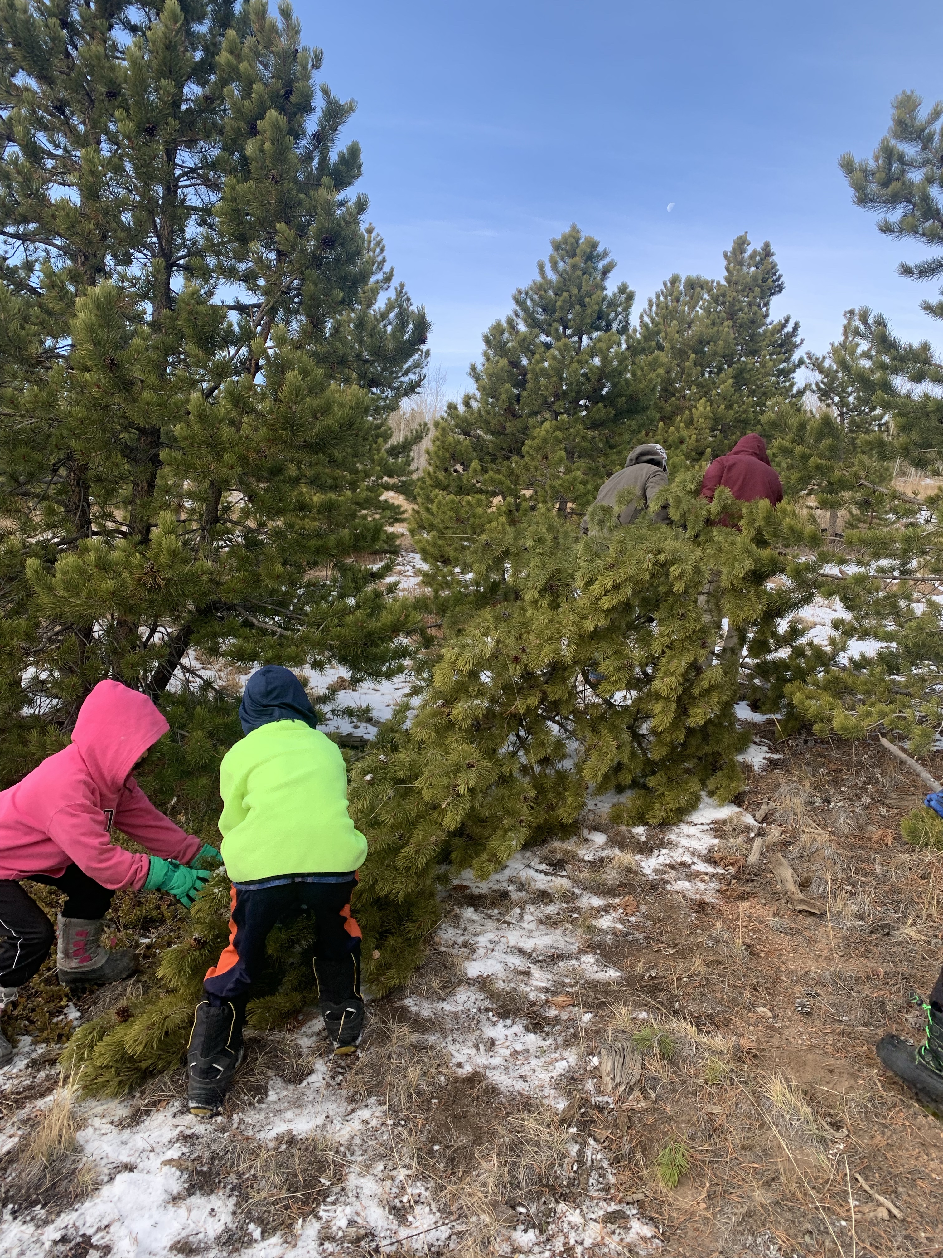Our Christmas tree was done in two parts this year. We headed up the mountain the day after Thanksgiving to find a tree. The sun was out but there was a chilly breeze. I expected it to take a good while for everyone to decided on a tree but the reality was that I’m pretty sure it took longer for everyone to put on their boots than to decide on the tree. Last year they took way longer. But they were happy with their choice, Paxton actually just wanted a big stick and made sure that we loaded his stick up with the tree. I had to then work Friday afternoon so after Clint and my dad got the tree standing upright we had to postpone decorating it. We spent Sunday evening after the Sugar Plum Tea Party decorating it and my parents were a huge help as well. Leighton and my dad worked on getting strands of lights to work….they all worked last year when I packed them away but this year a number didn’t want to work. While Clint and Paxton (who had at least 3 screwdrivers in his pants) put lights on the tree the rest of us decorated the railings and such. Then everyone helped out with the ornaments and did a good job of spreading them out and after a bit of a discussion, not arguing about who got to climb the ladder and step stool. In the end the tree was gorgeous and they all did a great job.