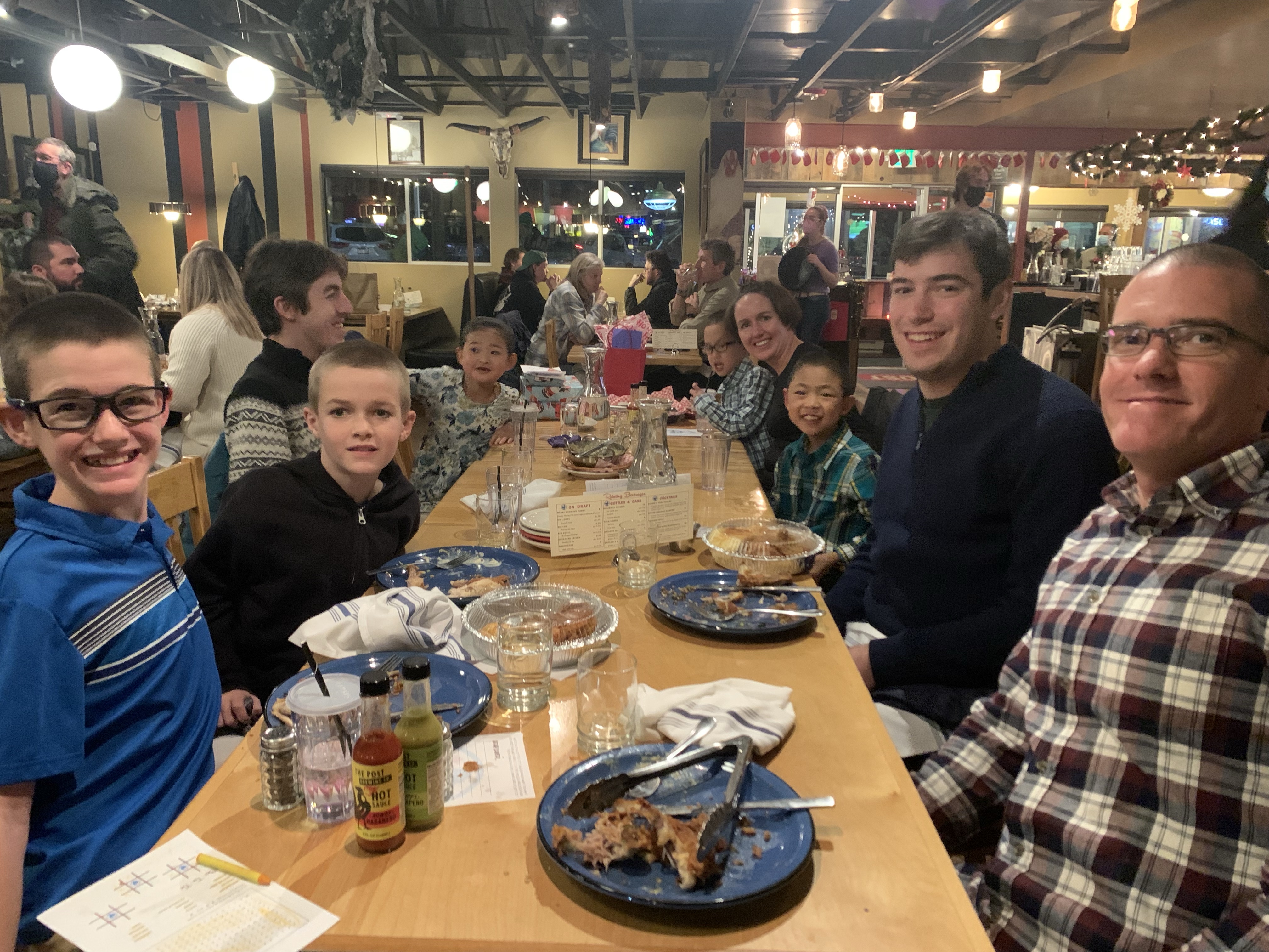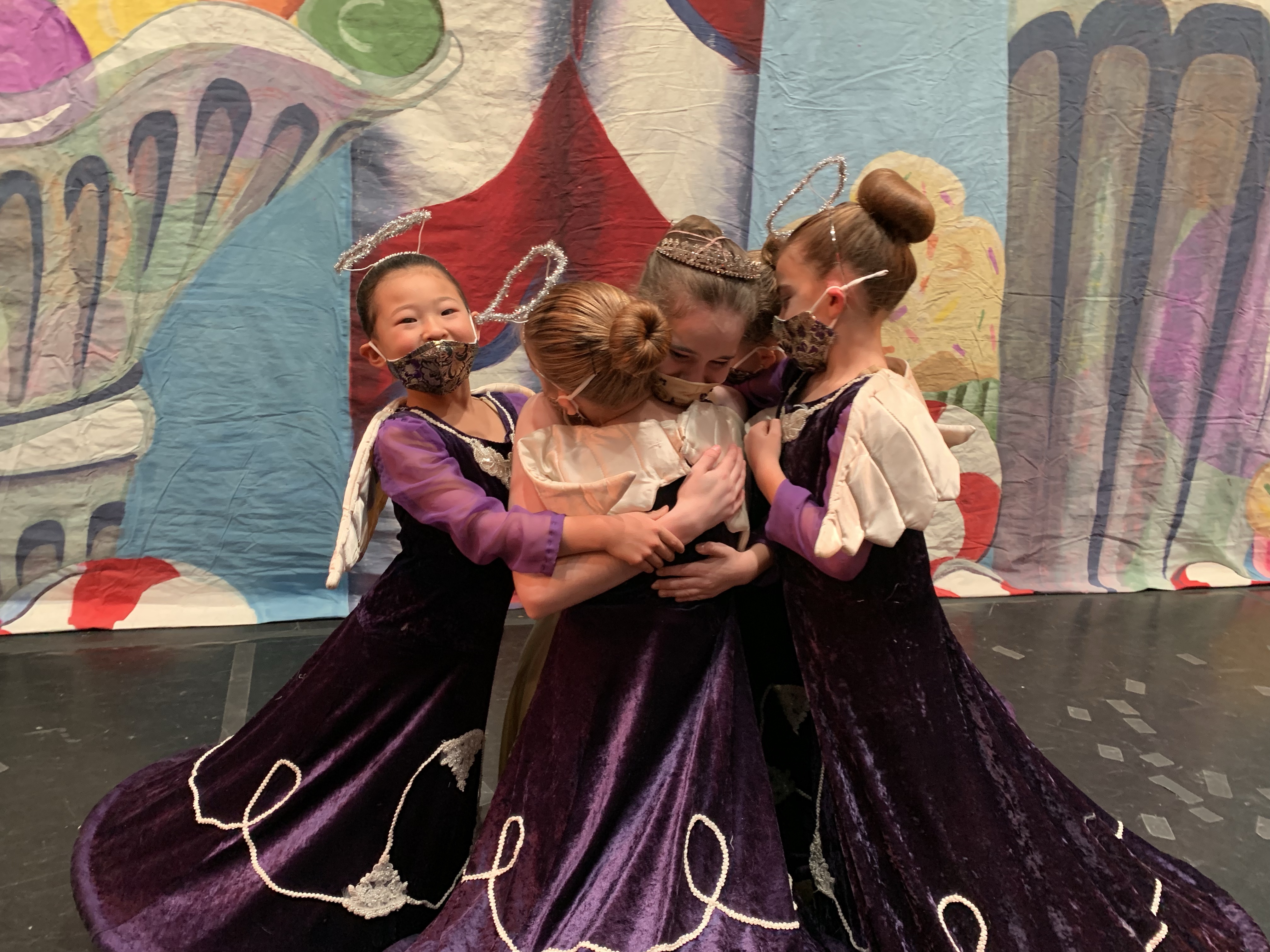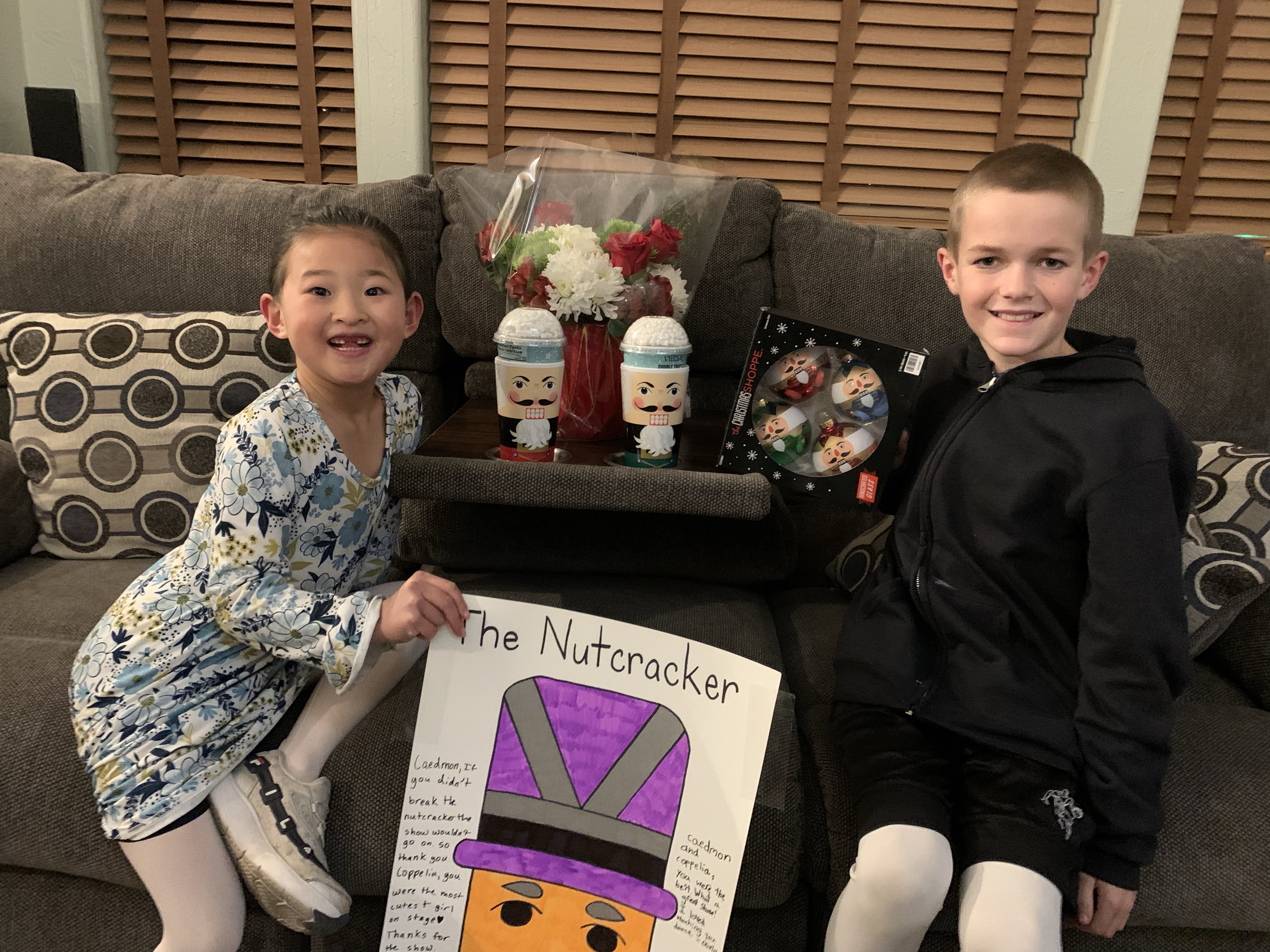 Over the past 10 days or so we have been living in Nutcracker land. Caedmon was in a mini Nutcracker for the Niwot Holiday Market 2 weekends in a row. It was really cute and he did a great job. The next day they had Nutcracker dress rehearsal which went really well. And then a couple of days later Caedmon and Coppelia had their ballet class and boys dance class in studio winter recital. Both kids did that. After we finished the recital there was photos in costumes for Nutcracker and Coppelia got to do some photos with her big Angel which was really sweet. And then it was the marathon of Nutcracker, tech rehearsal, dress rehearsal and two full shows with an extra practice or two thrown in. The kids did amazing! Caedmon was awesome as Fritz and had so much fun as a gingerbread. Coppelia was a cute baby mouse and a lovely angel and her big angel Abby did amazing encouraging and loving on the little angels. They all adore her. We got to go to dinner with Uncle Chris and Mr Adam after the first show and we ate yummy fried chicken. We had a number of friends come to the show to cheer the kids on and bring them flowers and a number of friends also watch the live stream (including Coppelia’s foster parents in South Korea!), and when we got home some friends had left goodies on our porch for the kids. After the show on Saturday Clint and the boys wanted to see it again so we bought extra tickets for them on Sunday. My parents also came on Sunday and really enjoyed the show. I worked backstage to help with the quick changes (and there were a lot this show) which was a lot of fun. I got to see the majority of the show from the wings and also help out and help things flow. It was a great Nutcracker for Coppelia’s first of hopefully many, and the first big role for Caedmon which was fun to see how much he has grown and developed as a dancer and entertainer.