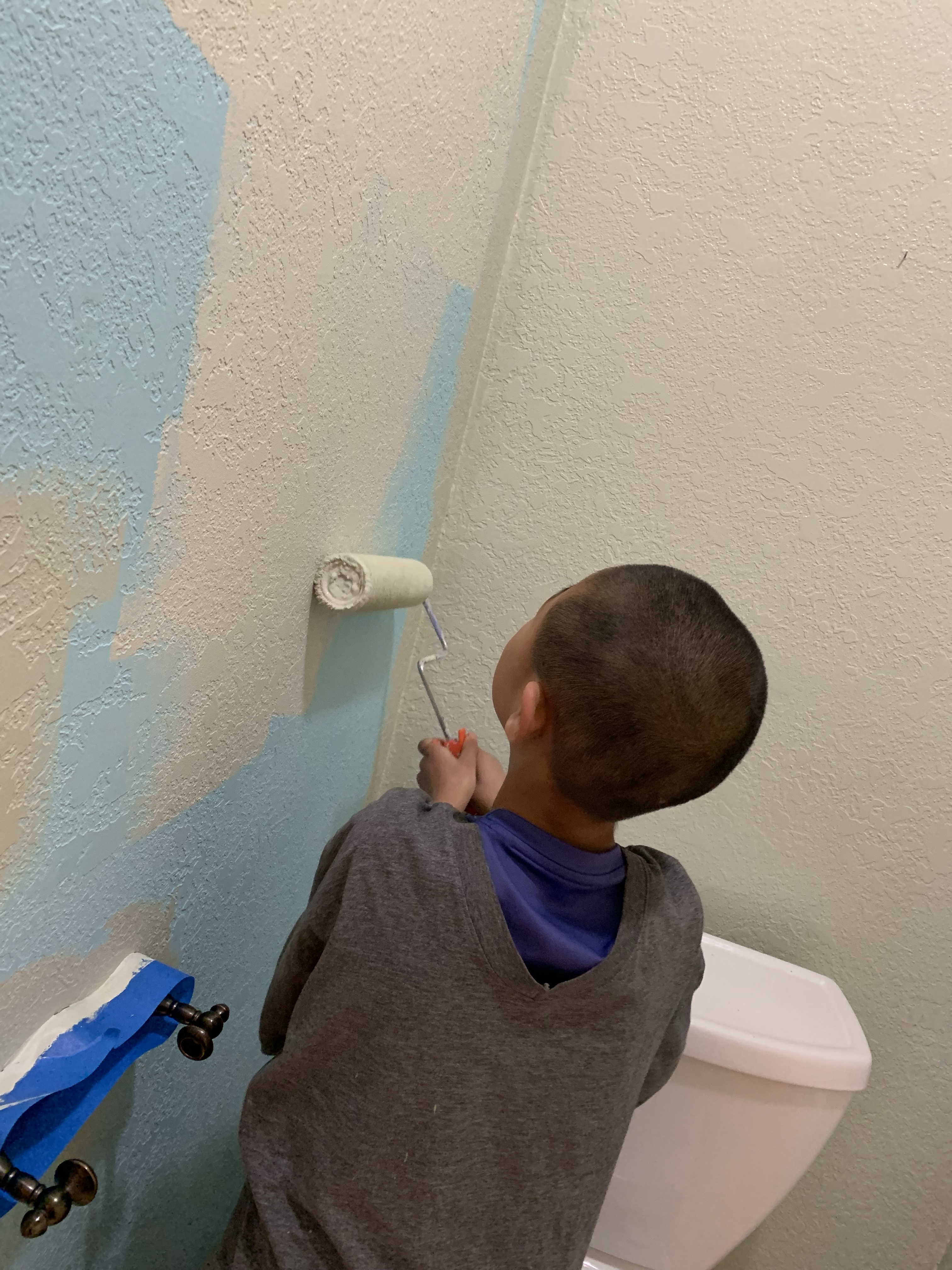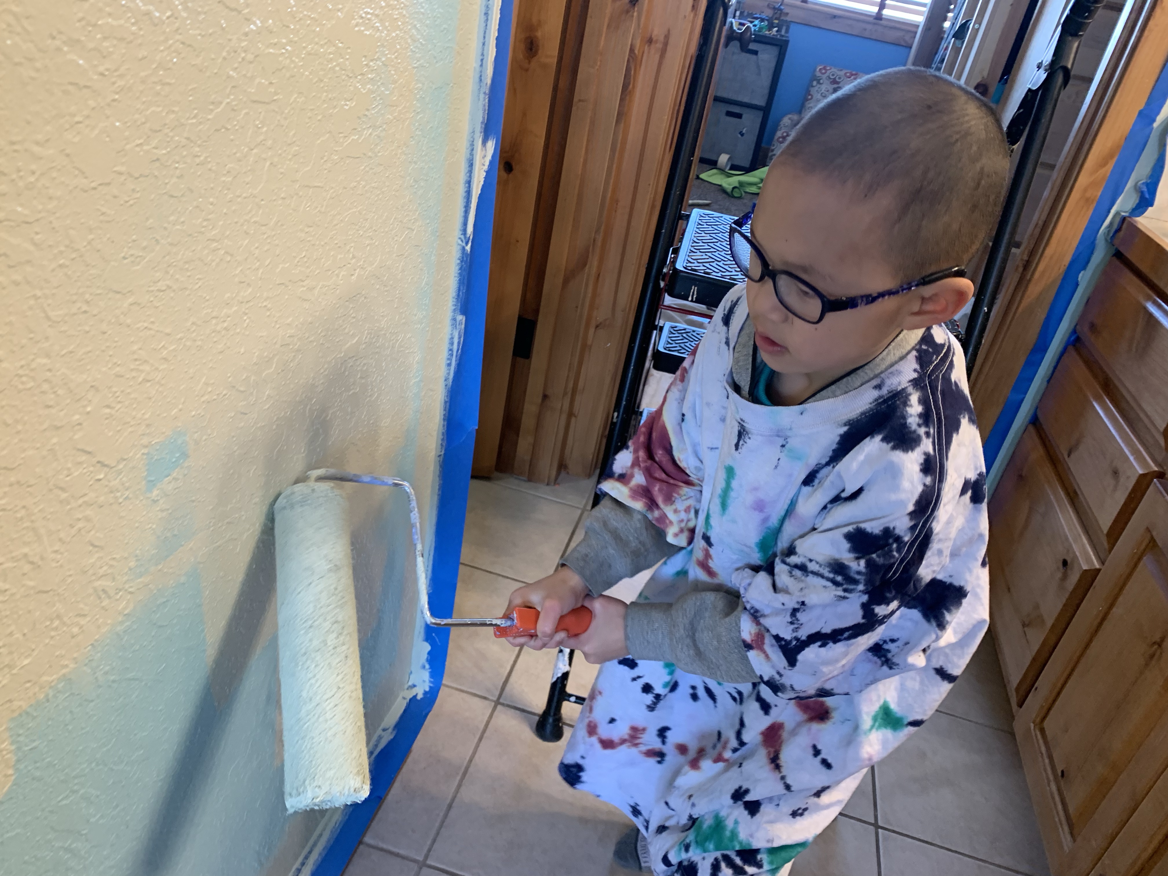 We all had a busy and full weekend this past weekend. Leighton had a meet in Texas so we dropped him and Clint off at the airport mid morning on Friday. Turns out they had a rough day of travel as they had to change planes and then rental car issues and all sorts of things. But they made it to Texas and still made it in time to watch the elites compete that evening at the same meet. Meanwhile without telling Clint I decided to pain the kid’s bathroom. It was a loud turquoise color that wasn’t even nice, and so I (with 4 helpers) painted it to a sage green that looked really good when it was all done. On Saturday we packed in a couple trips to the park while Coppelia in the morning and then Coppelia and Caedmon in the afternoon had ballet class and rehearsal. We also got to bring Paxton’s favorite friend Tora home with us for a few hours after ballet rehearsal. I caught the two of them running through the kitchen just briefly, not sure who smiled the most all evening. Clint and Leighton met up with his parents on Saturday and explored a park in Fort Worth and then late that afternoon headed to Leighton’s meet. Leighton did really well and had fun. He even got to meet Jonathon Horton who was on the 2008 and 2012 Olympic team and won two medals. Because Leighton finished in the top 5 (he was 4th) in parallel bars Jonathon Horton gave him his medal for that event which Leighton was really excited about. On Sunday Clint met up with some college friends for the morning before heading to the airport and I went hiking with the other kids. They did a great job and we hiked 4.5 miles. It was cool and got windy at the end but everyone did great. We were all excited to pick up Clint and Leighton at the airport and everyone was very tired and slept very well that night.