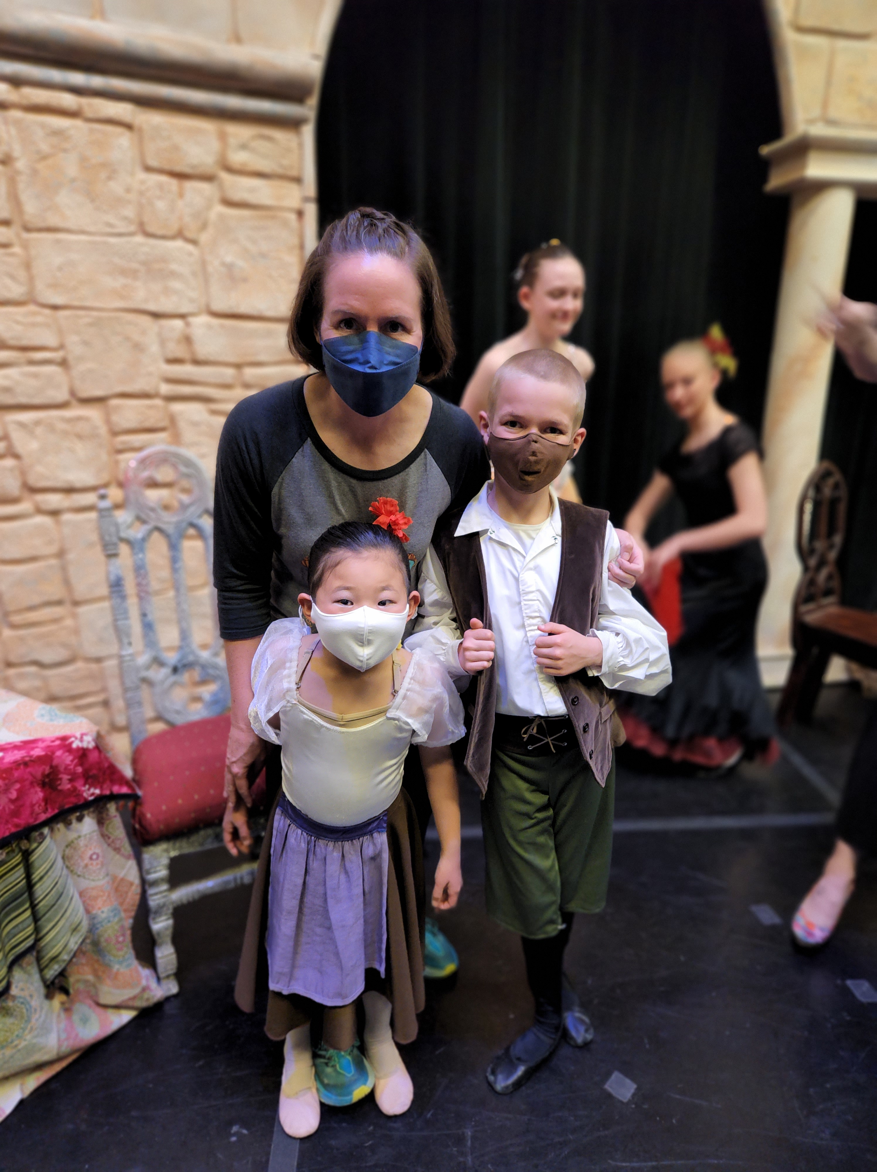 We had a weekend full of ballet. Caedmon and Coppelia were both in Don Quixote, or since no one could pronounce that properly “Donkey” as it became known in our house. Clint and my parents and the other kids came and watched for the Saturday show and enjoyed it. Caedmon and Coppelia put together flowers for their friends with little notes for the final show on Sunday. When we got to the theater on Sunday there was a set of horse trailers and Coppelia was so excited to go see the horses. Caedmon on the other hand told me “mommy I need to go in and get ready to dance”, so he headed in and Coppelia went to pet the horses. Coppelia loves all the girls but especially two of the seniors who have been her big buddies throughout the season and she was excited that she got to take them flowers. Not many sports/activities in todays world allow kindergartners to participate right along side high school seniors and become good friends. Coppelia has already told me that she is making cookies for Miss Abby when she goes to college and going to mail them to her. She is going to miss Miss Abby and Miss Hannah for sure. There was a guest dancer from California that danced the part of the main male character and Caedmon was excited to dance with him and watch him. Caedmon told him that he wants to be a professional dancer too. We were all very tired in the end but it was so much fun watching all the hard work that all the kids had put in come together.
