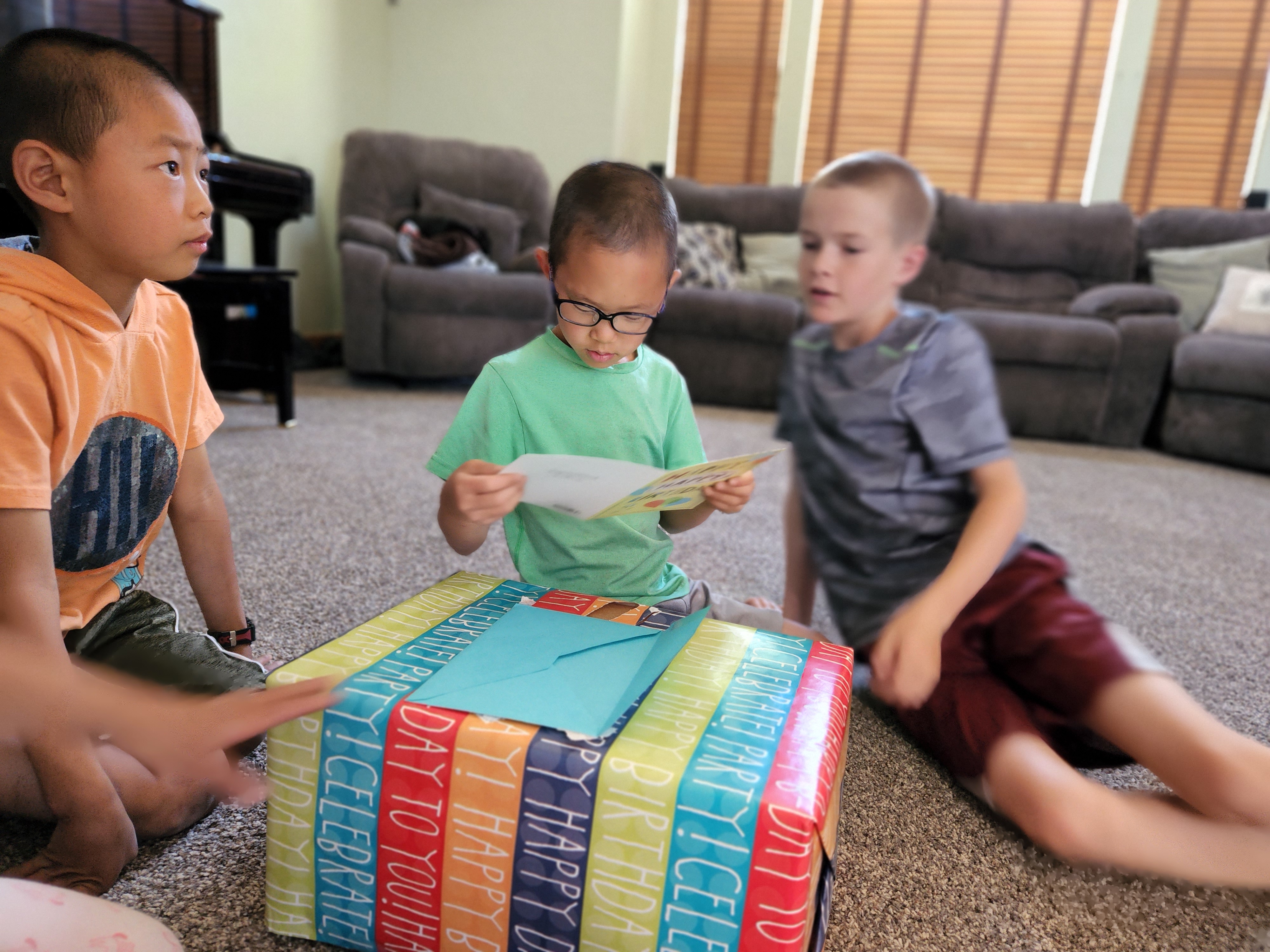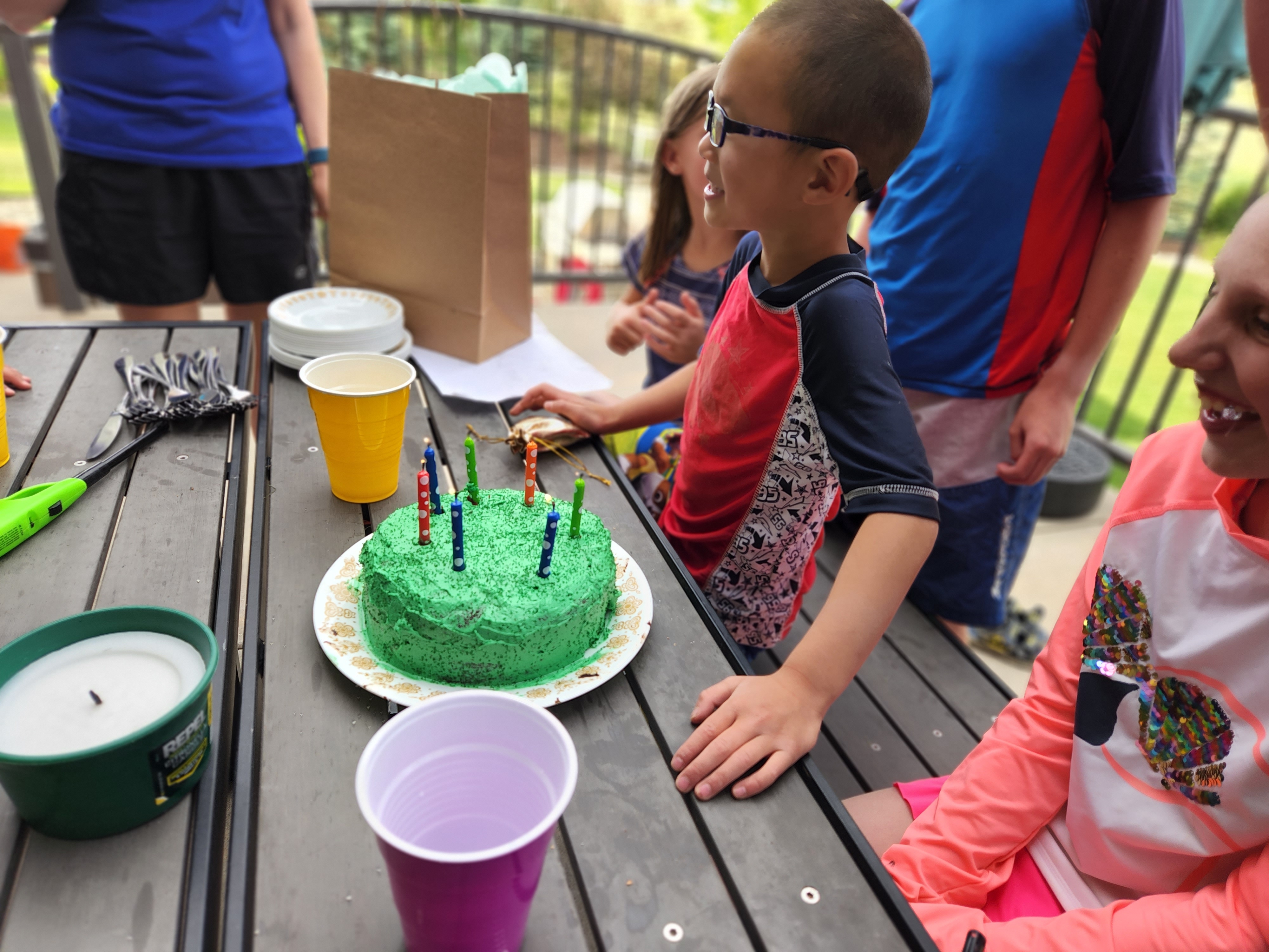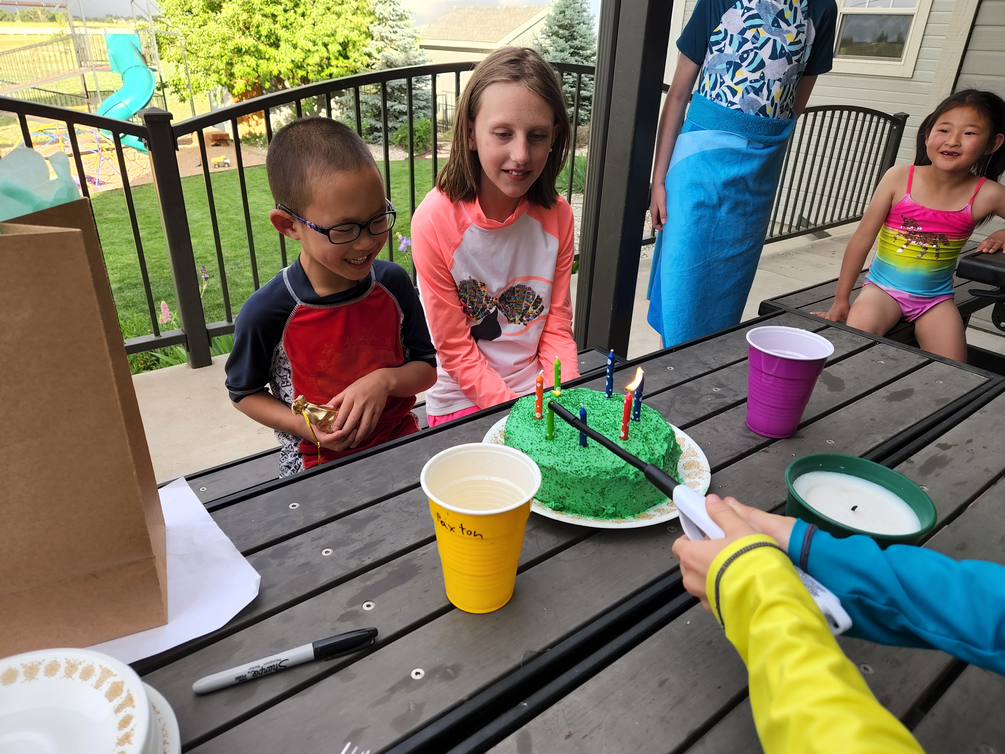Paxton turned 7 on the 10th and we celebrated in style.I think Paxton was born in the wrong century, he likes to wear top hats and ties and be “fancy”. He got some books and then a lego car from Clint’s parents and everyone in our in our family loves legos. After a park date with some friends we learned about EZY rollers and so he was very excited to get one of those and has been riding it around. My parents got him a top hat and a whole set of 18 ties and he has been wearing all of them at different times, even when he helped me make his cake. He had his favorite friends over for a pizza dinner and to play in the pool. They got him a fancy pocket watch so now he is very fancy. It was a great time celebrating him and he adds such character and fun to our family.