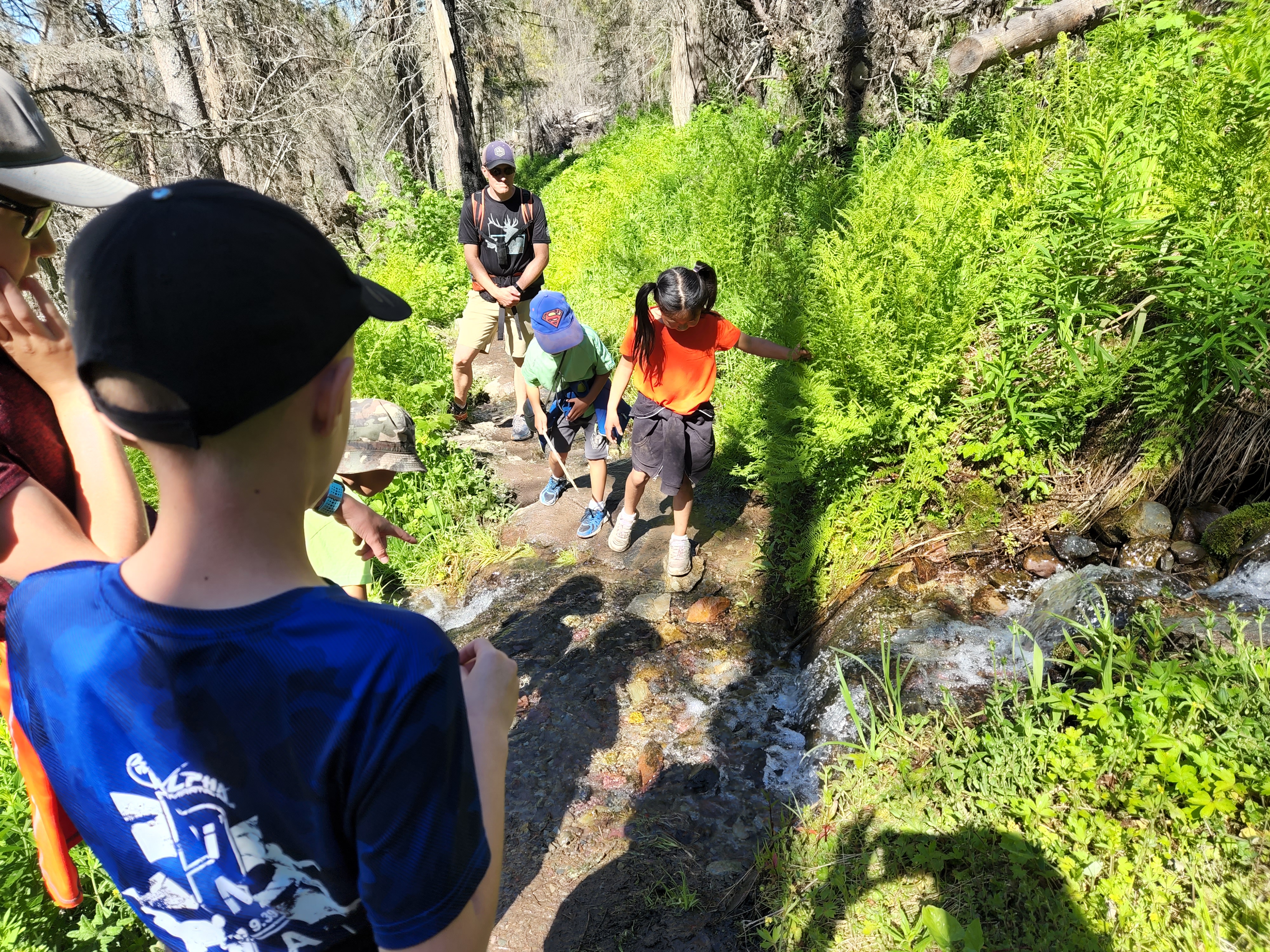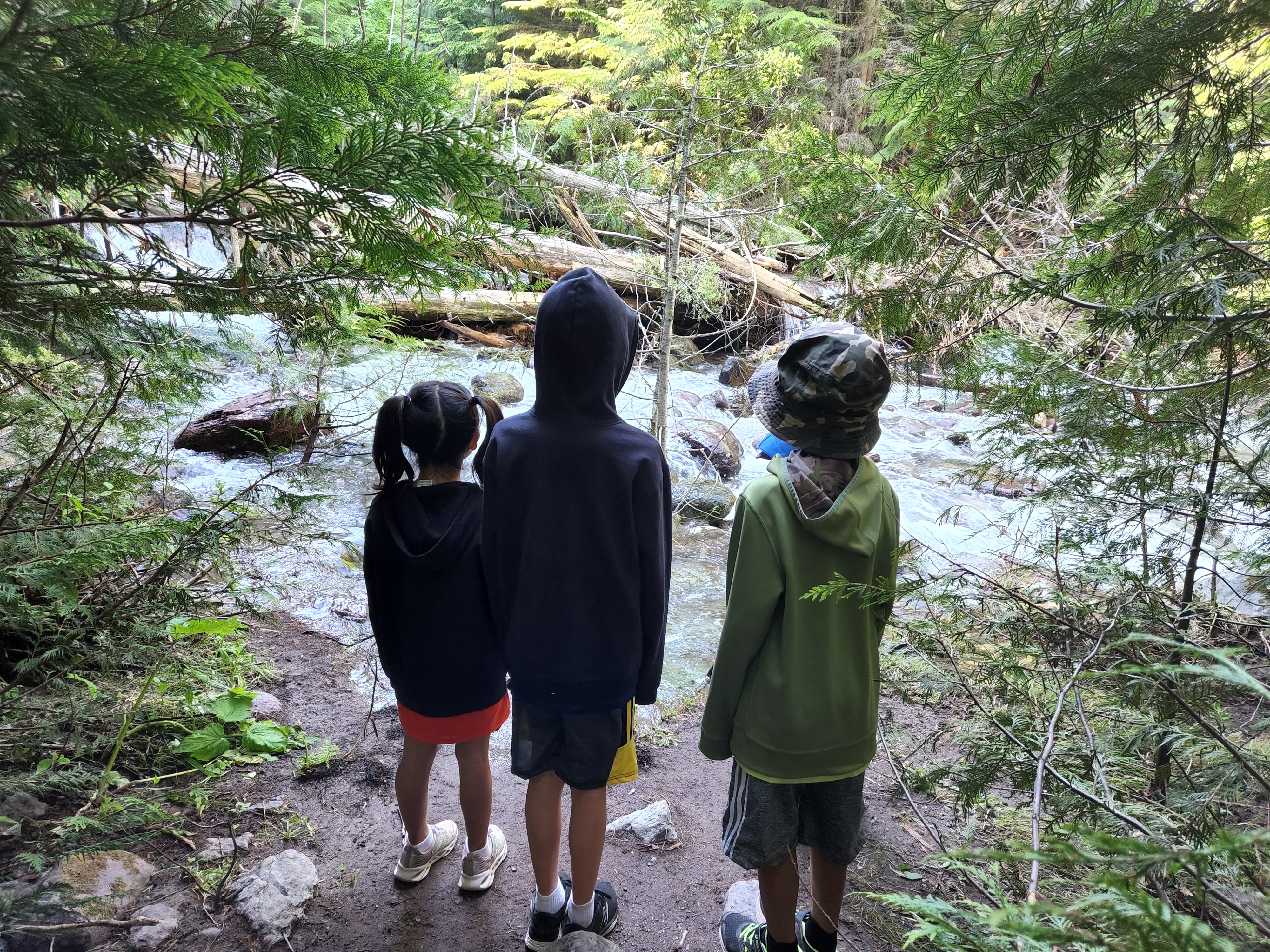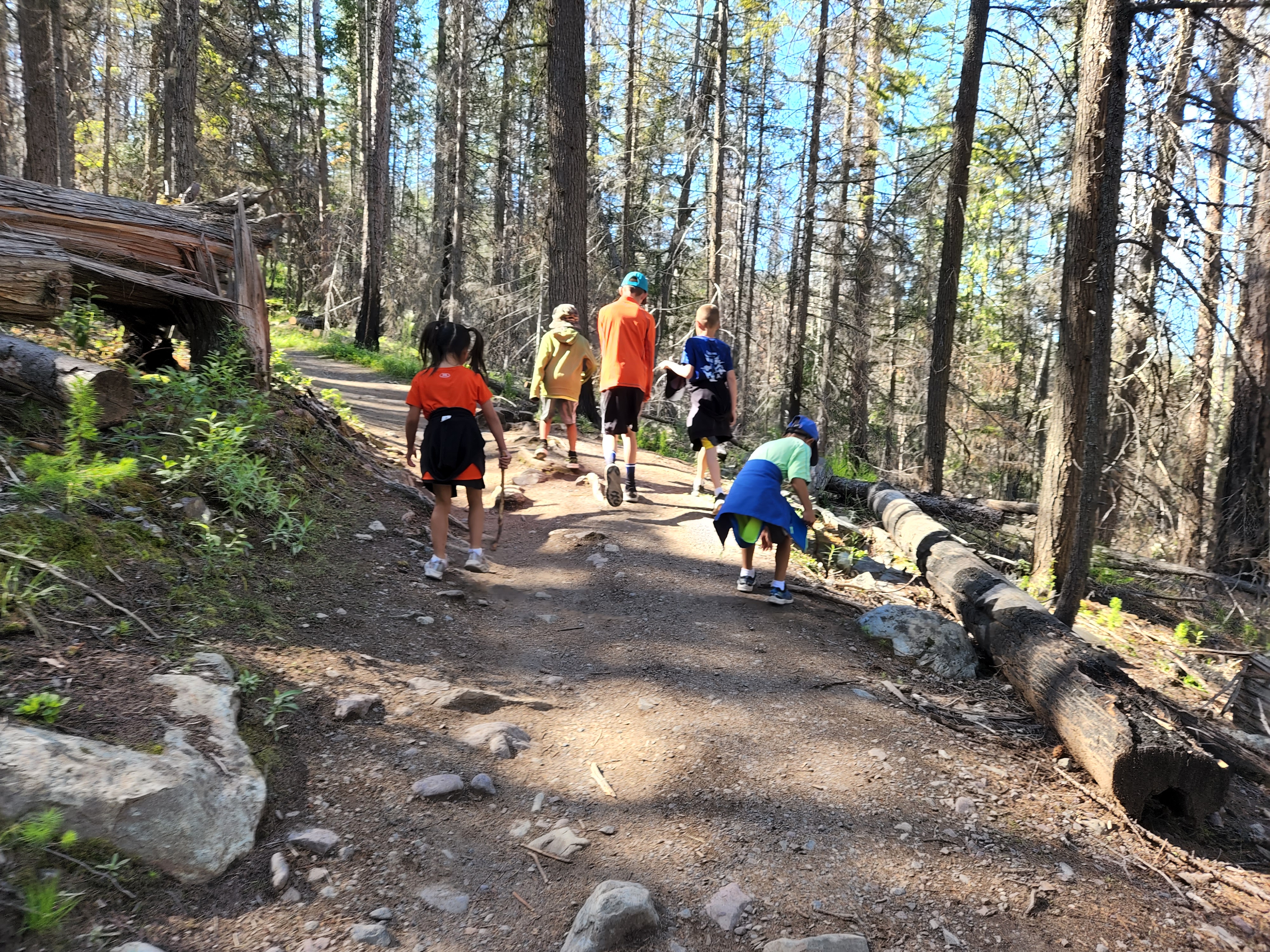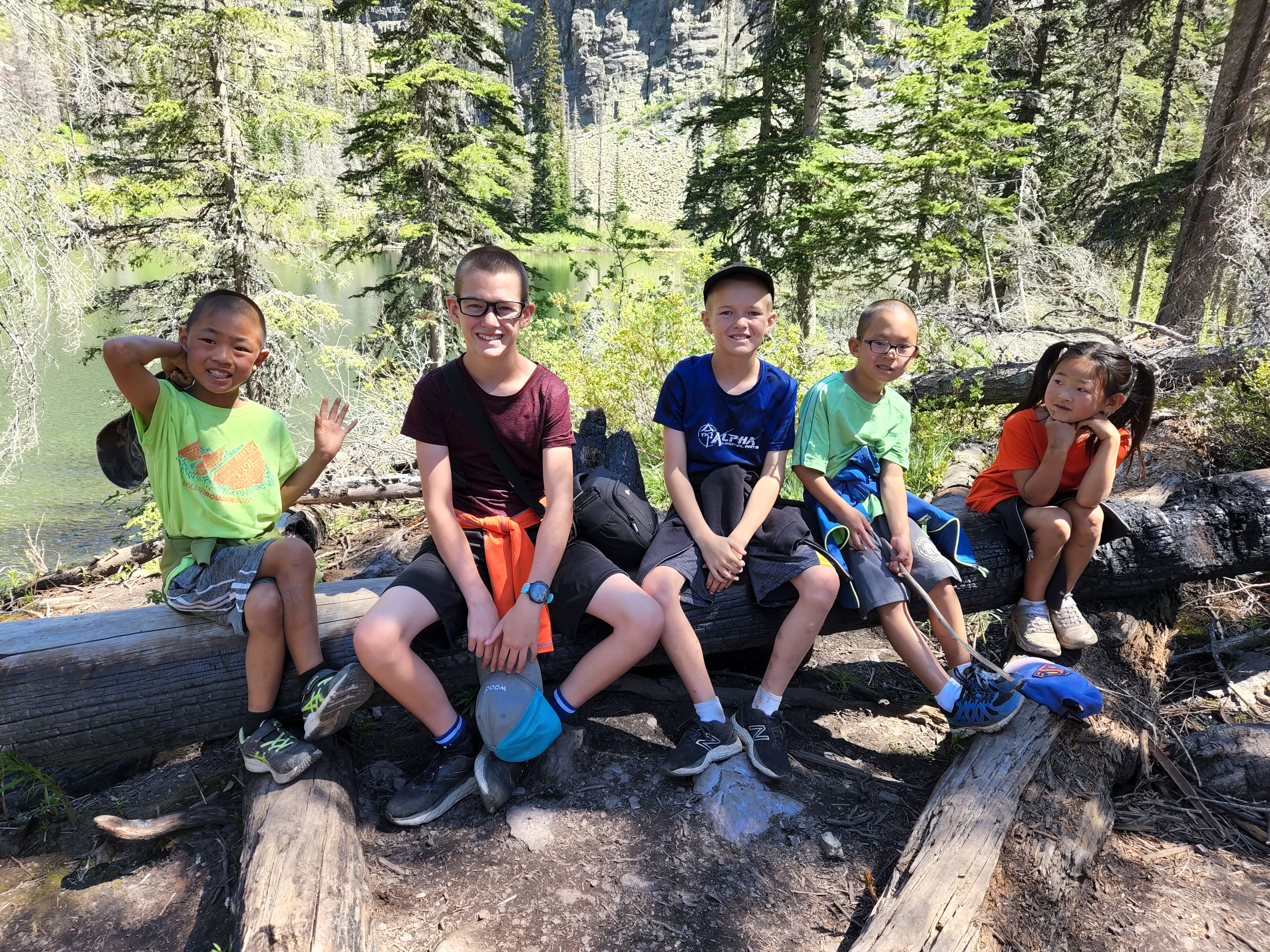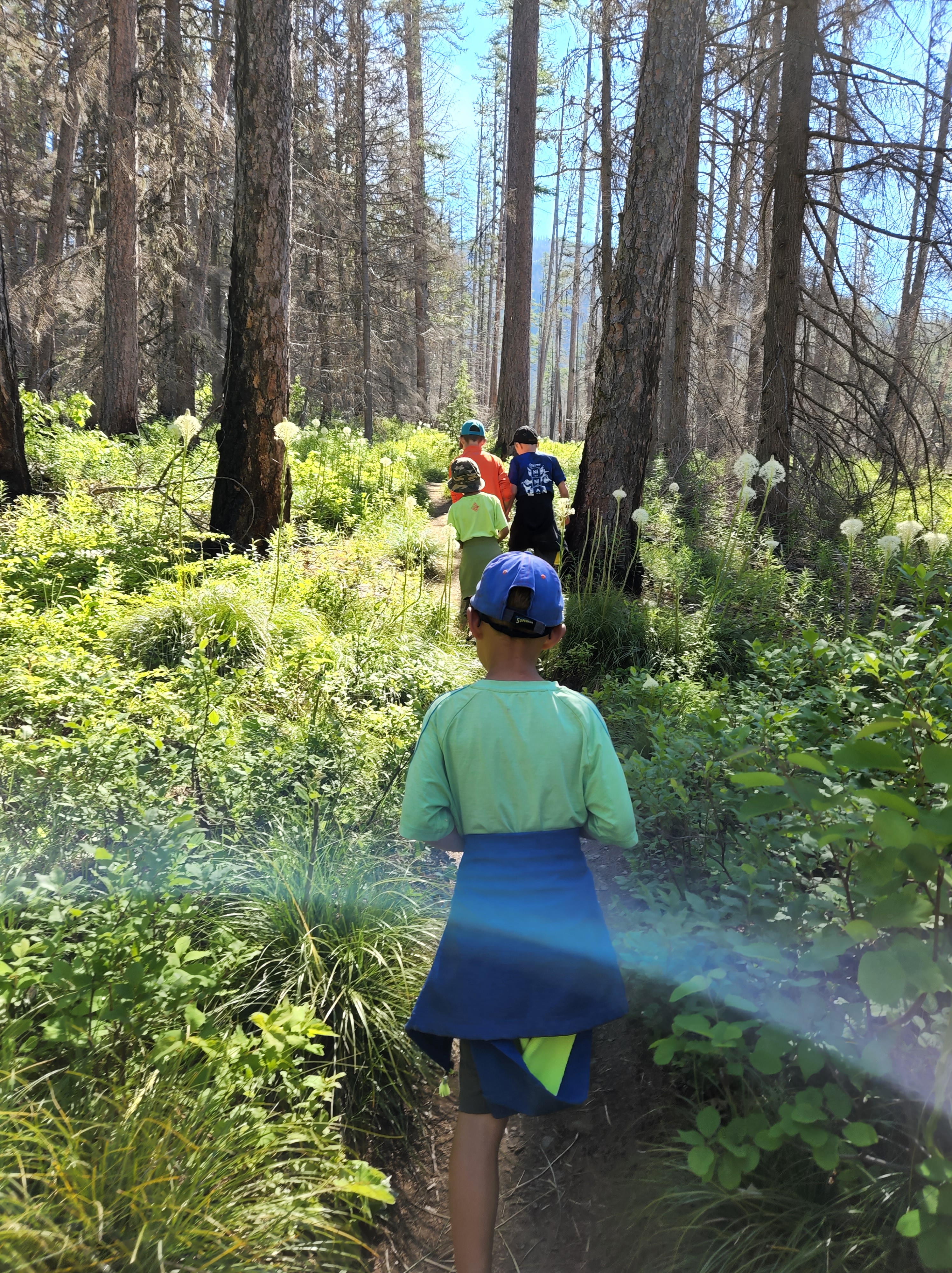 Sometimes despite the best planning and such the plans don’t work out. I had researched a ton of hikes and everything for Glacier but unfortunately the famed Going to the Sun Road was still closed because of snow and avalanche dangers and the hikes I had planned for our Monday in Glacier involved going on that road. So we had to figure out a different hike and so we chose Snyder Lake and we were not disappointed. It was very strep at times but gorgeous all along the way. There were very few people as well because access to even the open parts of Going to the Sun Road were still limited by having pre-time passes that we had snagged a few months before. The hike did take us through an old burn section from 2003 I think and we could see where the forest was re-growing and coming back. The lake at the top was beautiful and the kids didn’t hesitate to put their feet in. A little butterfly really seemed to like Edric’s hat and kept landing on it which was super fun. And there was a big area of snow on the hillside which everyone had fun making snowballs in (we even ambushed Clint when he wasn’t aware with a bunch of snow balls). On the way down we ended up encountering rather closely two grizzlies. They were up on the hill to our right and then intially went up and over the ridge, we were stopped a fair distance away with another couple hikers and the kids did great about staying close and taking all the precautions. However we realized with the other two hikers that the ridge they just went over lead right down to where the trail was also going. So we preceded cautiously and turns out they just wanted to drink and play in the stream the crossed the trail. The two bears didn’t really care about us about 20 yards away but we were all quite nervous crossing the stream so near to them. It was a great hike and even though it wasn’t the initial plan it still worked out great and we had a good time.