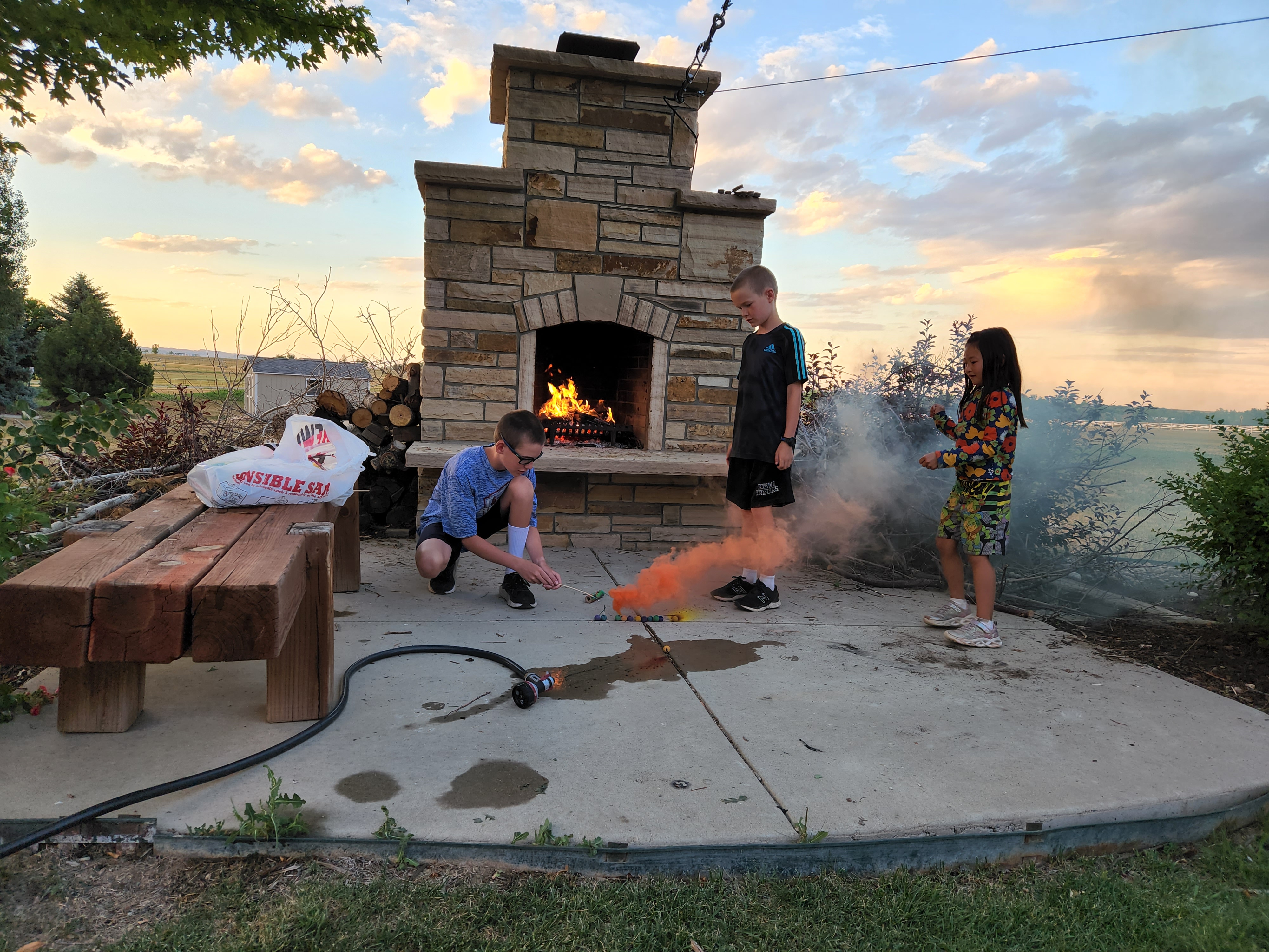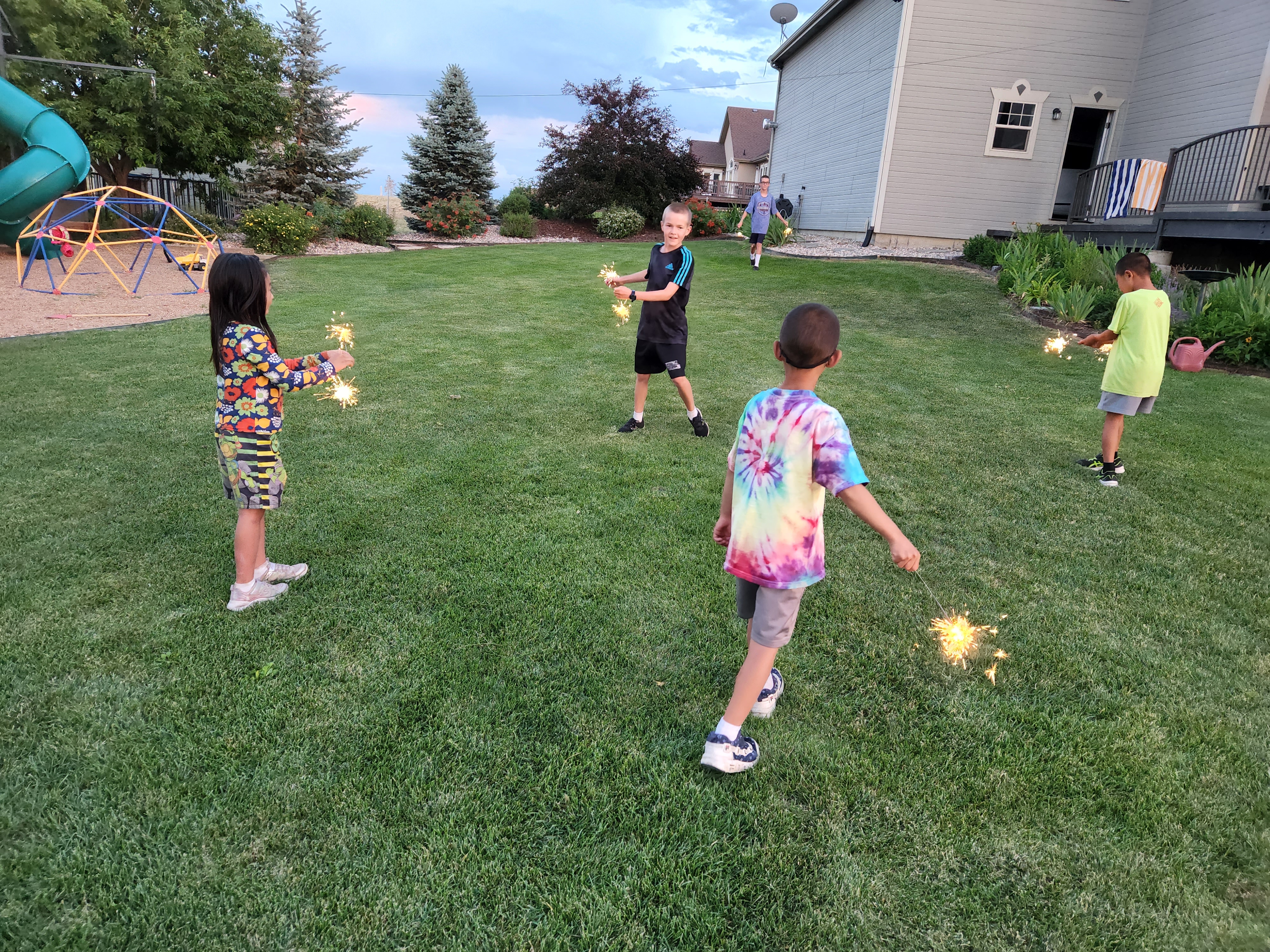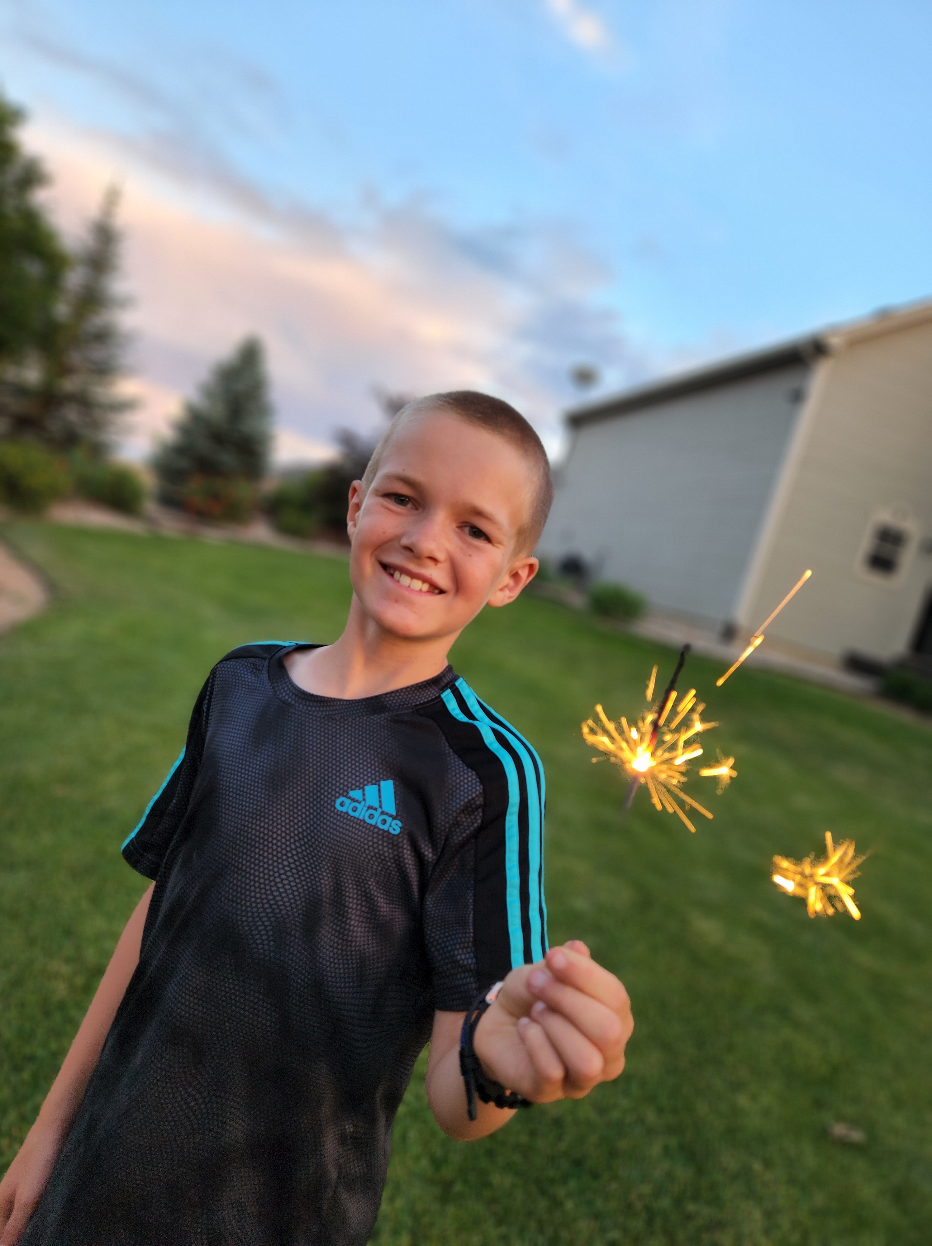 I’m slowly getting caught up on my summer blogs. We actually celebrated July 4th a couple of evenings early because I worked both the evenings of the 3rd and 4th. We had a cookout and smores and then did some smoke bombs and sparklers. Paxton wasn’t so sure of the sparklers at first but with the help and encouragement of Honey and Grandpa he soon got right into it. Leighton wanted to be the one to light the fireworks off this year and he did a great job and everyone enjoyed the show he put on. On the actual day of July 4th the kids did their usual neighborhood July 4th parade and then we had the neighborhood kickball tournament which our street won this year and was a lot of fun.