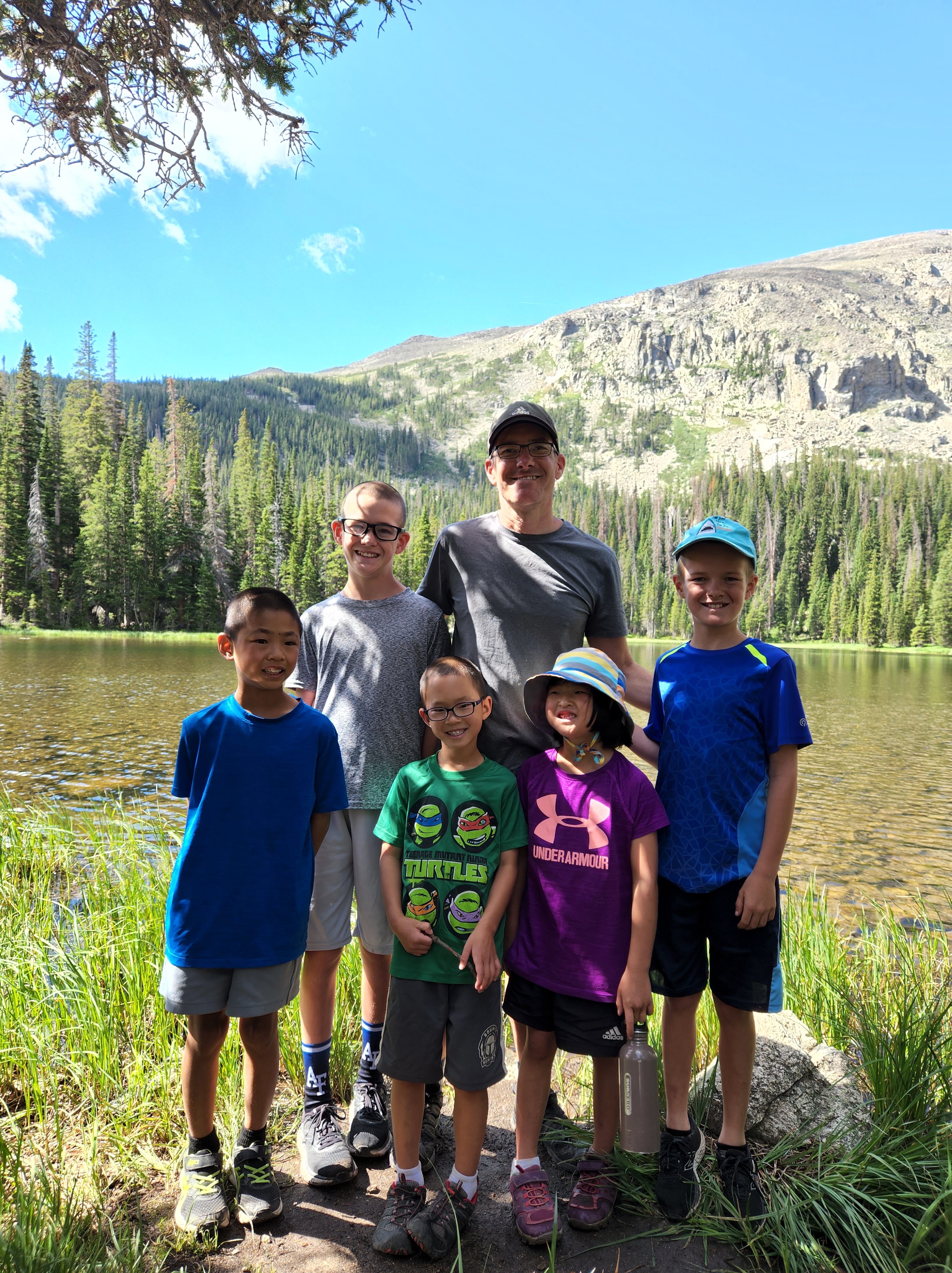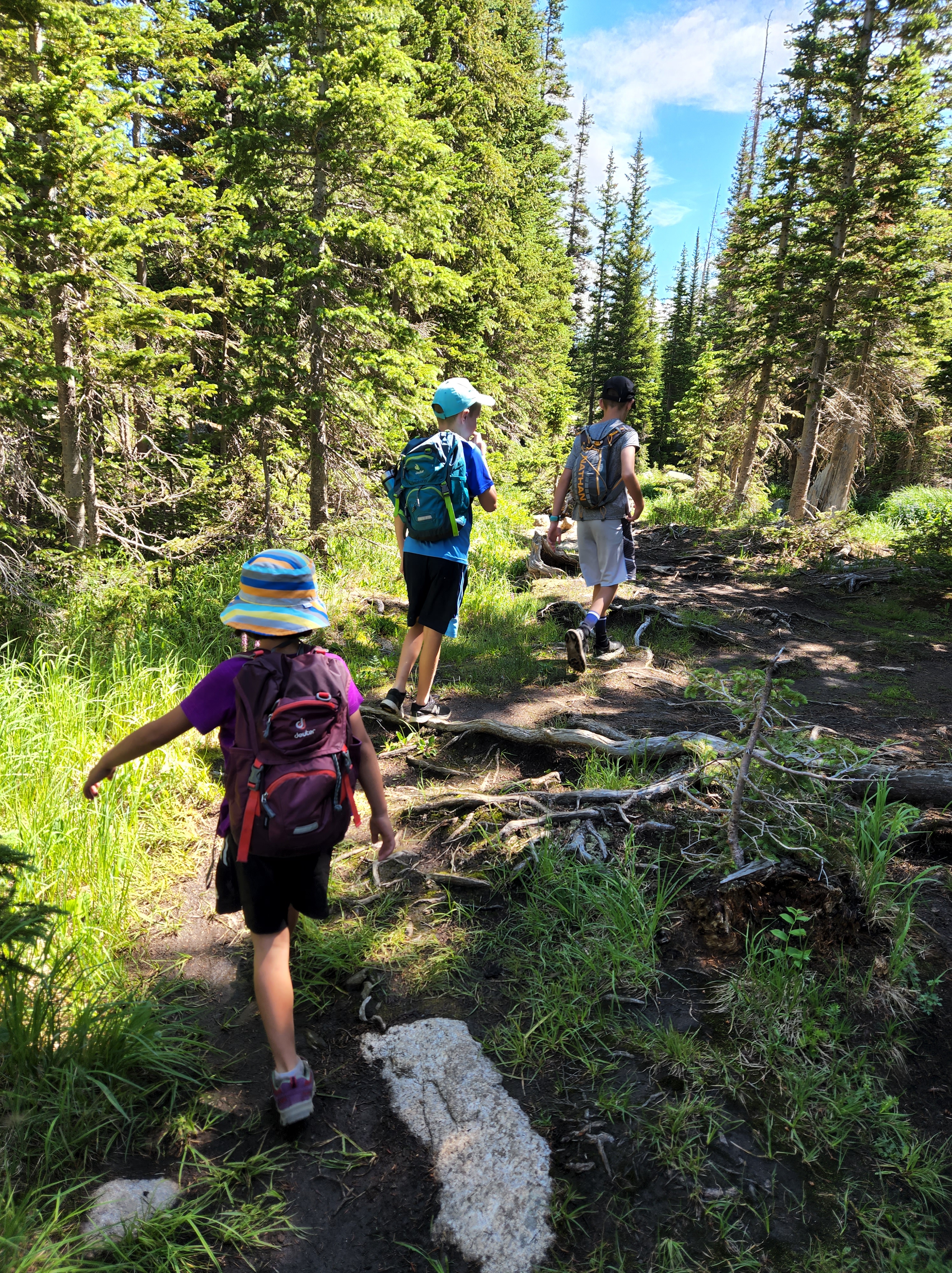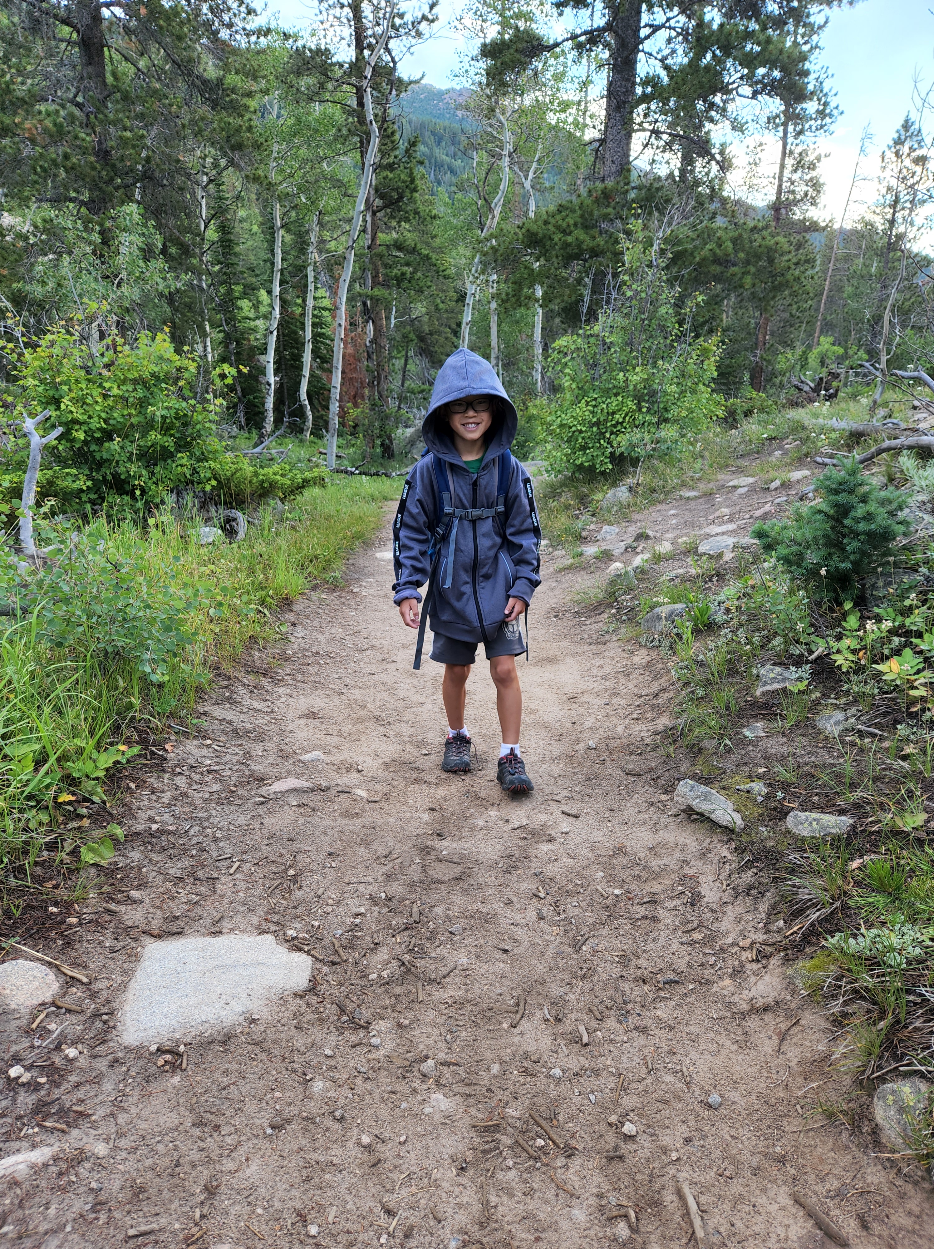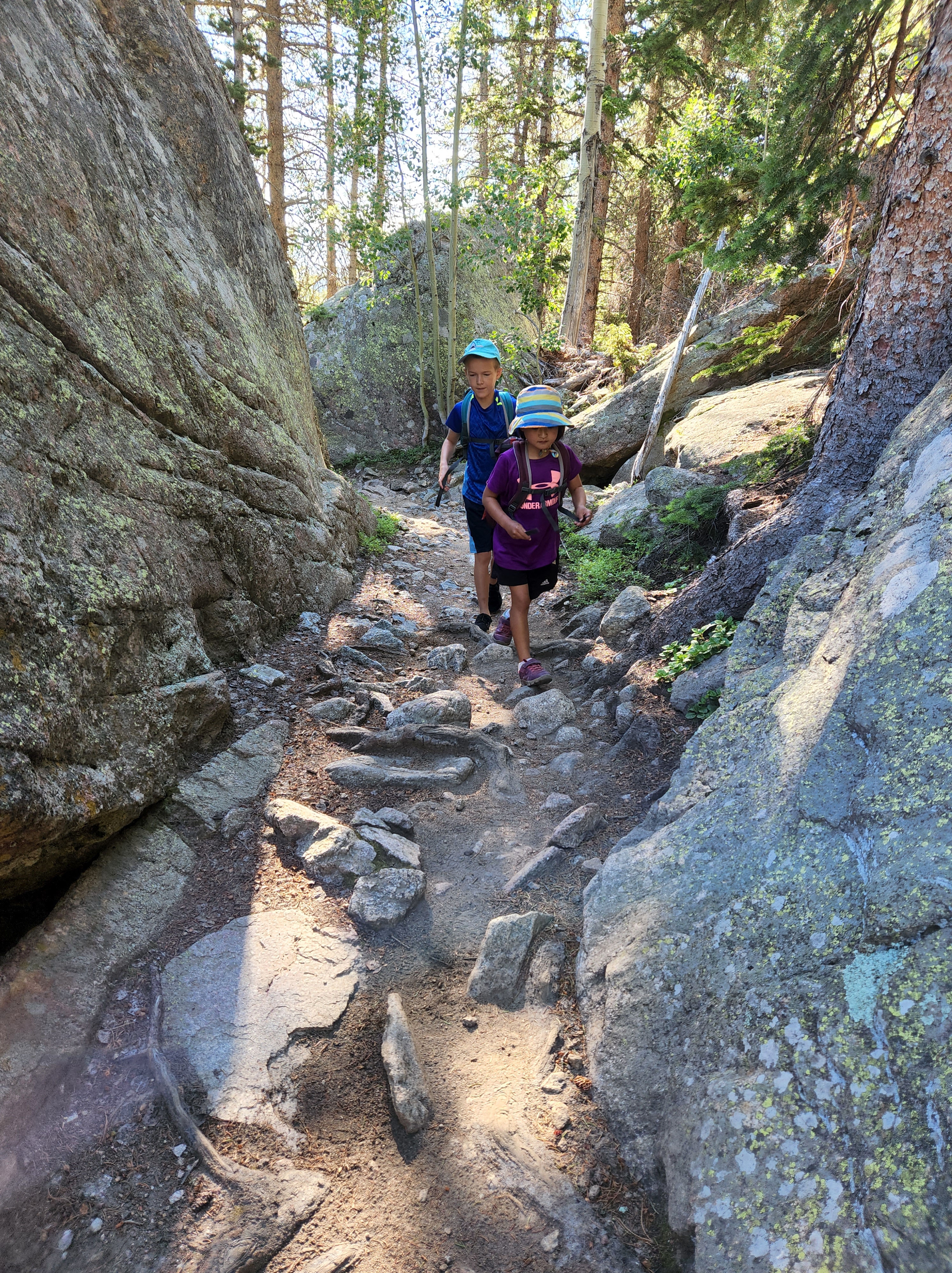We decided to go hiking a couple of weeks ago. The plan was originally to hike to Chasm Lake at the foot of Longs Peak, but despite leaving early and getting to the trail head by 6AM there were no parking spots. So we drove down the road a bit to Ouzel Lake Trailhead and did that hike. On our way to the trailhead there were two moose running along the side of the road which was a pretty amazing way to start the hike. The hike was amazing. Gorgeous waterfalls all along the way, breathtaking scenery and some pretty amazing kid hikers. They hiked 11 miles in total and had great attitudes. They all carried bags with their own waters (which we refilled if needed) to get ready for our backpacking trip in a couple of weeks. Because we started so early and then got to the stop by mid morning when we made it down it was just after lunch (which we had already eaten at the top), so we headed into Estes Park for ice cream because that is the best way to finish a hike.