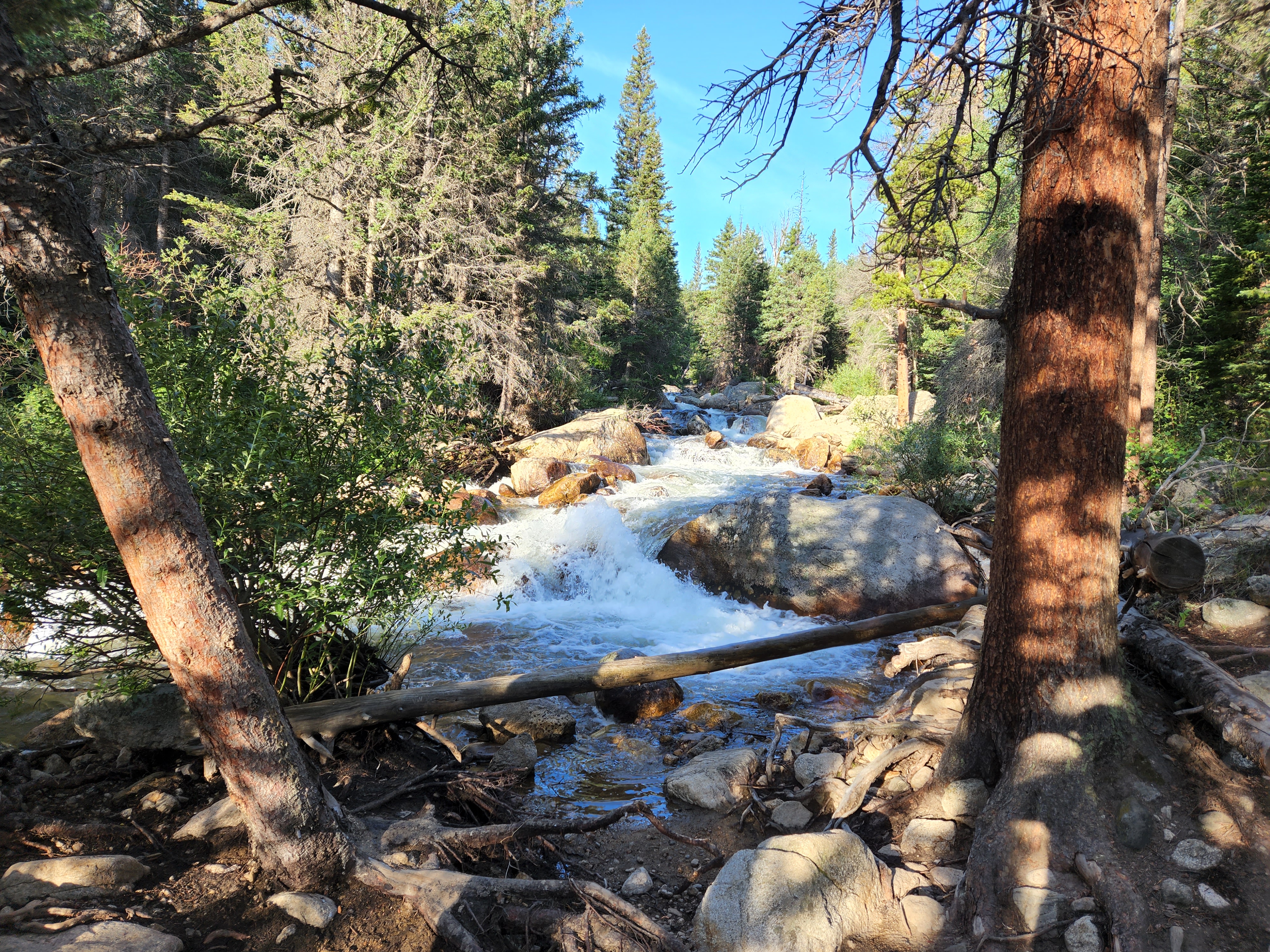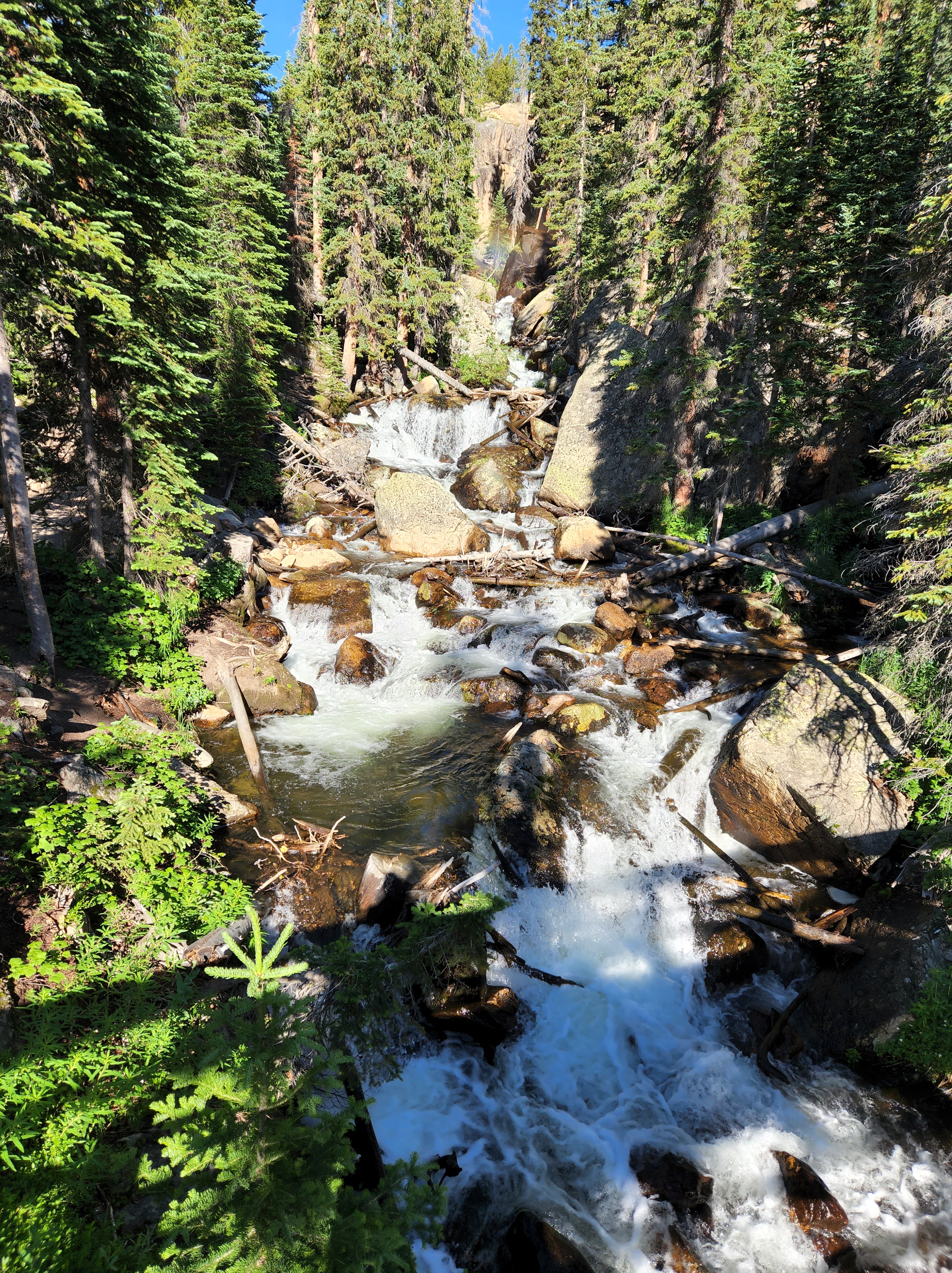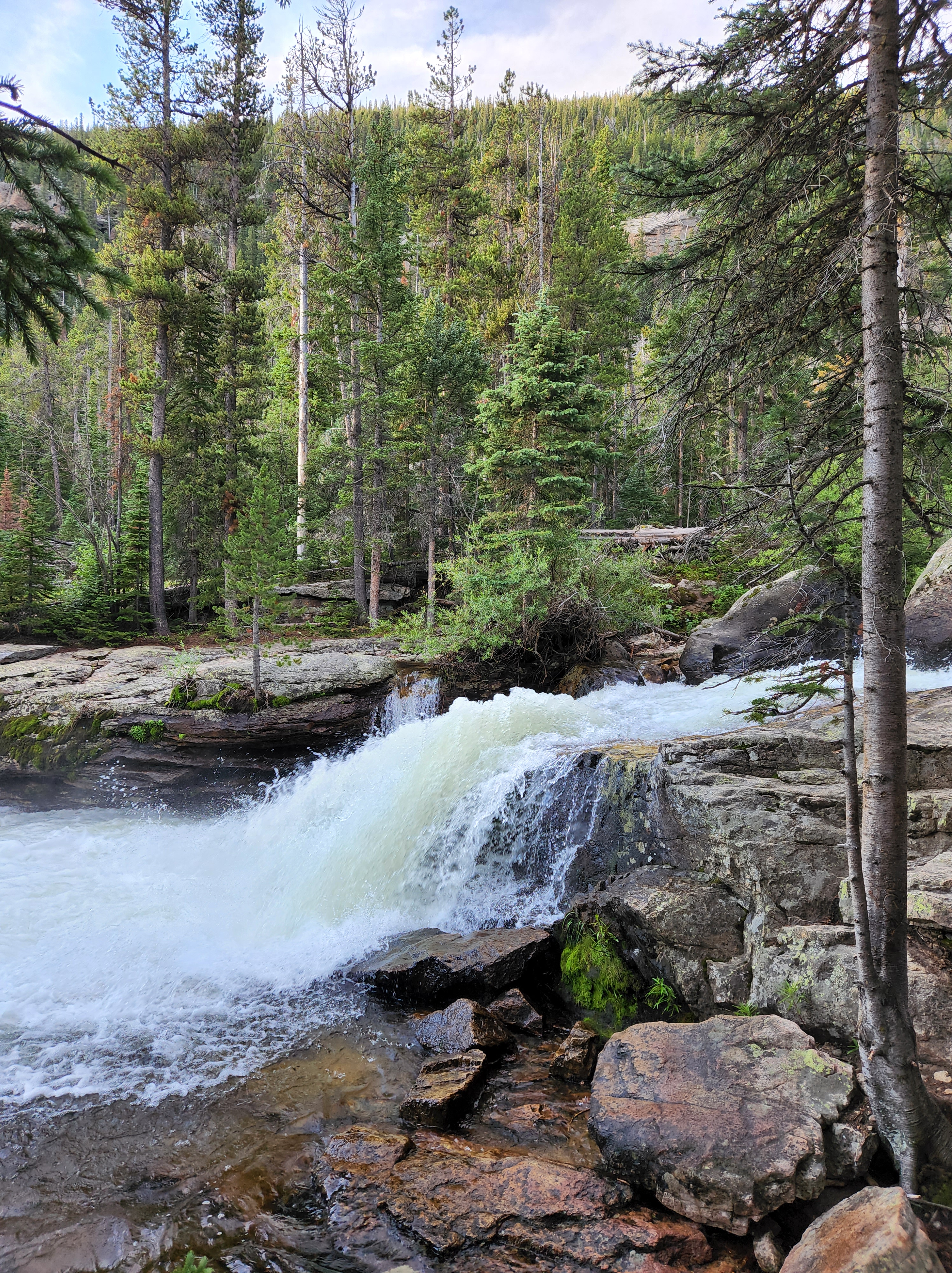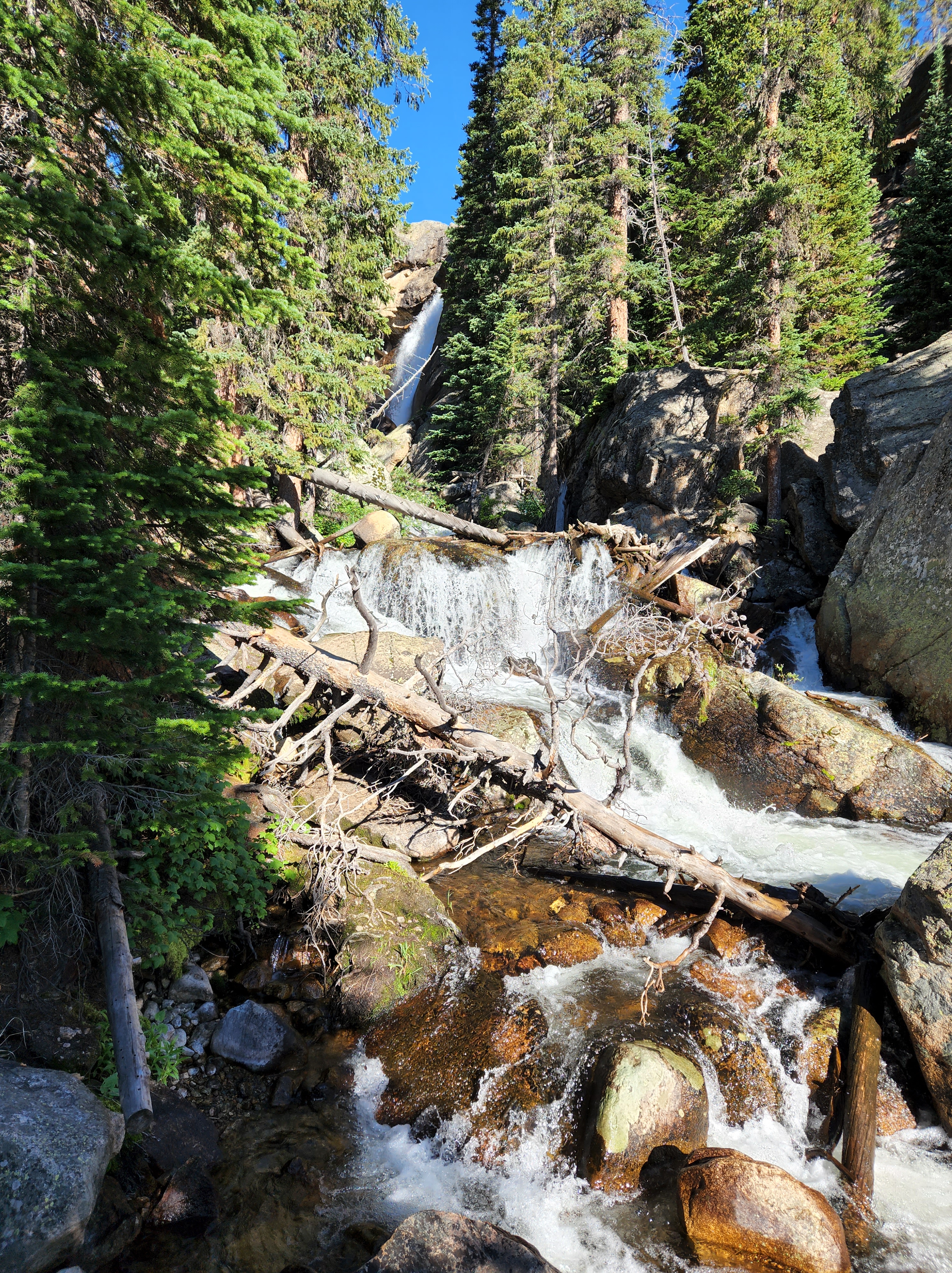 We decided to go hiking a couple of weeks ago. The plan was originally to hike to Chasm Lake at the foot of Longs Peak, but despite leaving early and getting to the trail head by 6AM there were no parking spots. So we drove down the road a bit to Ouzel Lake Trailhead and did that hike. On our way to the trailhead there were two moose running along the side of the road which was a pretty amazing way to start the hike. The hike was amazing. Gorgeous waterfalls all along the way, breathtaking scenery and some pretty amazing kid hikers. They hiked 11 miles in total and had great attitudes. They all carried bags with their own waters (which we refilled if needed) to get ready for our backpacking trip in a couple of weeks. Because we started so early and then got to the stop by mid morning when we made it down it was just after lunch (which we had already eaten at the top), so we headed into Estes Park for ice cream because that is the best way to finish a hike.