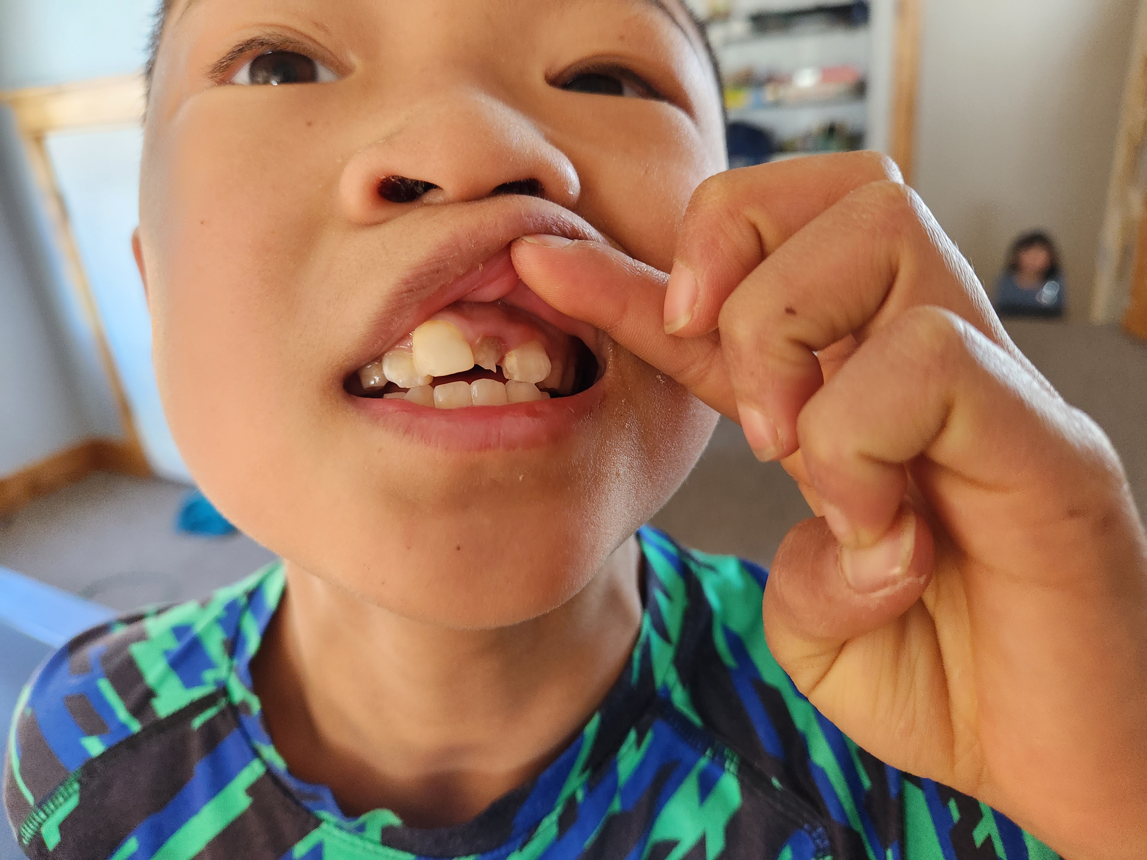 Teeth seem to be the thing lately that keeps us on our toes. A few months ago Paxton finally started to get his first permanent teeth. The problem was that they grew in behind his bottom front teeth. So he had two very nice rows of teeth. And so we started calling him “shark boy” because of his two rows of teeth which he thought was funny. In fact during our last routine visit with the dentist I was warning her as she checked each kid about his shark teeth and when she finally got to him she said “oh my, that’s probably the worst I’ve seen”. Which is not something you want to hear as a parent. Paxton is tiny and his mouth is even smaller and he did not get his teeth in the right order and there is definitely no room for any of his big teeth to come it. So after consulting with the orthodontist the decision was made to remove the four bottom teeth to make room for the two that have grown it. Unfortunately there won’t be room for the next 2 that need to come in and no one seems to know what the next step is….but we’ll see. So right before we went in to get his 4 teeth pulled Paxton managed to bump one of them and knocked one out on its own…..if only he’d been able to do that with all 4……But he did great getting the other 3 removed and enjoyed listening to an audio book during the procedure. He wasn’t so sure about his lip being numb for a bit afterwards but he did great. And now he is no longer “shark boy”. And literally within a few days of that, one of Edric’s teeth that they had to rebuild after his knocking out of permanent teeth randomly broke off. I suspect that maybe it became weak after getting his root canals for those teeth a few months ago. Nevertheless he had to make a quick trip back to the dentist to get his tooth rebuilt. And at this point I think i may just start direct depositing my paycheck at the dentist…or maybe split it between the dentist and orthodontist because that’s our next stop over the next few years with all of them as well……Oh joy….at least none of them have cavities thanks to all the brushing I make them do…..