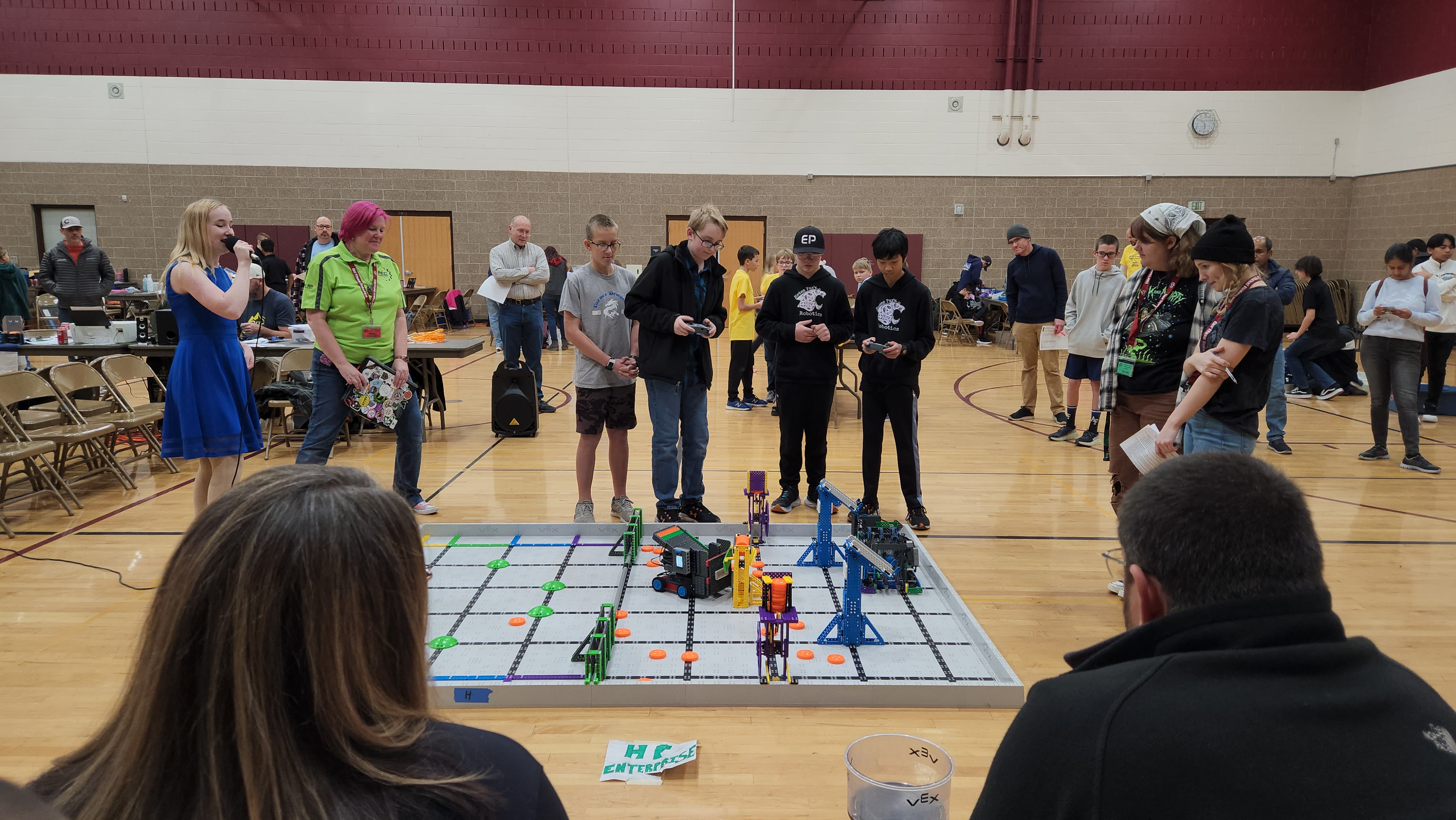 This fall Leighton was asked to join a robotics team with a couple guys from his youth group and he has had so much fun. I have no idea how any of it works but I’m glad he’s enjoying it. They had their first competition a couple of weekends ago at my old high school which I had not been in since I graduated. The robot has to empty out and caputure a bunch of disks from different towers, and each tower has a different way that it can release the disks and then they have to shoot the disks across the floor and score points. Or something like that. For the competitions they compete individually but then also are paired up a number of times with other teams and score points together. They usually drive it with a remote but they also have to work at coding a program to make it drive. They don’t have all their code done for that part yet, so they didn’t compete in that section of it. However they ended up taking 3rd overall which was very exciting. I think they had a ton of fun as well.