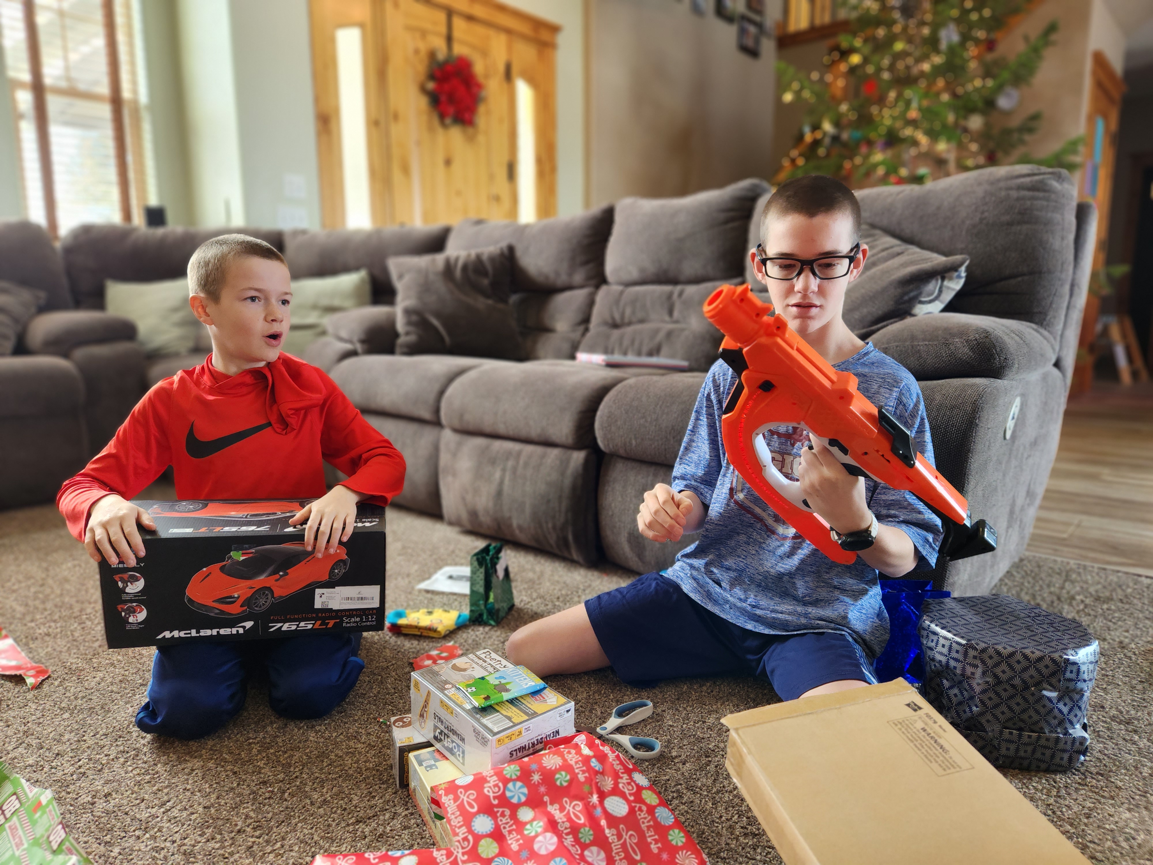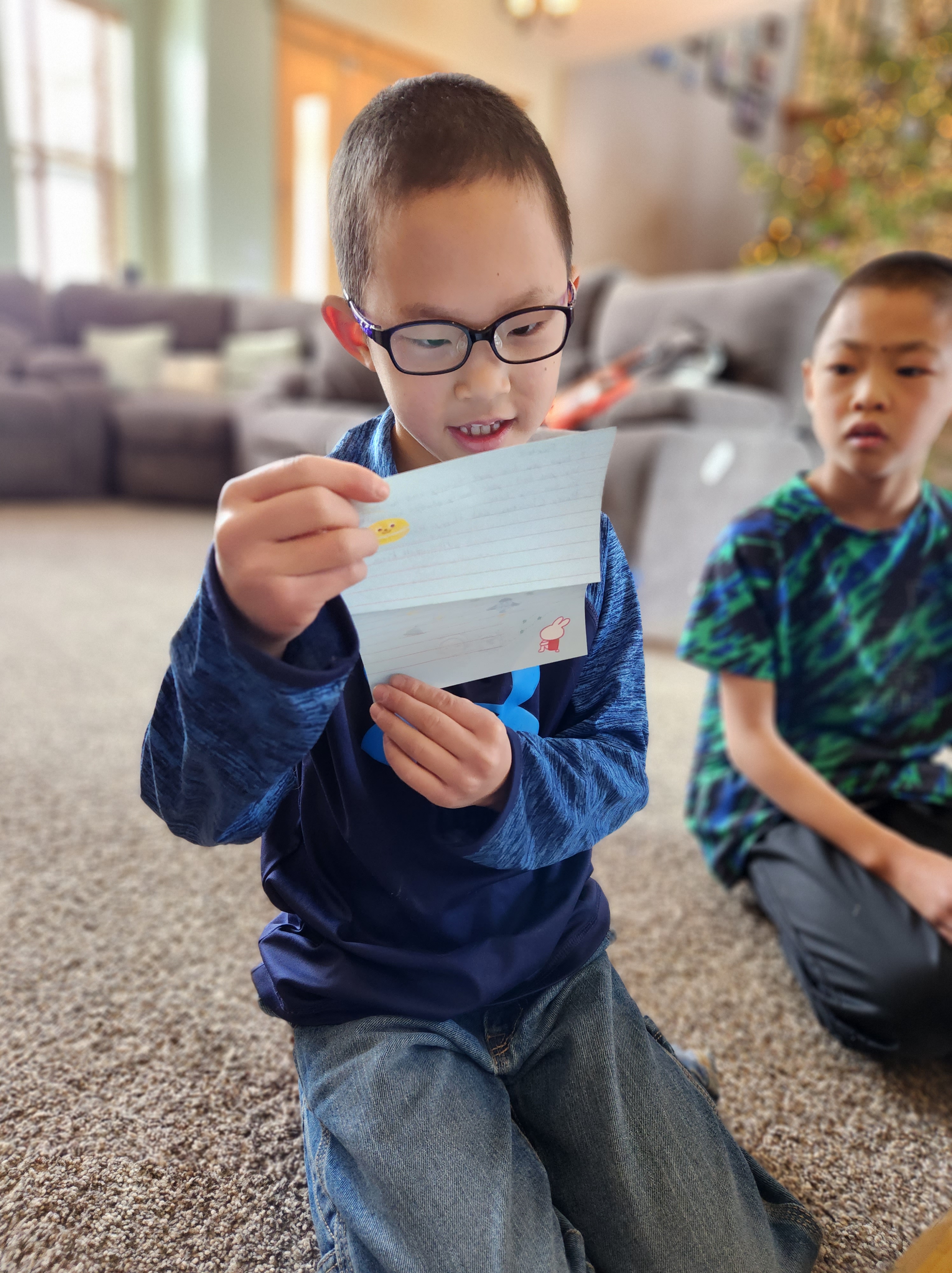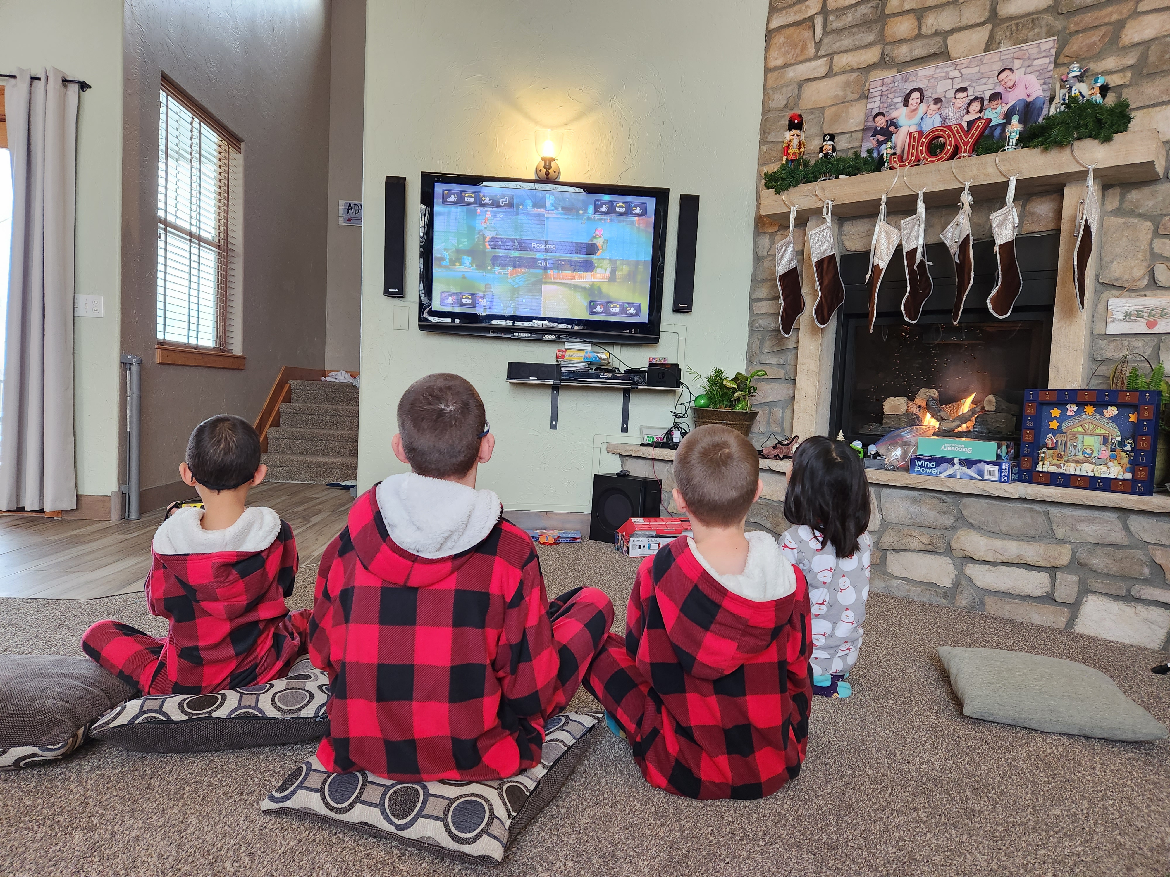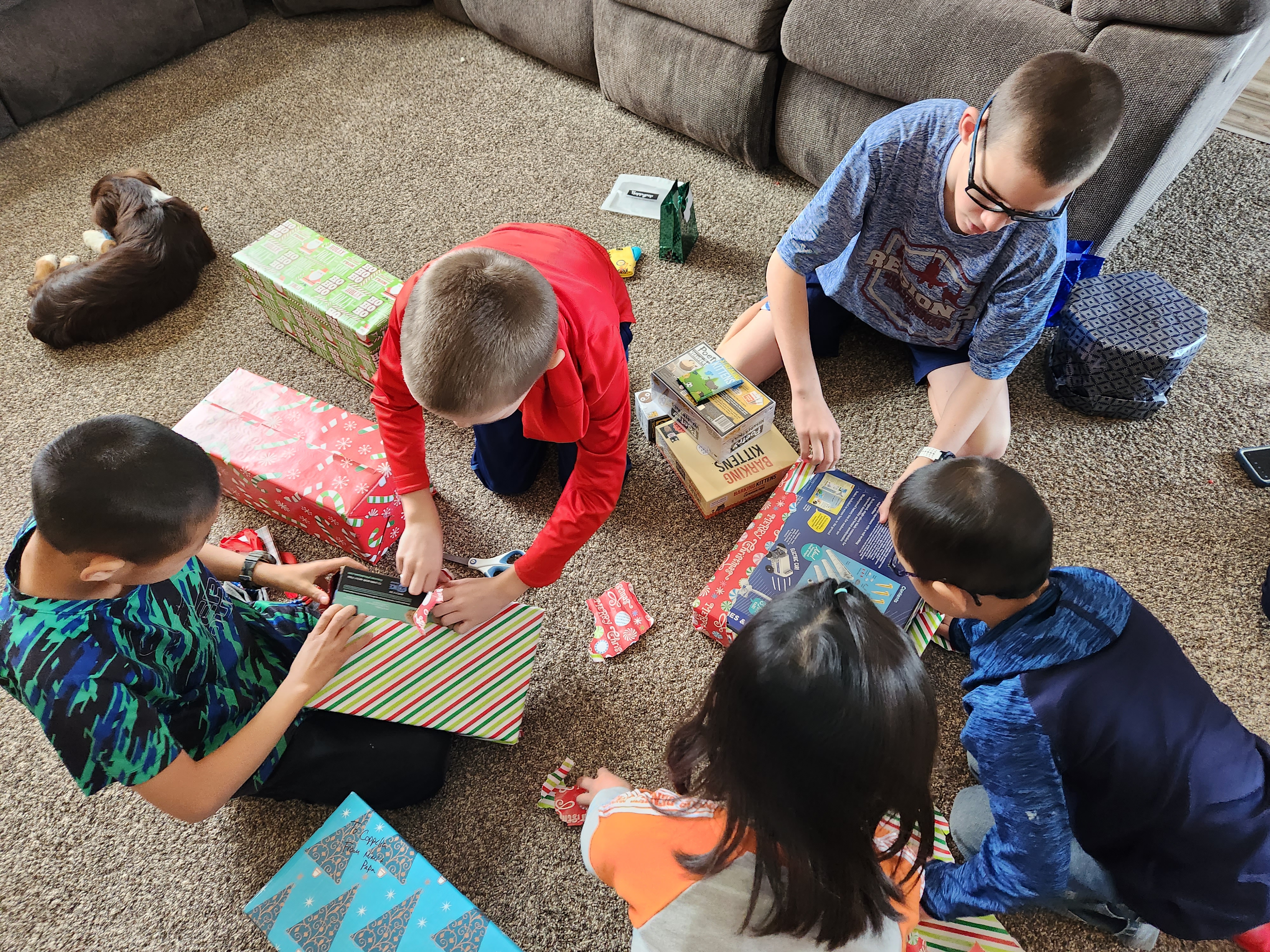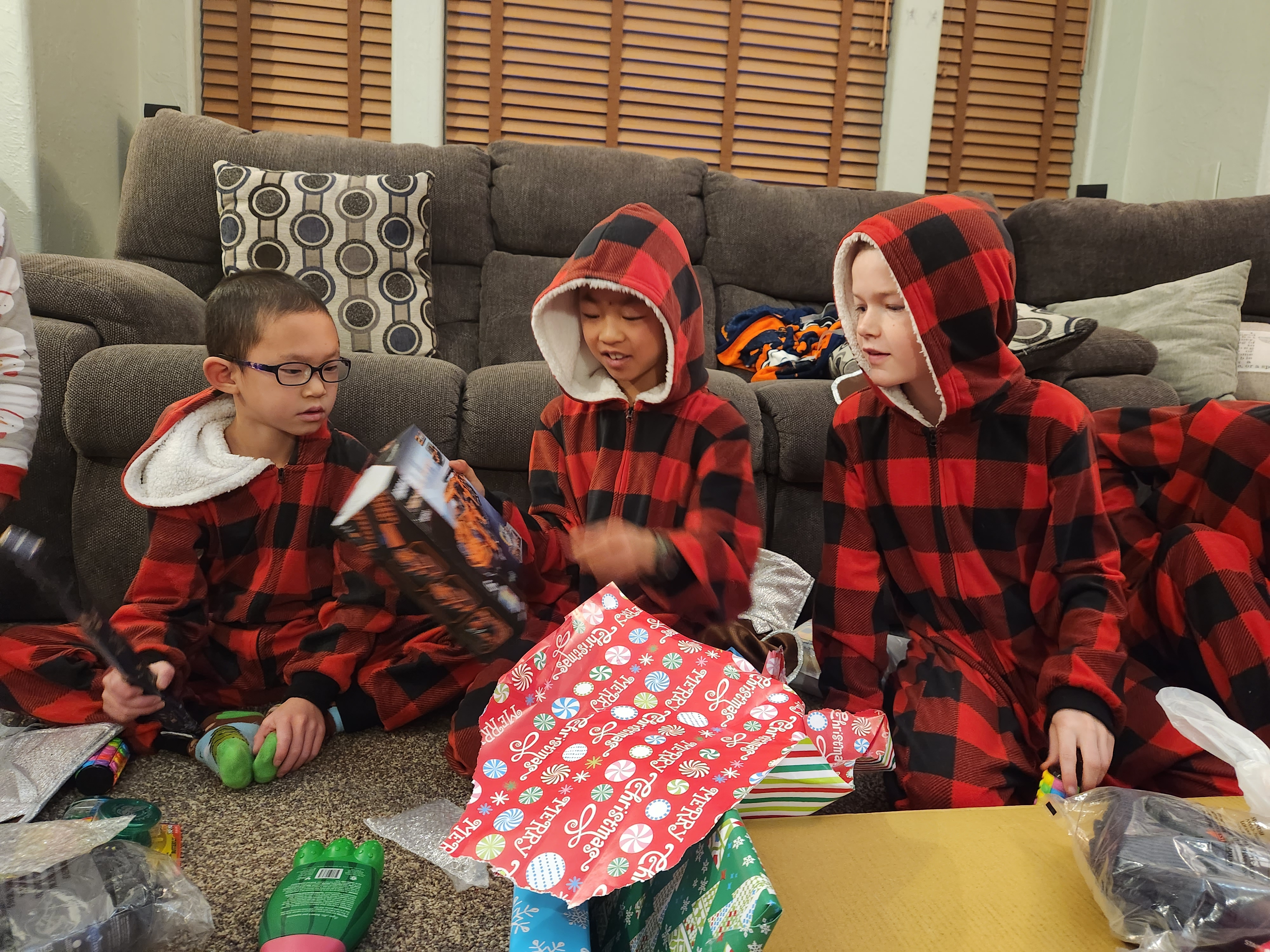 We had a great Christmas. I had to work a number of shifts but we still managed to celebrate and rejoice in the season and the meaning of the holiday. Caedmon read Luke 2:1-20 at our church Christmas Eve service and no one lit their hair on fire during the candle light part (which has happened to us in the past….). On Christmas Eve the kids enjoyed opening gifts from Clint’s parents and aunt and Paxton opened his gifts from his foster family in Korea. The kids let me sleep in after my late shift all the way till 6AM on Christmas before they were up. They had fun with their stockings and then their gifts. Paxton has asked for drums since he could talk and has turned everything else into a drum, so thanks to marketplace we were able to score a really nice drum set for him that he now plays ALL THE TIME. But he was so excited and loves it and just started taking drum lessons with a friend from church and smiles all the time. Ember got some gifts and then got to go on a run with me with my new hands free running leash, she enjoyed being in the snow and running with me. My parents and brother and sister in law and niece came over mid morning and we had fun with gifts, my niece was most excited about the dress up clothes we got her, and Paxton was very excited about the suit my parents got him because that has been something he has been asking for as well. Leighton got a new backpack and was outside shooting his nerf guns most of the rest of the morning. Caedmon and I put together the ballet bar that my parents got him to use on the ballet floor that we got him. Coppelia threw on a dress up dress to play with Johanna and also played with her horses and unicorns. Edric was busy putting together the car that he got. We had a yummy lunch and enjoyed time together. I had to head into work, but despite that it was a great day. We have had so many blessings this past year and all grown and learned so much and have so much to be thankful for. Our house may be a little louder now and one might have to dodge nerf balls but it is such a blessing and I am thankful for each and every one of them and to our Savior who makes it all possible.