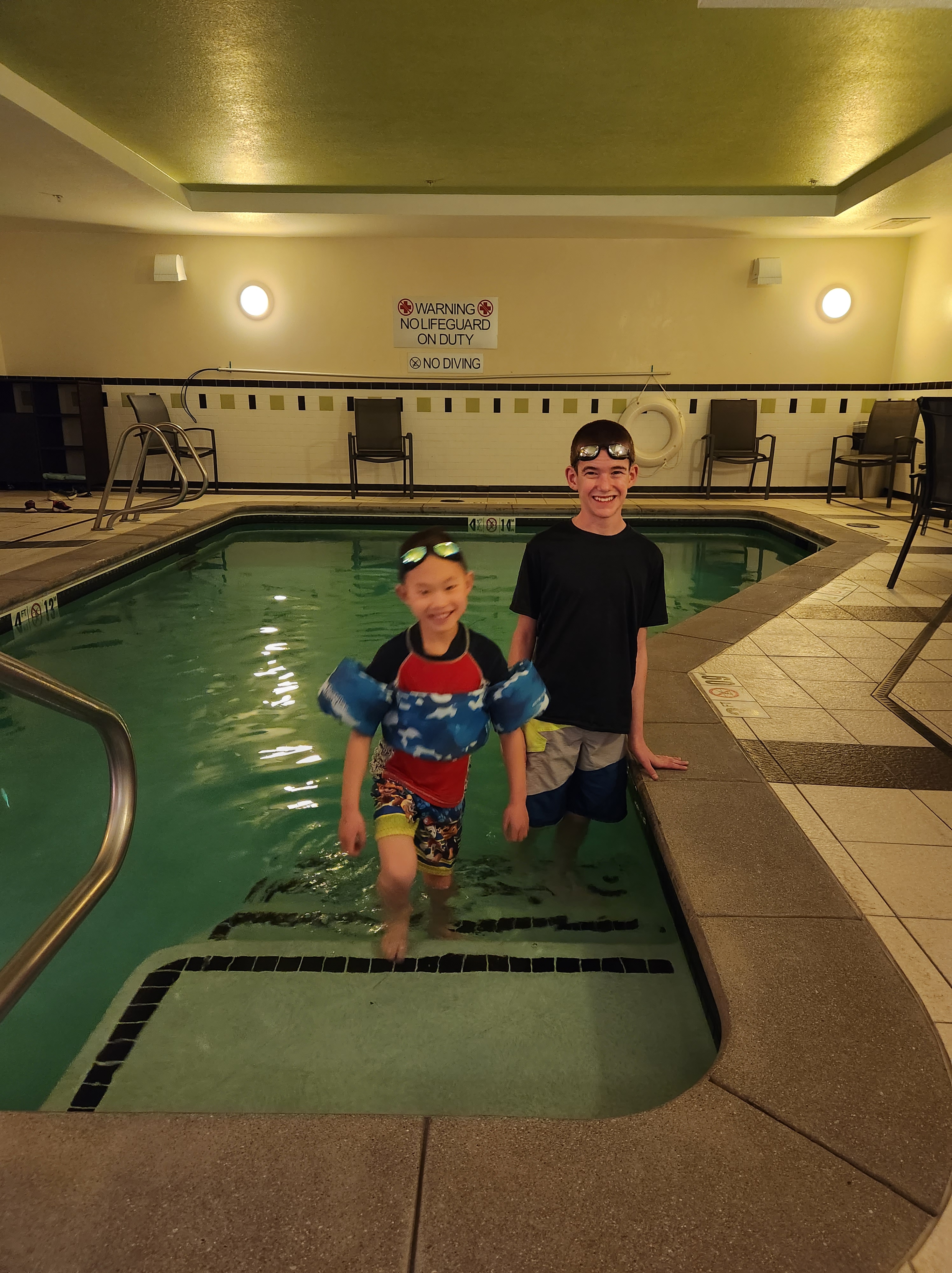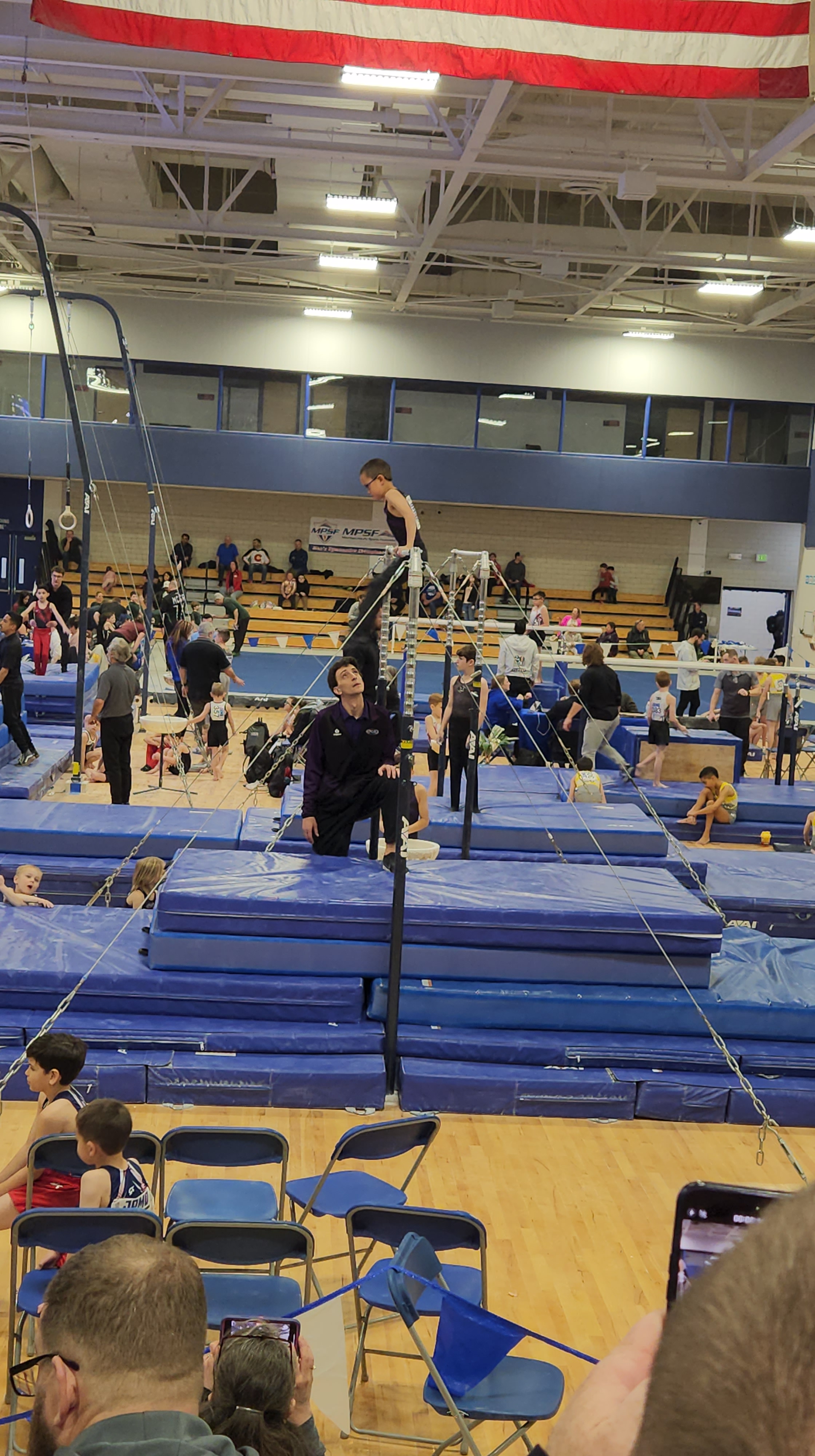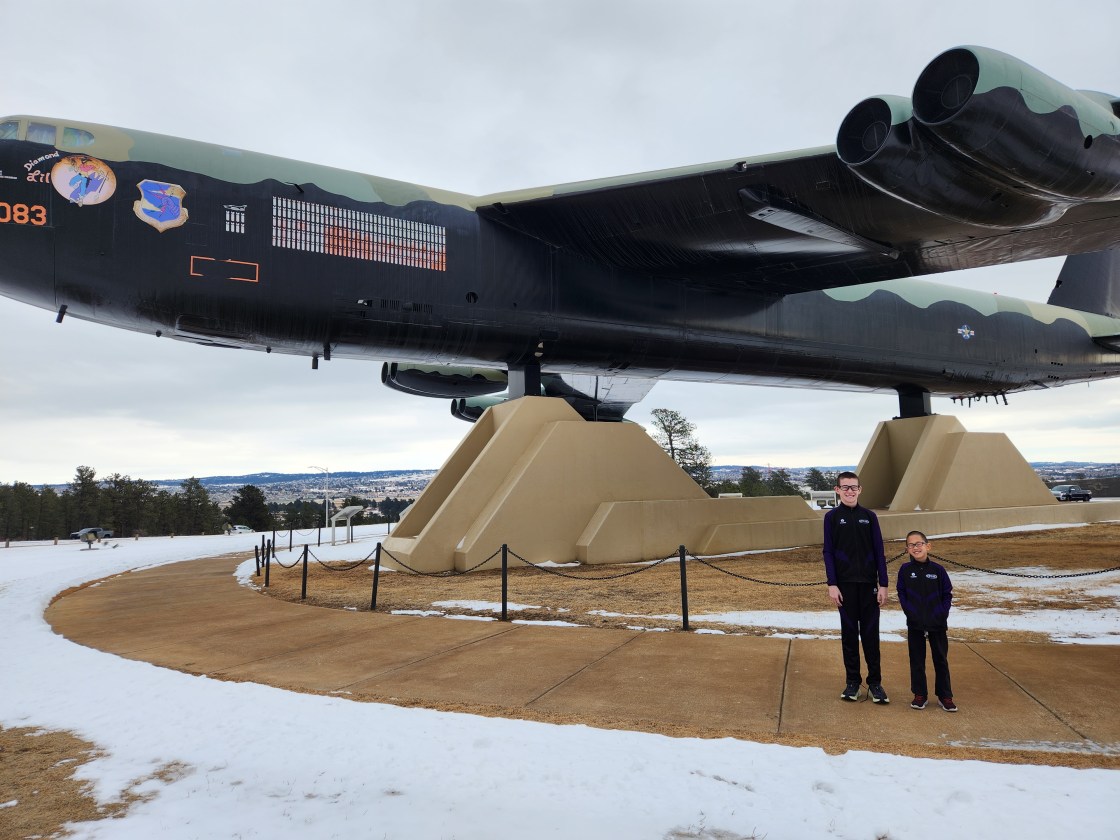 Last weekend Leighton and Paxton participated in the Rocky Mountain Junior Open Gymnastics Meet at the US Air Force Academy. Leighton’s session was on Friday afternoon and so the boys and I headed down. It was very cold all weekend but we had to get photos in front of the plane and helicopter of course. Leighton did really well, he didn’t place real high but made some skills he’s been working hard on and gained some confidence in that. His form was a bit sloppy so he has been working on that a lot since the meet to be ready for his next meet. Friday evening we grabbed some food and then hit the hotel pool which we had to ourselves. It wasn’t very big but we didn’t care. Paxton’s meet was early Saturday morning, we drove through the check point gates at the Academy at 6:35AM and it was very very cold. There was nearly a 1/2 mile walk from where we parked into the gym so we got really good at walking fast. Paxton did really well, he placed in 4 of the 6 events and finished 10th in the All Around. He would’ve finished higher in the All Around if he had remembered and done the right floor routine and not some version that he kind of made up. Floor was their last event they competed in and it’s hard to remember all the steps when you’ve been up early and you are 7. He was still pleased. After the meet we headed to Garden of the Gods and had fun in the visitor’s center. we then me up with my two friends Leah and Annie and braved the cold weather and enjoyed a good hour long walk around Garden of the Gods. When we were good and frozen we headed to a local coffee shop for some hot chocolate to warm up. After a quick bite for dinner the boys and I headed back to the Air Force Academy to watch the Rocky Mountain Open with 6 college teams, Air Force, Nebraska, Oklahoma, Arizona, Michigan and Stanford. It was an amazing meet and the boys loved seeing the college guys do some amazing gymnastics, and we even got to witness in person Asher Hong with Stanford complete a super difficult vault in competition for the first time ever, it is one of the most difficult vaults being done in the world today and it was amazing to watch. We headed back home very late that evening and Paxton was asleep in the car before we even got on the high way. It was a great weekend and fun to just have some time with Leighton and Paxton.