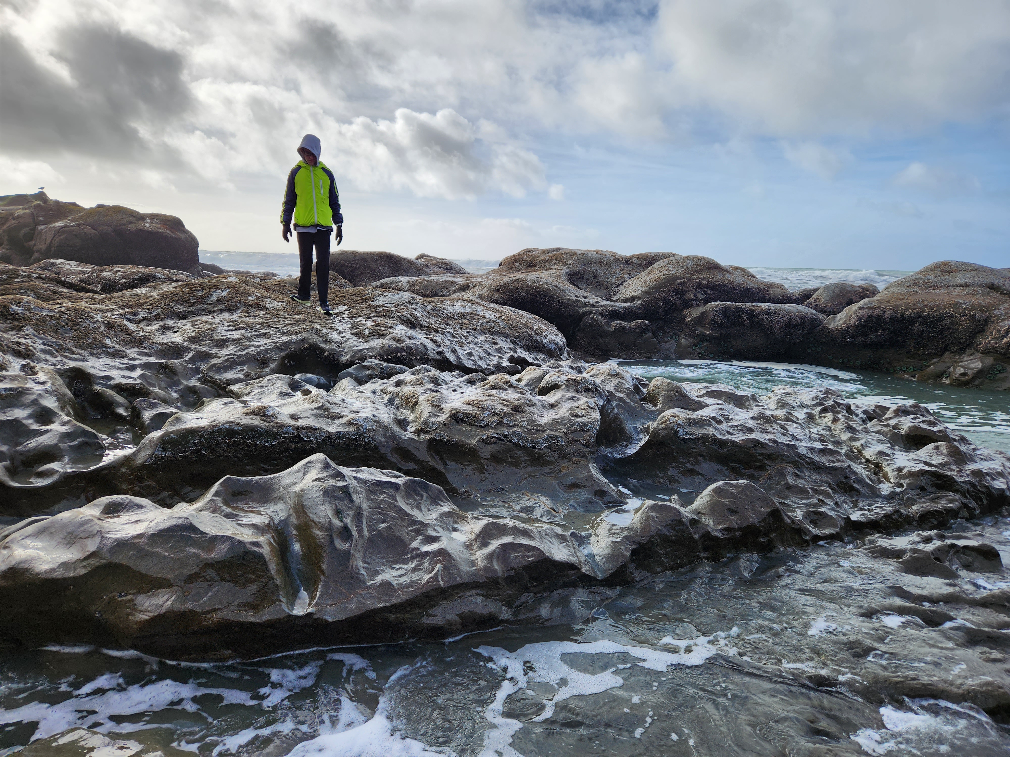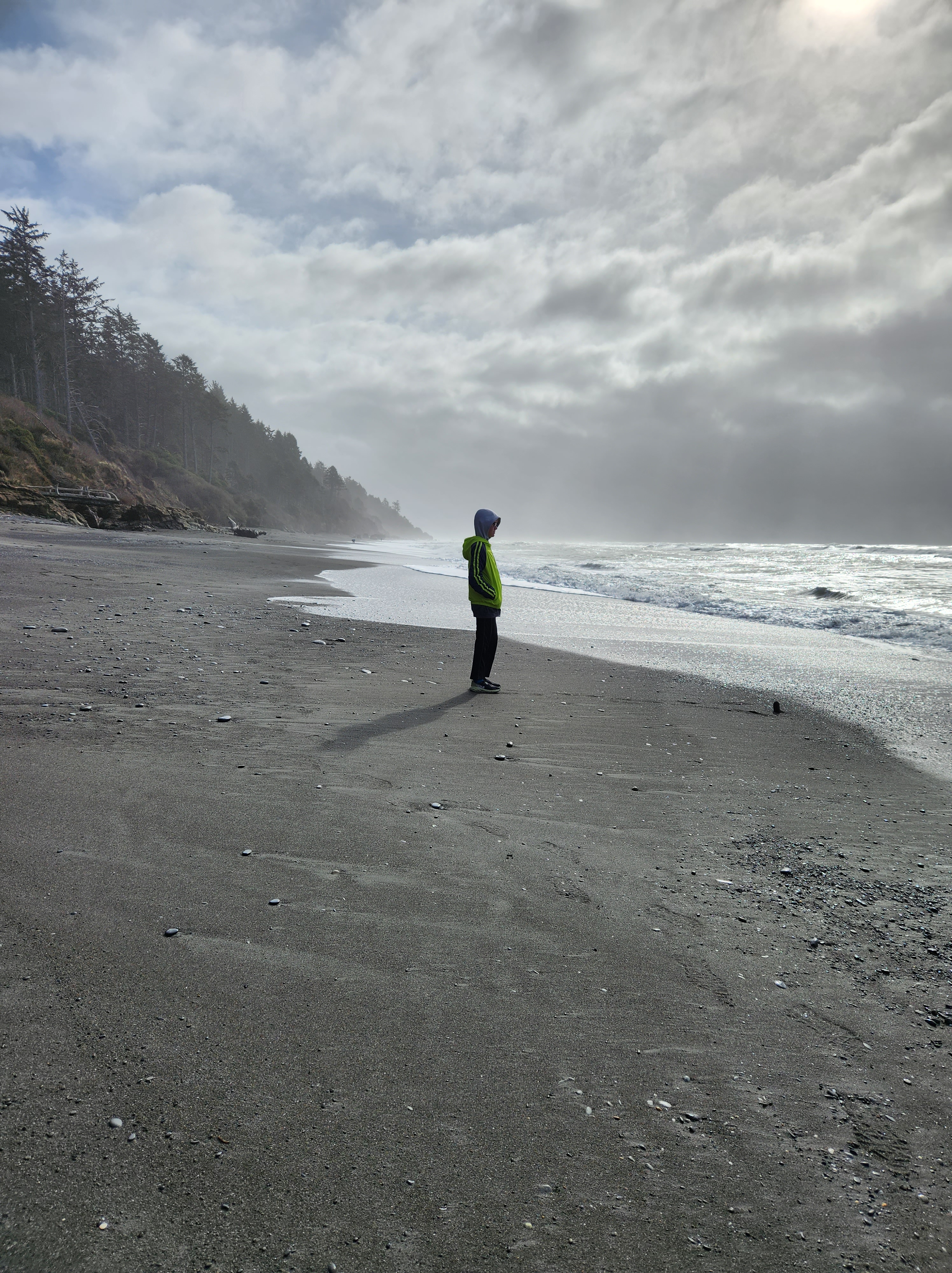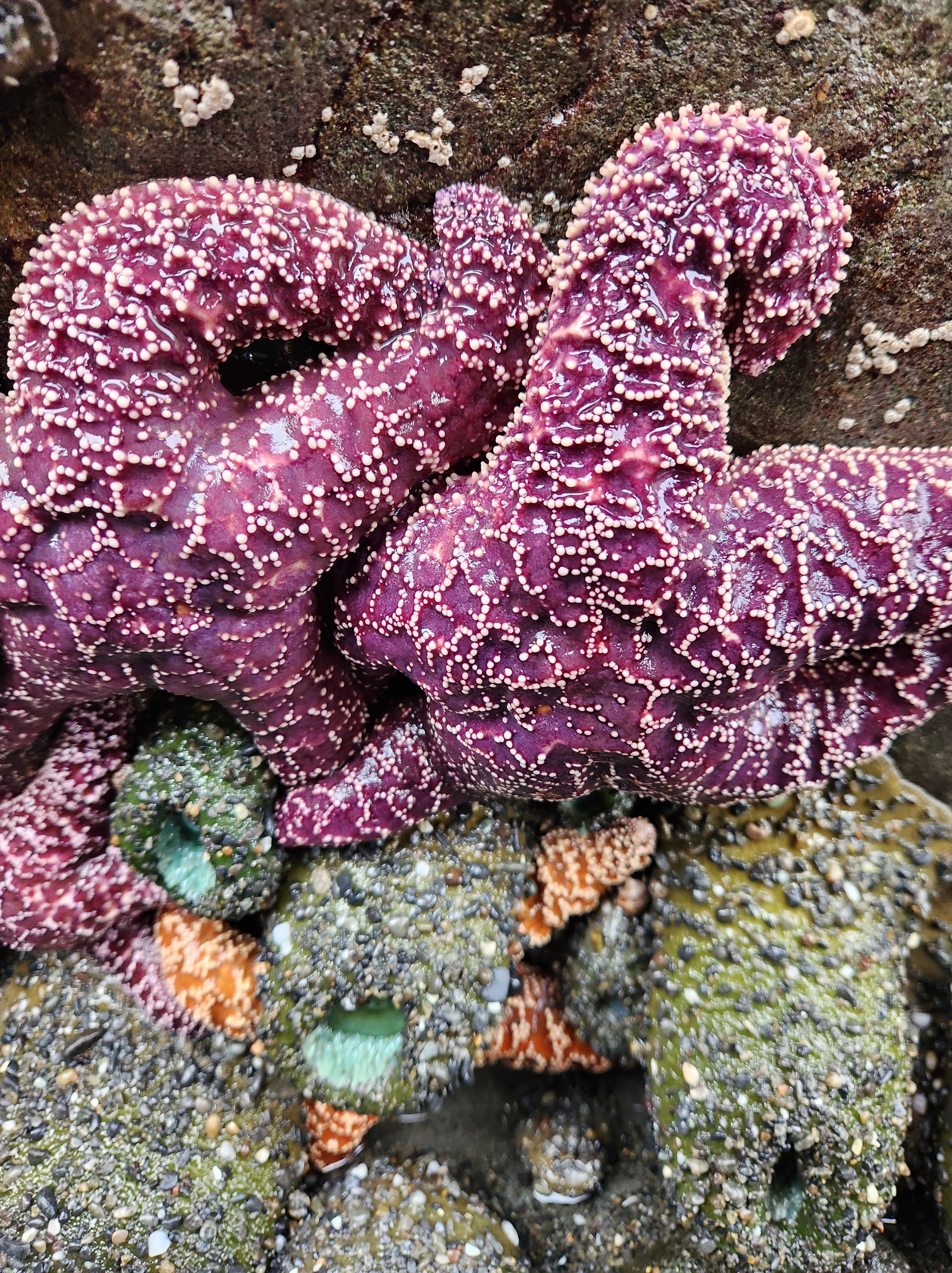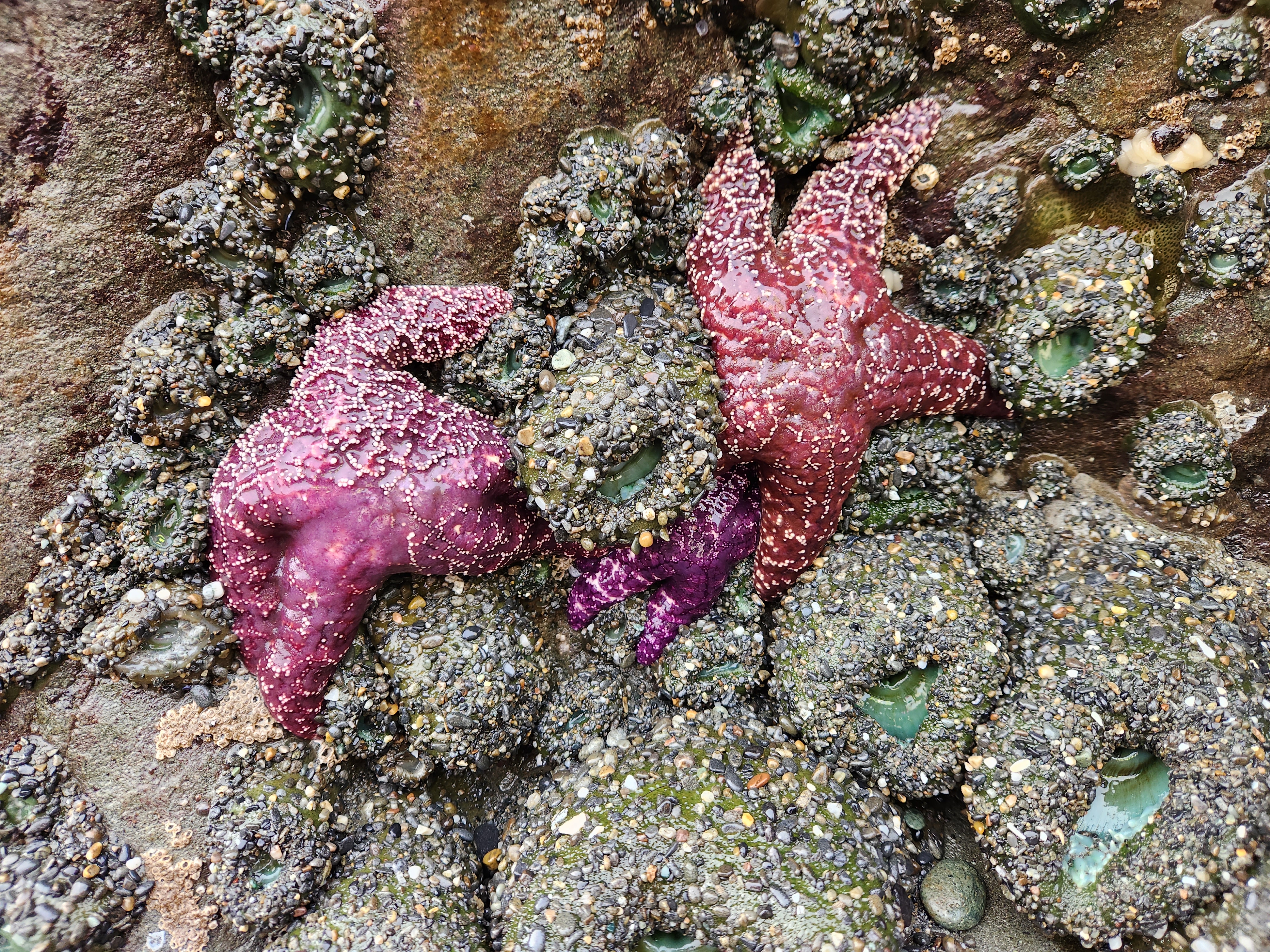 Saturday of our trip to Tacoma Leighton and I made the 2 hour drive out to the Olympic Coast and Olympic National Park. We started at Quinault Rainforest which was of course rainy, but also beautiful. It was also cold but we still got a couple miles of hiking in before we headed to Kalaloch Beach 4. We hiked down to the beach and then spent the next 4 hours exploring and hiking along the beach. The tide was on it’s way out and Leighton wanted to see a starfish in the tidepools. When we first got there the tide was still too high and the tide pool areas too slippery and still too much water to explore much so we had fun going up and down the beach and getting chased by the waves. We found a number of whole muscle shells and saw a ton still alive all clinging to the rocks with both pink and turquoise sea anemones. We practically had the beach to ourselves and while it was chilly the sun did peak through the clouds although it didn’t really warm anything up. Our feet got soaked running from the waves but we had so much fun. Slowly the tide went out and we went back to exploring the tide pools. Just about the time that I think Leighton was ready to give up on seeing any starfish we found a bunch. We found both deep purple and orange ones. And really there is just something about starfish that makes everyone happy. After hiking nearly 5 miles up and down the coast we headed up north just a tad to Ruby Beach. We didn’t stay long there but it was good to see a different beach and how just a few miles up the coast the beaches can change. Ruby Beach had a ton of drift wood and sea stacks. We made the drive back to Tacoma wet, sandy, and cold, but refreshed and full from a day exploring the amazing creation and beauty.