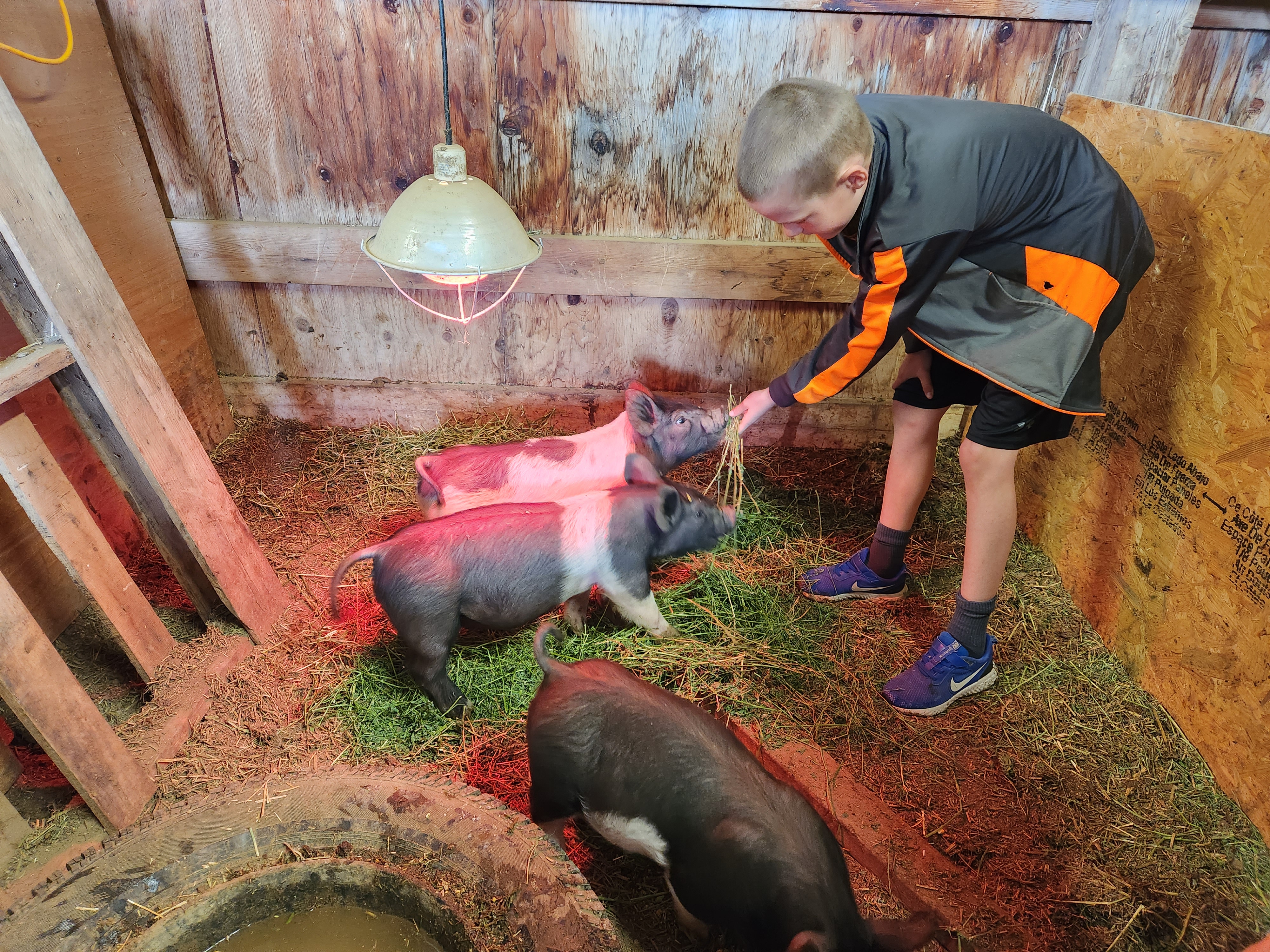 So I managed to not blog at all during April…..oops, but there are only so many hours in a day so I’m slowly working on getting caught up. In mid April both Leighton and Edric had artwork at the District Art Show so we all went to see their work, Edric’s cat and Leighton’s landscape. We enjoyed walking around the art show. And then on our way home we stopped by our friend’s house who had just recently had new lambs born. We played with their baby ducks and chickens and then tracked down to the barn to see the piglets and the baby lambs. They all enjoyed the animals but I’m kind of surprised that Coppelia didn’t manage to sneak one of the baby lambs home….