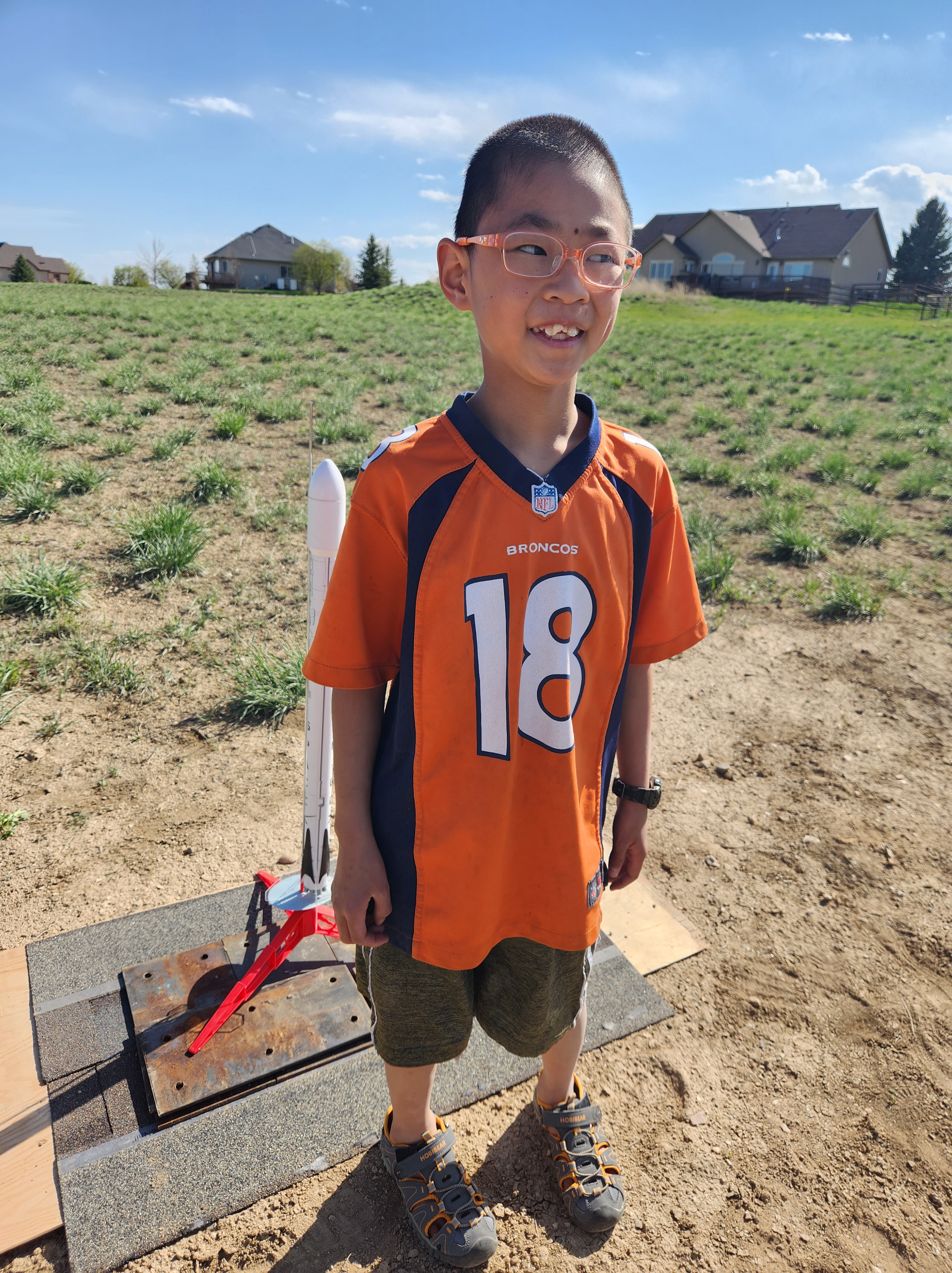 Edric turned 10 on April 30th and wanted to celebrate with rocket launches. So we did just that. He had a couple of rockets that he had built and Leighton also had a rocket that he built and so the plan was to launch them off. Luckily we had a beautiful day. He also planned out his whole meal including a very rich chocolate cake and hamburgers, fries and coleslaw. We had two dear families over to watch the launches and as it turned out to chase the rockets down. I managed to not get any photos of the rockets launching but just videos but they were all great. And we launched a couple of them off multiple times. Everyone enjoyed the rockets and then dinner that Edric planned. He has grown a lot in his confidence this past year and is a super sweet kid. Happy birthday Edric!