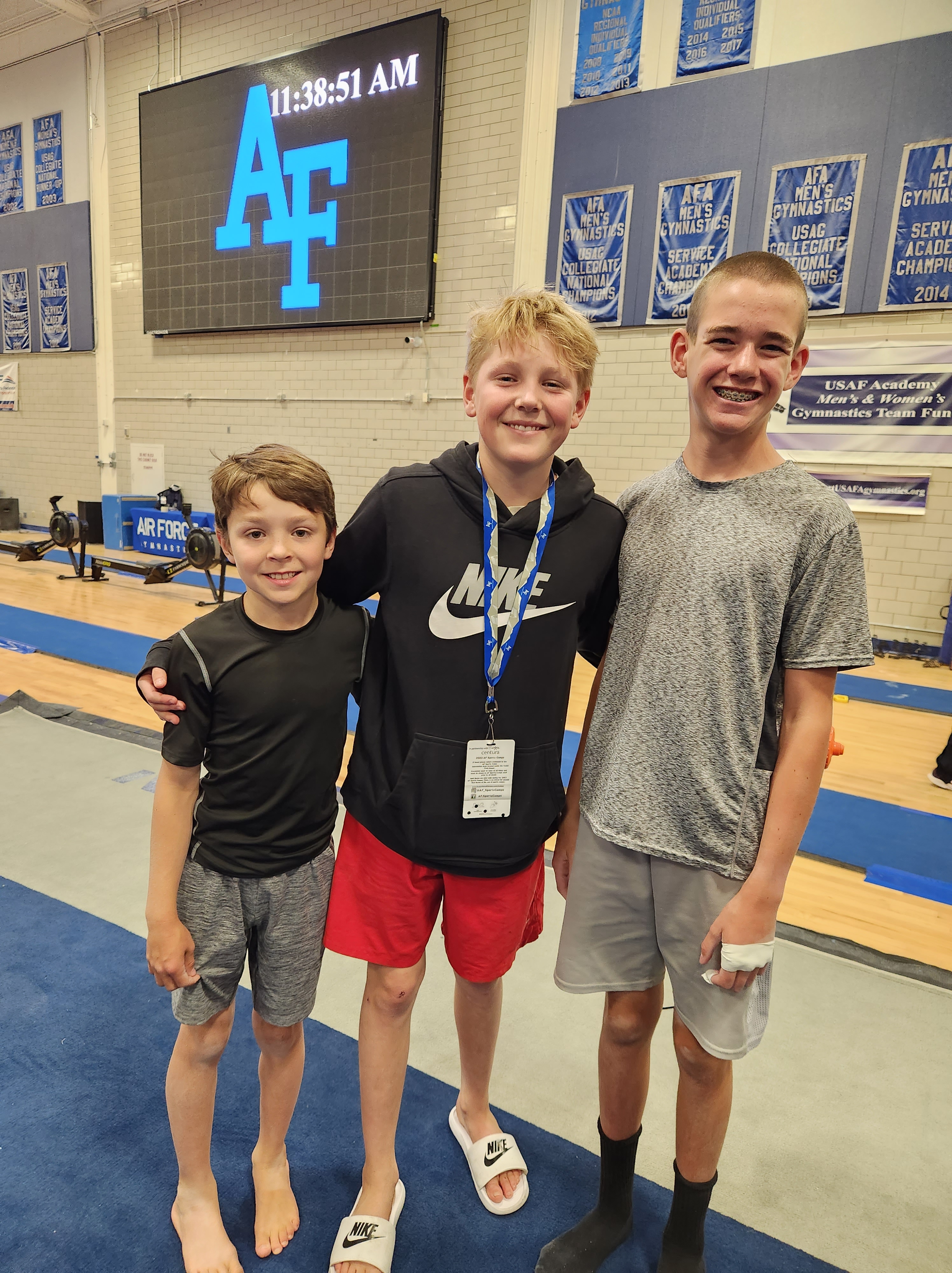 Once again this summer Leighton spent a week at the Air Force for gymnastics camp and had a great week. One of his teammates from his gym was his roommate and they made good friends with two other rooms of boys and the 6 spent all week together. He sent me a photo of his dorm room just after moving in….I’m pretty sure it was only that clean just that day. He gained some new skills and was really excited about all that he learned. We made triple sure this year that he was on the dietary needs list since he has Celiacs and that was a bit of a problem last year. We packed extra food but they were also able to accommodate his dietary restrictions so that went better. Caedmon went with me on the last day to watch him show off some of his skills which was fun to see. Another boy from their gym was also there that week but wasn’t old enough to stay in the dorms but the older boys were glad to see him and they all enjoyed the week.