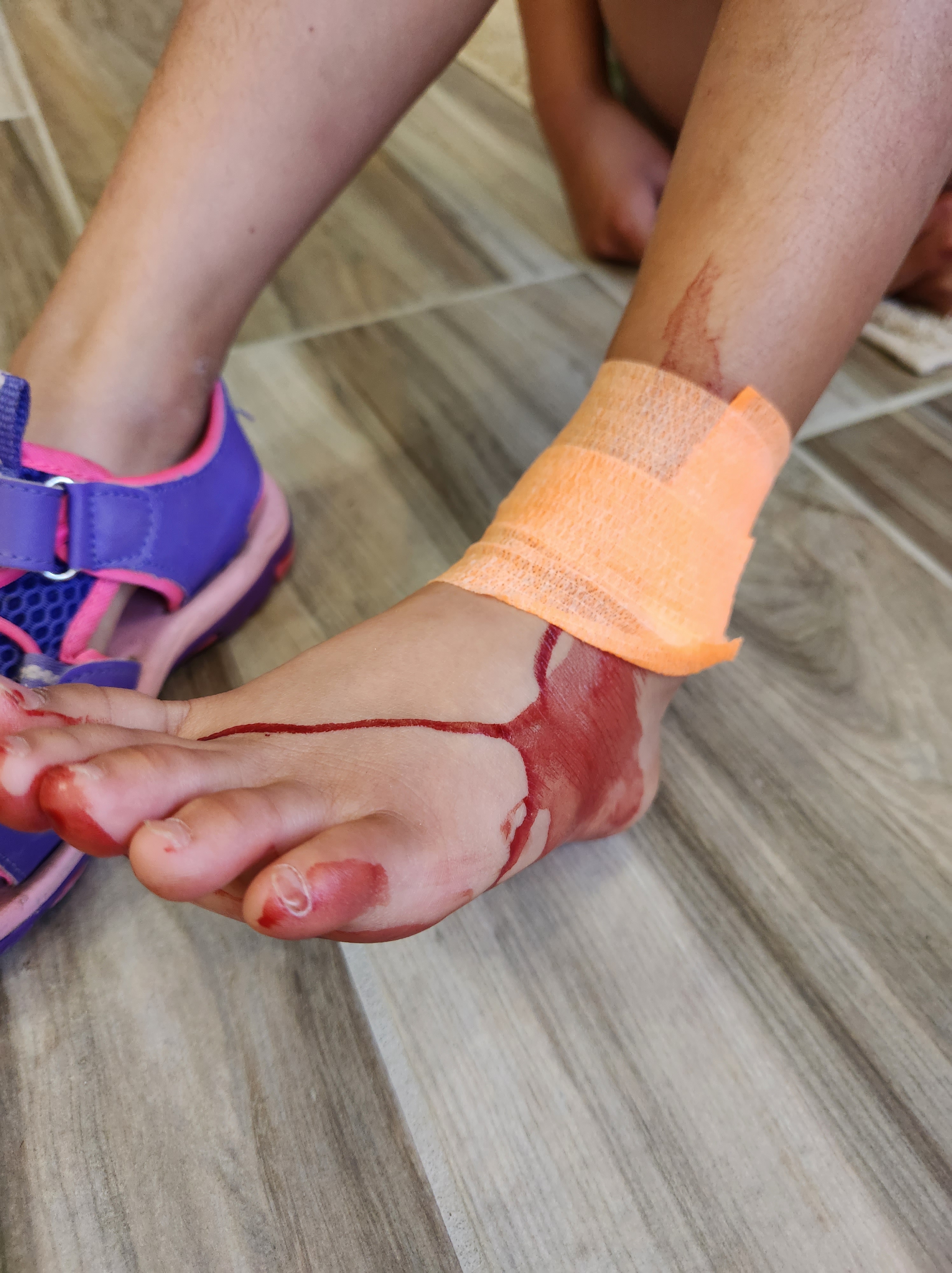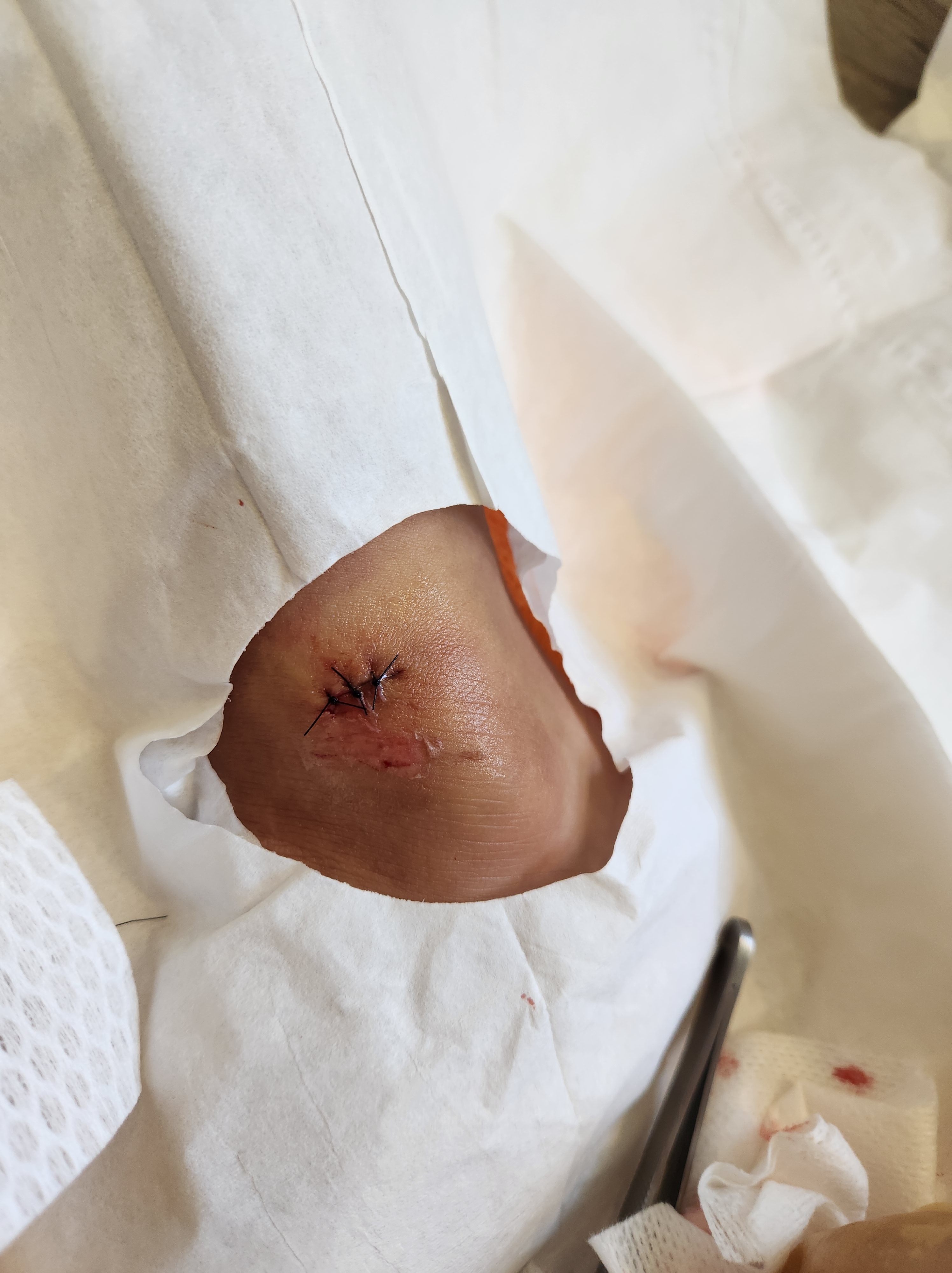 A couple of weeks ago I had to put my doctor skills to work on the kitchen floor. We had gone for a walk after lunch around the block only we didn’t make it too far. Coppelia and Edric were riding their bikes up ahead of Clint and I, (the other boys were gone for the afternoon) and suddenly Edric rode his bike back to us to let us know that Coppelia fell on her bike. She was just a bit ahead and looked calm and was standing next to her bike so we weren’t too concerned but when we got up to her we found a decent amount of bleeding from a small cut on her ankle. Edric rode his bike back to the house to get some first aide supplies and Clint helped me move her off the rode and move her bike out of the rode and then ran back to get the car to drive her home. I keep a bag at home packed with all sorts of supplies, so once we got her home I got a good look at the cut and realized that she was going to need some stitches. She was super brave as I numbed her up and washed it all out. I ended up putting 3 stitches in and she did great the whole time. She was running around in just a matter of minutes all fixed up (of course the popsicles afterwards helped a bit). While it’s not something that most people can do on their bathroom floor I was thankful for the chance and ability to get her all fixed.
