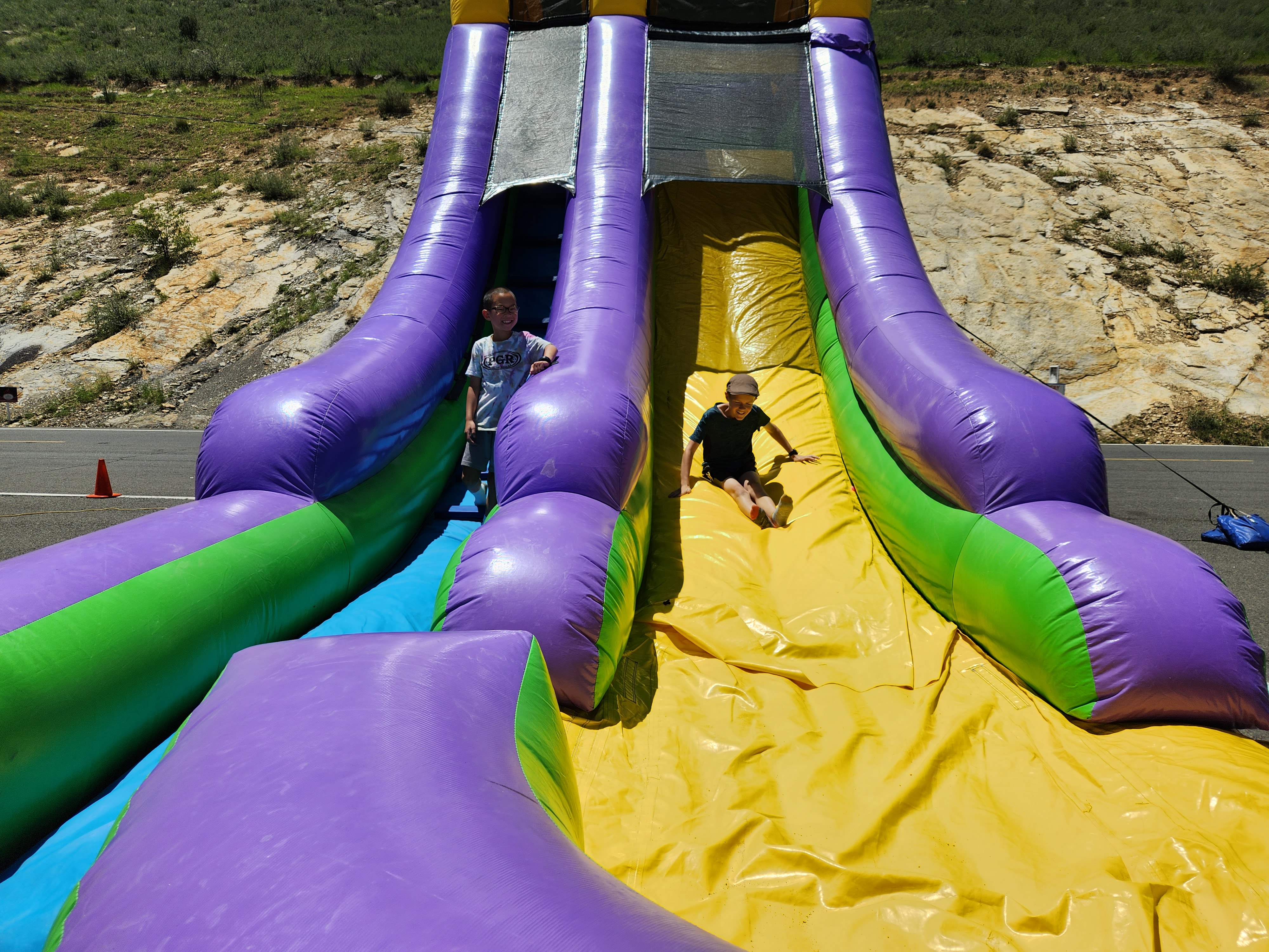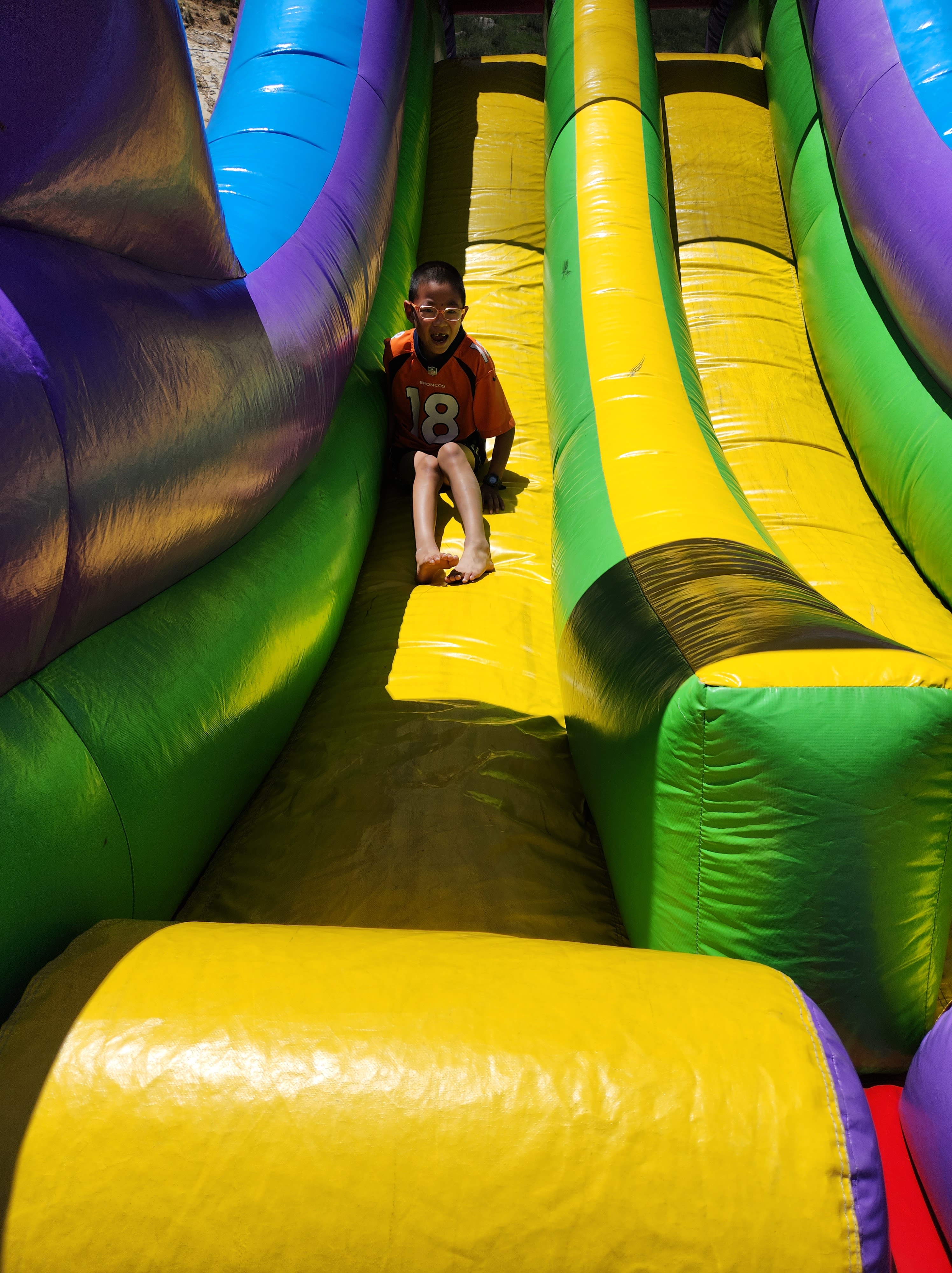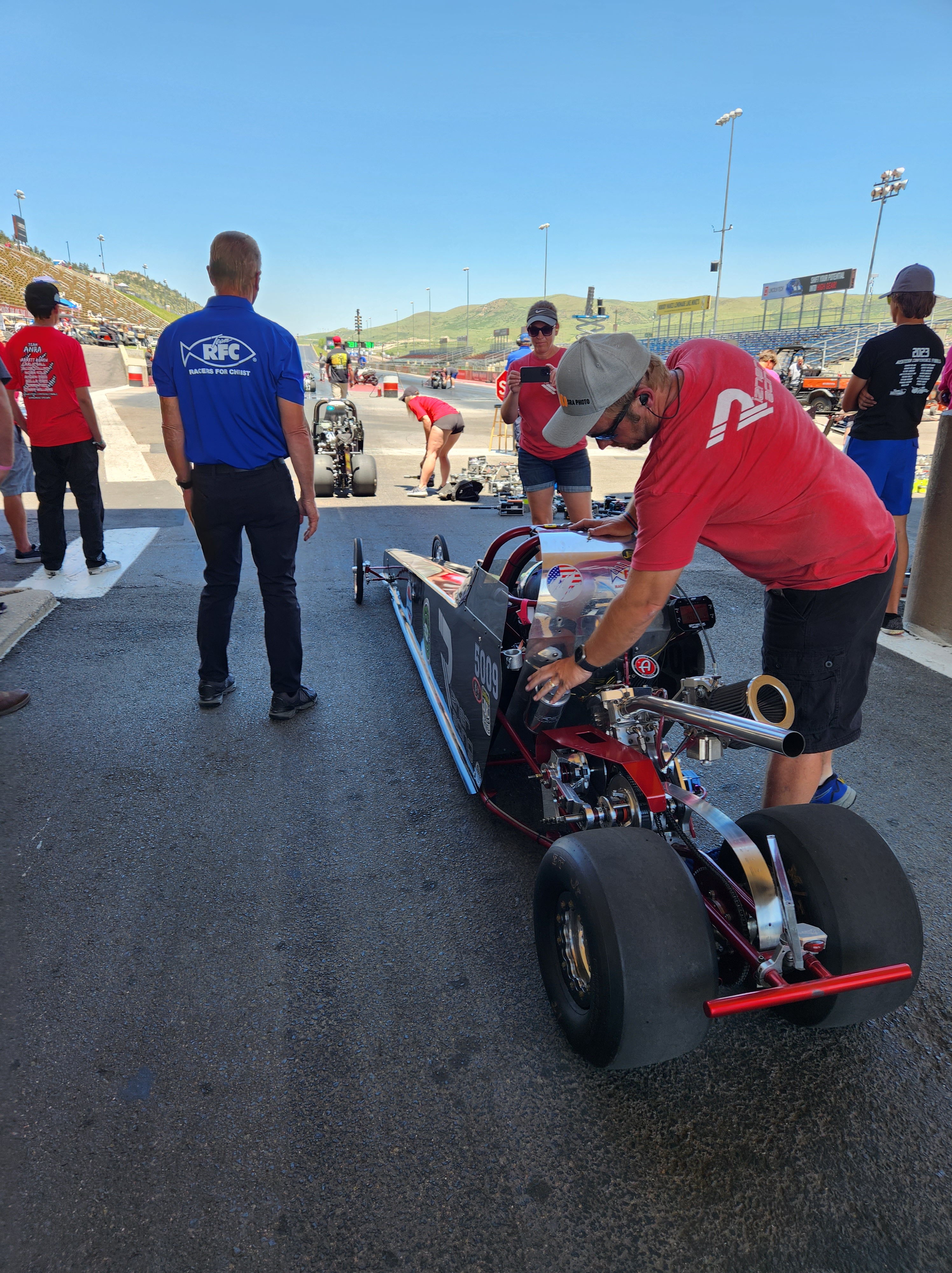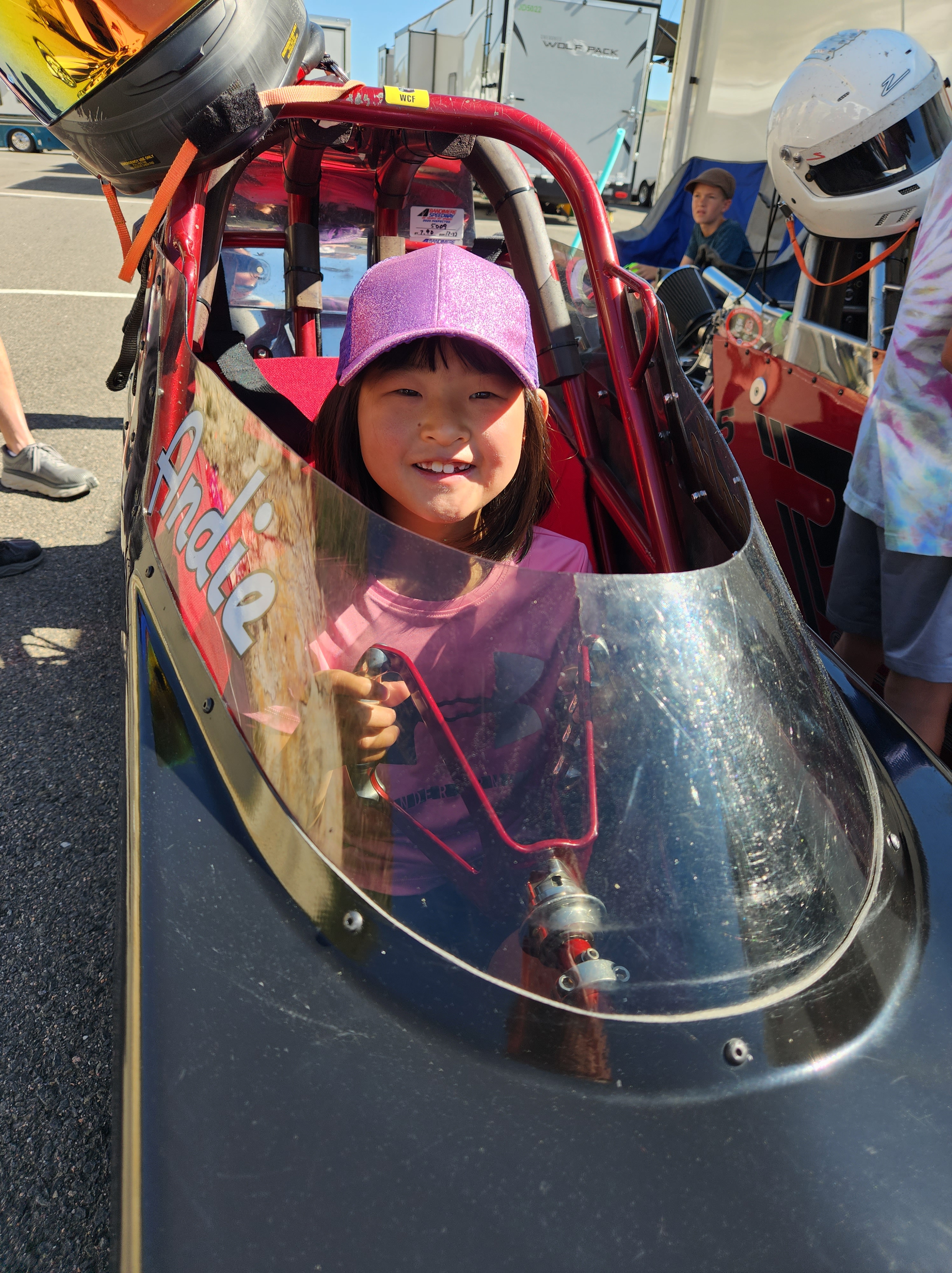 It’s only taken a number of years but we finally made it out to watch our friends do their junior drag racing this past Saturday and it was a blast. Andie (their daughter) and Leighton were in preschool together way back when (both will start high school this fall!!!!) and Aiden (their youngest son) have been at Apex together since kindergarten and I’m pretty much sure are joined at the hip….in fact I think a couple teachers can’t tell them apart because they are never apart. It turned out that Saturday was the Western Conference National Finals so we chose a big day to cheer our friends on. We knew nothing but were quickly schooled and learned all day long how things went. Everyone had ear muff or ear plugs for when we were down at the track. I think the kids favorite parts were when we hauled the dragsters down to the track or back from the finish area because it meant that they got to ride in them as we pulled them with the golf cart. Although Paxton’s favorite part was probably when Miss Sheri let him steer the golf cart back to the trailer, he thought he was big stuff for sure. After the morning timing rounds the competition begin in the afternoon. Andie got eliminated in the first round, but then took the kids to the bouncy houses so I think they still had fun. Aiden ended up going through each round and made it to the finals. We were all excited to cheer him on and ultimately he ended up winning and walking away with the 11 year old championship which was super exciting. We had a great day and enjoyed supporting our friends and enjoyed learning all things dragster racing.