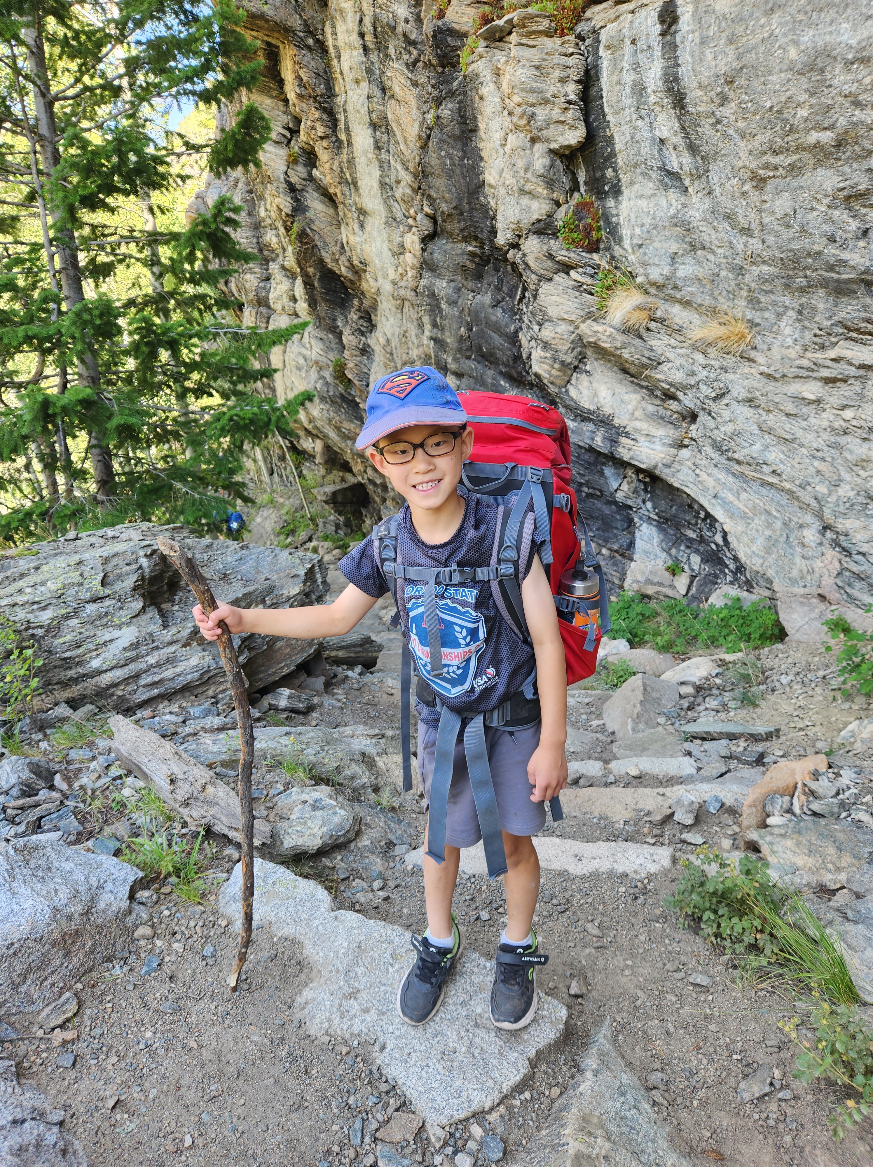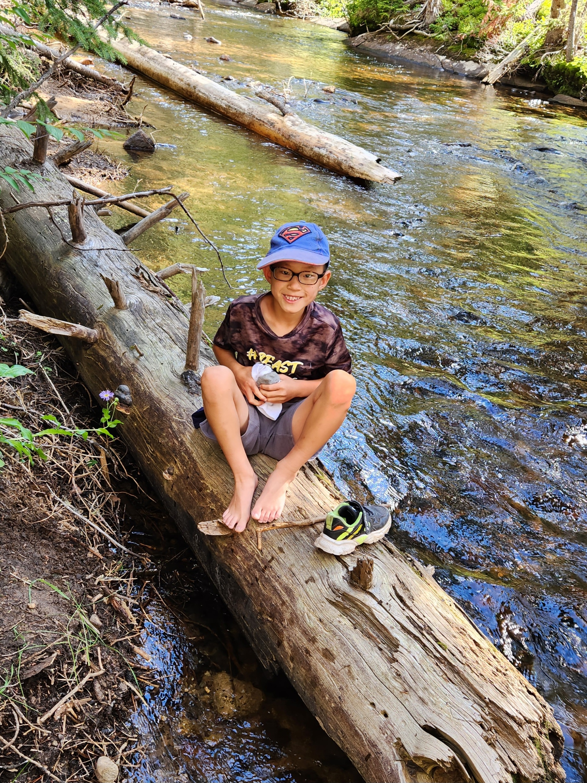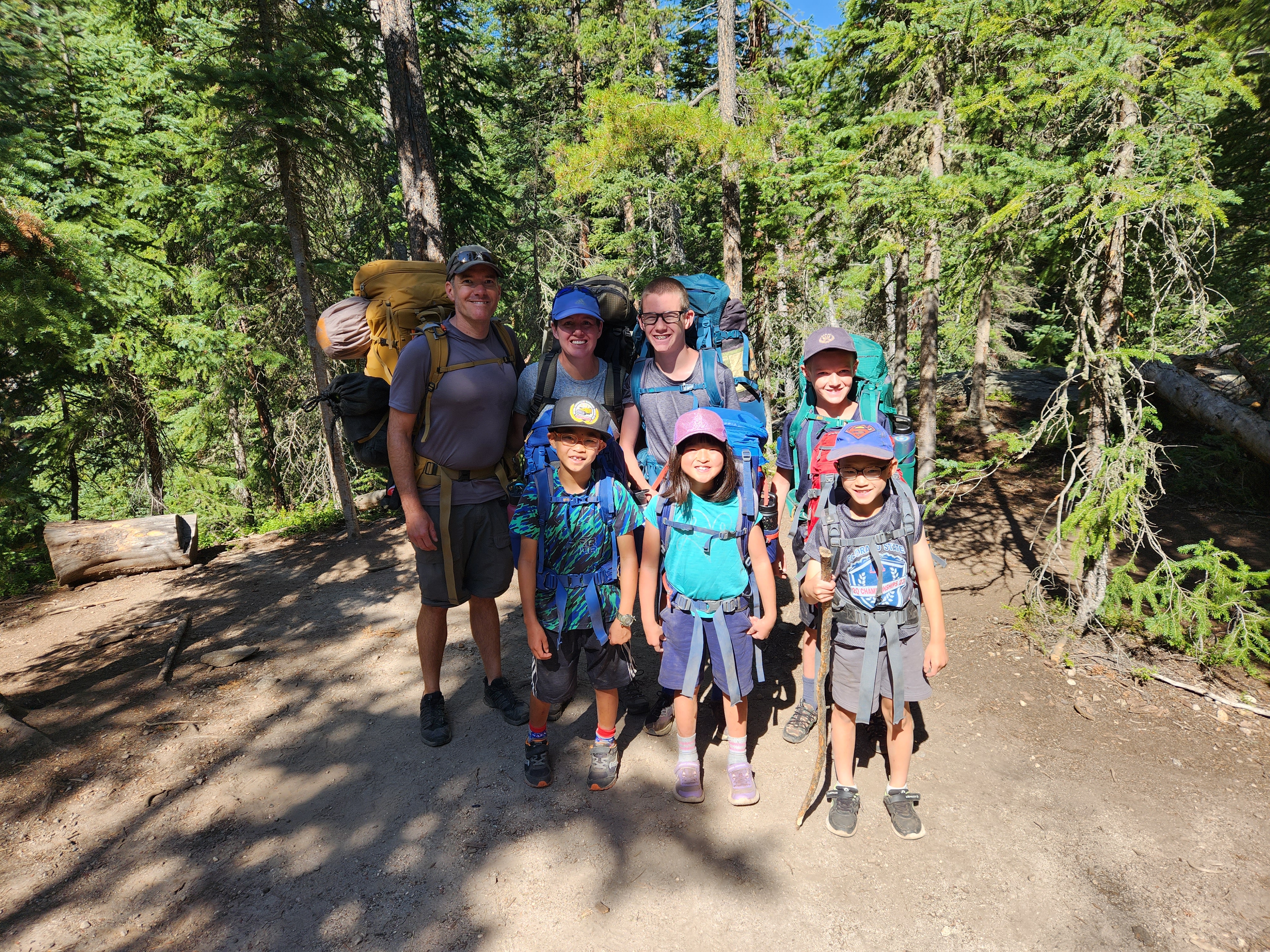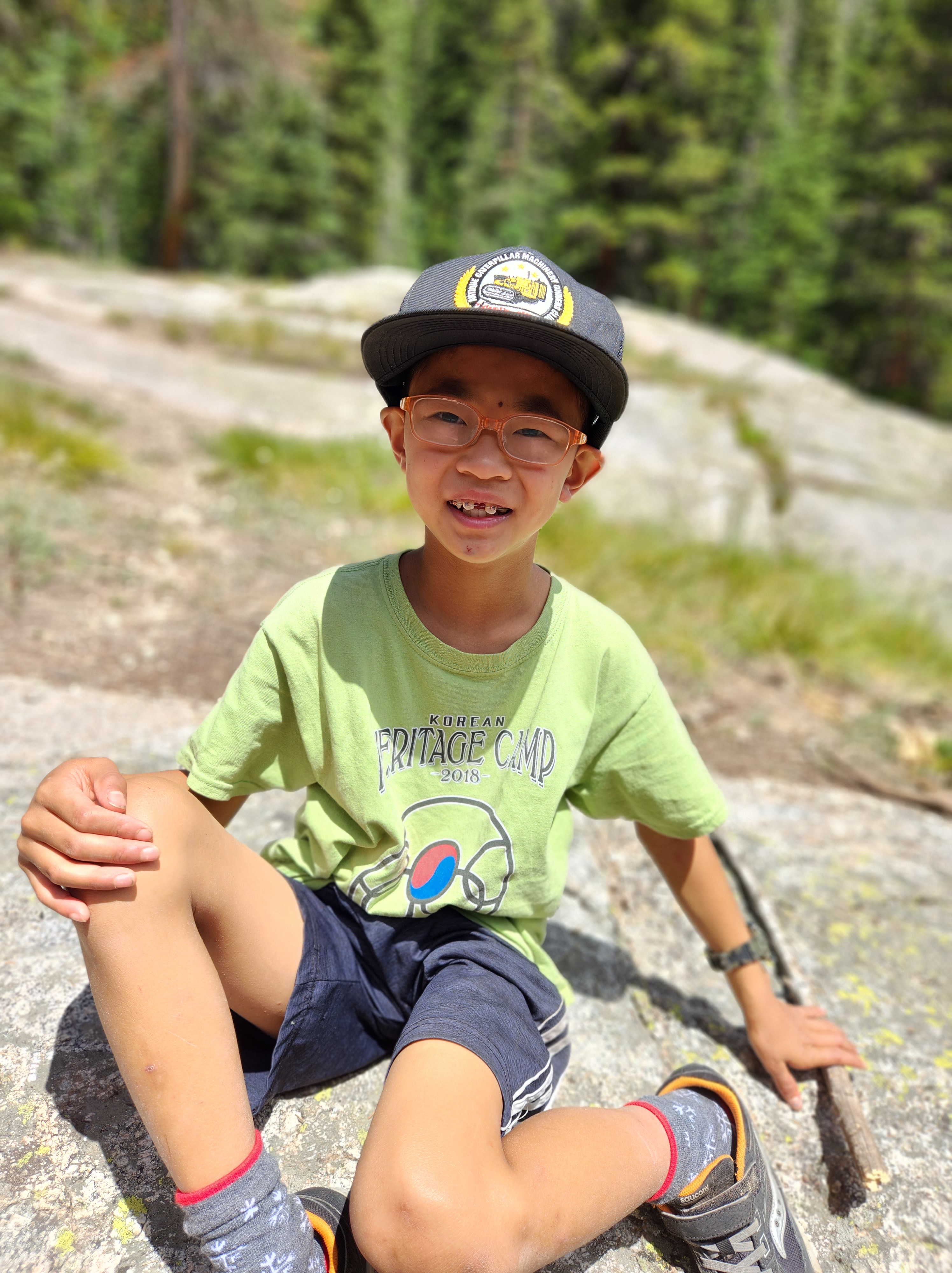 As usual I am way behind in my blogging. This is from our second day backpacking. We woke up chilly, I think the temp was in the low 40s, but as the sun came up we slowly warmed up. After a good breakfast we packed lunch and waters and snacks and headed out on the trail farther up. The trail was beautiful and very lush. Paxton found a couple little streams to jump over and there were all sorts of waterfalls. We came to Lone Pine Lake and everyone threw rocks in and we ate our snacks. Then we continued up the trail another 1-2 miles to Lake Verna and it was beautiful and we were the only ones there. Caedmon and Edric promptly threw in the biggest log they could find (calling it the Titanic). We ate lunch and just enjoyed the quiet and beauty for quite awhile. After hiking back down to our site we spent the remainder of the afternoon playing in the headwaters of the Colorado River. Coppelia insisted on fishing with her stick and was quite upset that no fish were biting on the attached grass, she then got the idea to chase grasshoppers around trying to catch them to attach to her line. Edric decided to just use some dried coconut from our trail mix and put it on a hook that Clint had fashioned and whittled out of wood. Neither had any luck….and we tried to tell Edric that we weren’t so sure that the fish in the Colorado River were coconut eating fish…..maybe that was a little too tropical for them. We had a great evening and slept decently well. The next morning we packed up camp and headed down the mountain. We had a great time and everyone is already planning our next trip next summer.