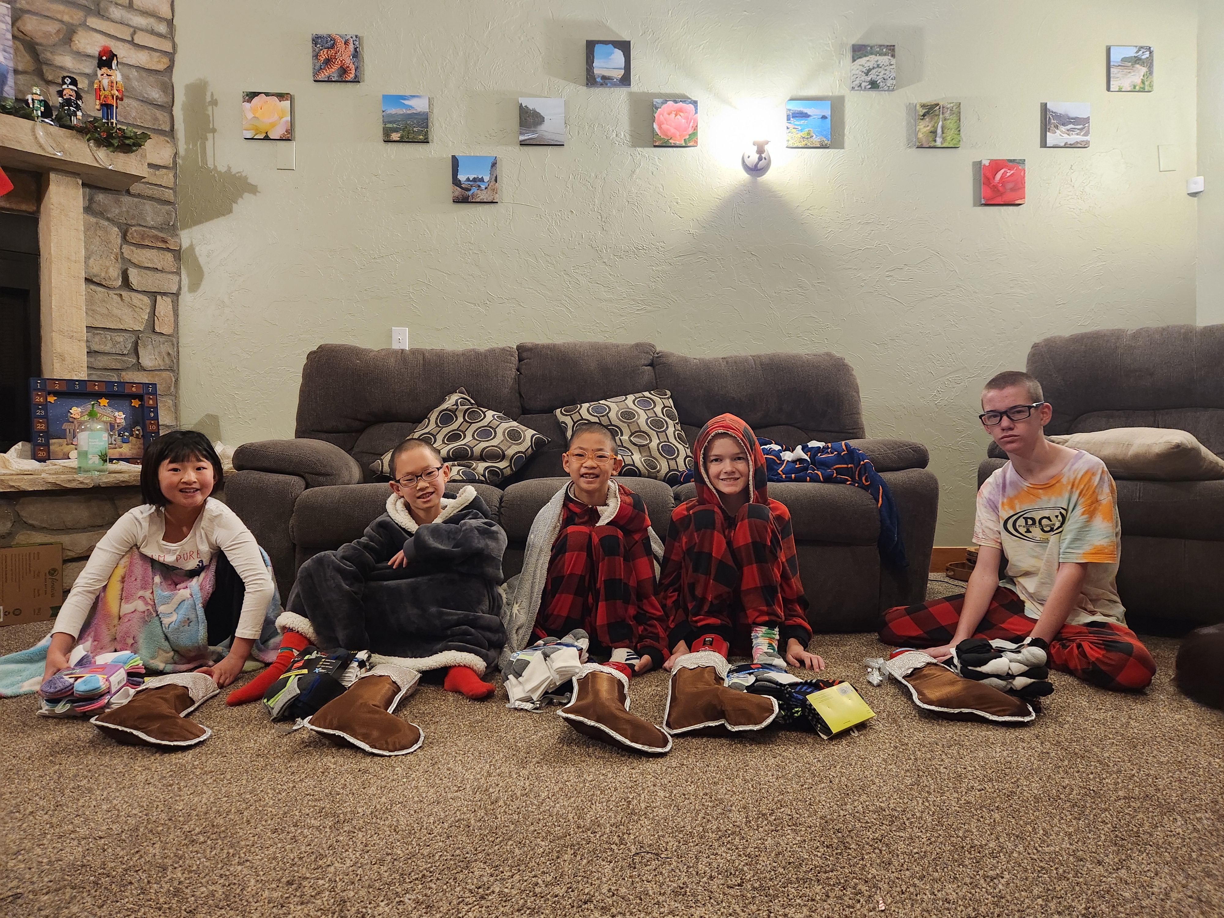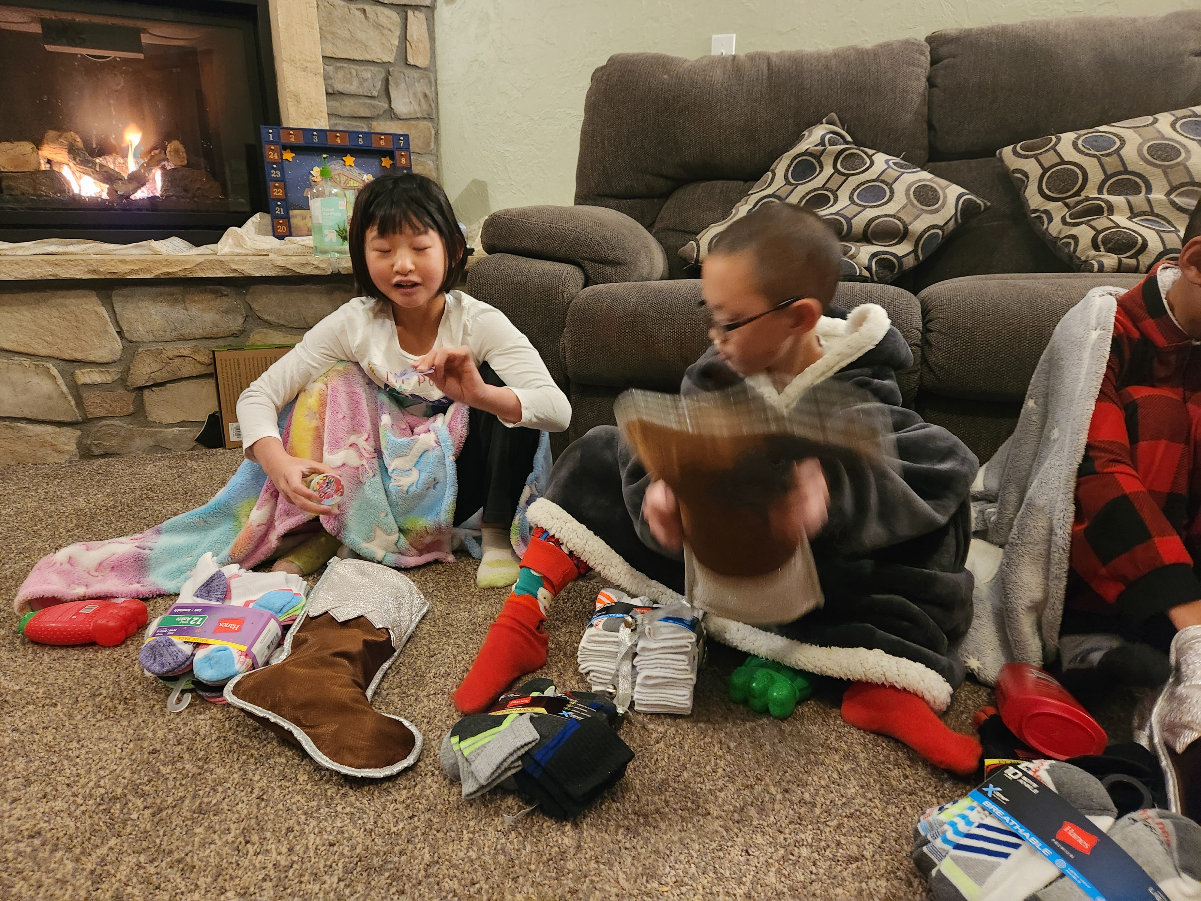 Christmas didn’t quite go as planned thanks to a stomach bug that made its way through a number of our family. But we embraced things anyway and still managed to have a few good days. On the 23rd Paxton opened his gift box from his foster mom and family in Korea and was very excited. He’s been eating the snacks every day since and loves all the toys. On the 24th we did a video call with Clint’s parents and the kids enjoyed opening their gifts. The younger 4 all got cameras and Leighton got a pixil lego set which he has had fun with. Only Caedmon and I made it to Christmas Eve service at church because no one else was feeling good. On Christmas morning the kids did their stockings still in their pjs and weren’t up super early, I told them nothing before 6AM, but I’m pretty sure they were awake long before that, they just waited till 6 to come downstairs. After a bit we did the rest of gifts with my parents while keeping our germs to ourselves and then had a very low key day with chicken soup. Everyone got a snorkle set because we are planning a big family vacation later in the year. While the sickness did put a damper on everything it was nice to just have no expectations and low key couple of days.